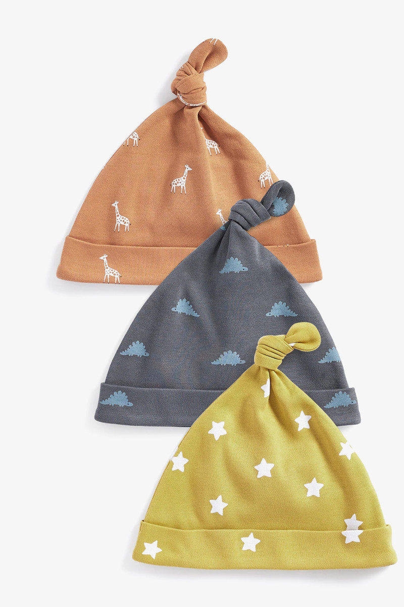 這3包裝的帽子設計有領帶的細節,完全不含有害的染料和化學品,以保障寶寶的安全。