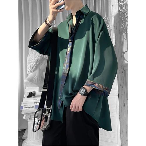 七分袖襯衫男發型師高級感穿搭夏天垂感襯衣夏季設計師款男裝上衣
