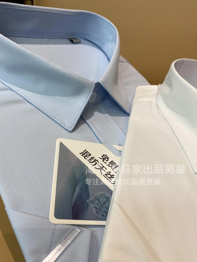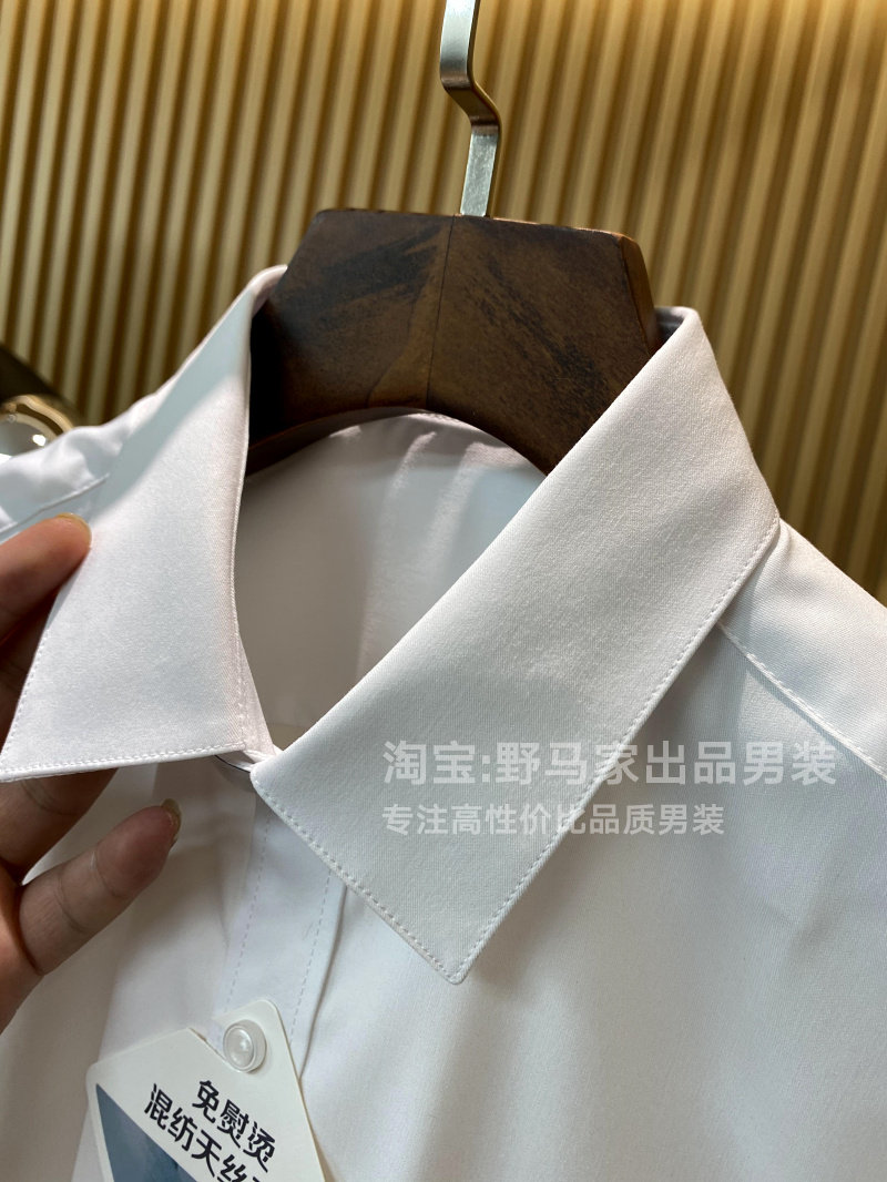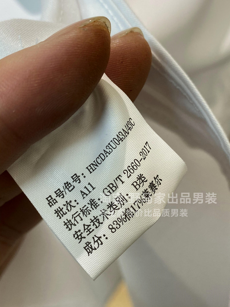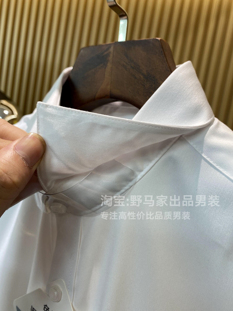 尖領,雙層領片,內有還有塑性片+膠條防走形,十分的筆挺有型