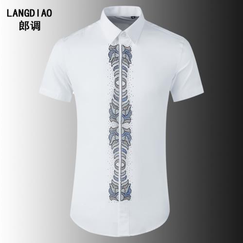 歐洲站燙鉆短袖襯衫男夏季新款青年潮牌翻領修身休閑痞帥高端襯衣