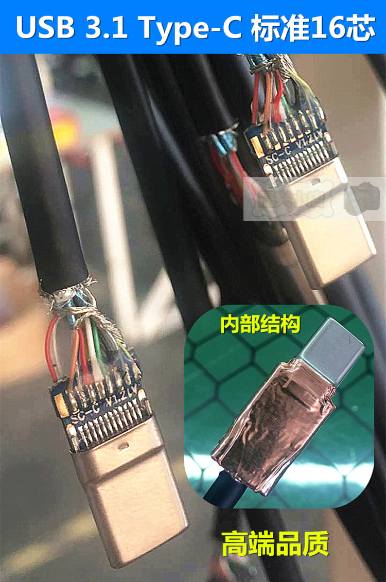 由于線材內部接法復雜、不少焊點需要人工焊接、造價則是質量越高、價格越高、這款線材采用了 intel 高速3.1USB 線芯之外、還做了一定的改良。