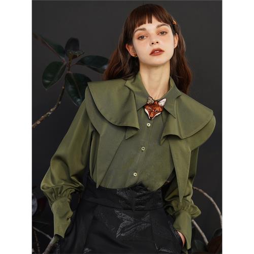 咖沫原創高級感法式復古襯衫女秋季新款可拆卸斗篷小眾設計感上衣