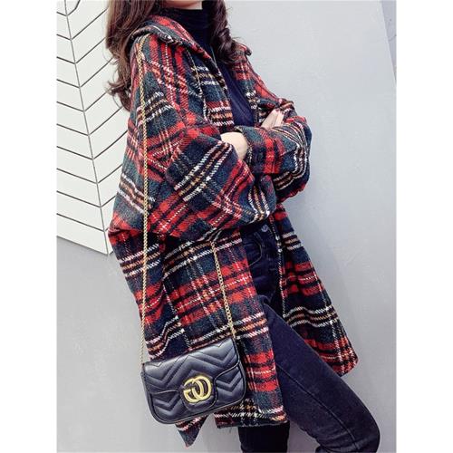 紅色毛呢格子襯衫外套女2025新款秋冬加厚復古小個子長袖襯衣冬季
