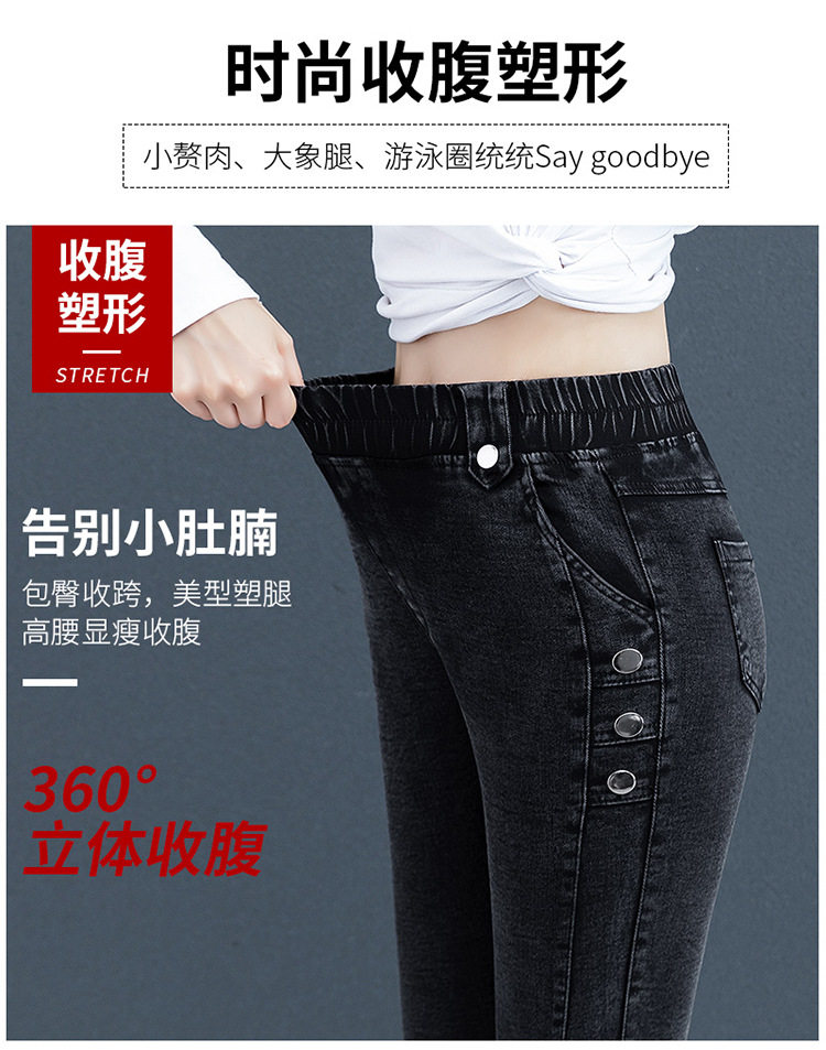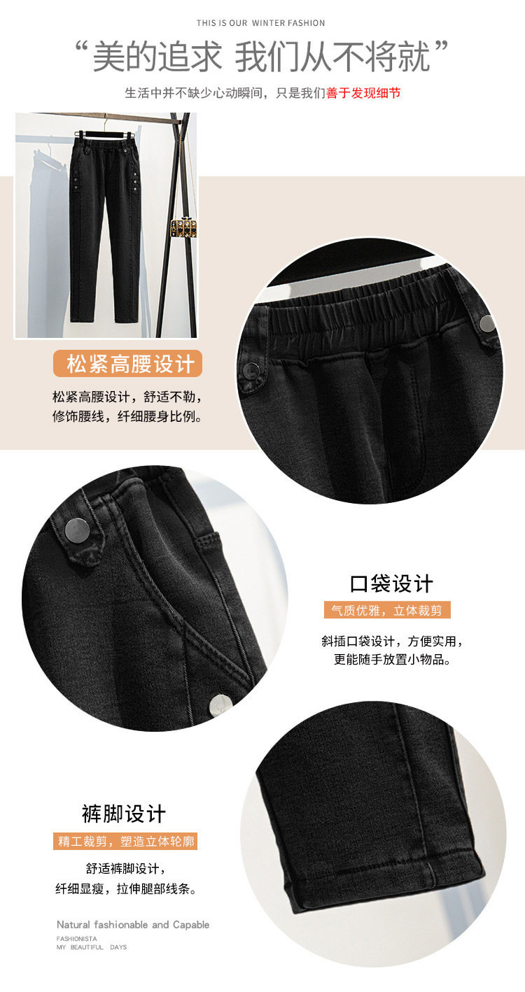 300斤特大碼彈力小腳加絨牛仔褲女秋冬季240胖mm高腰加肥顯瘦靴褲