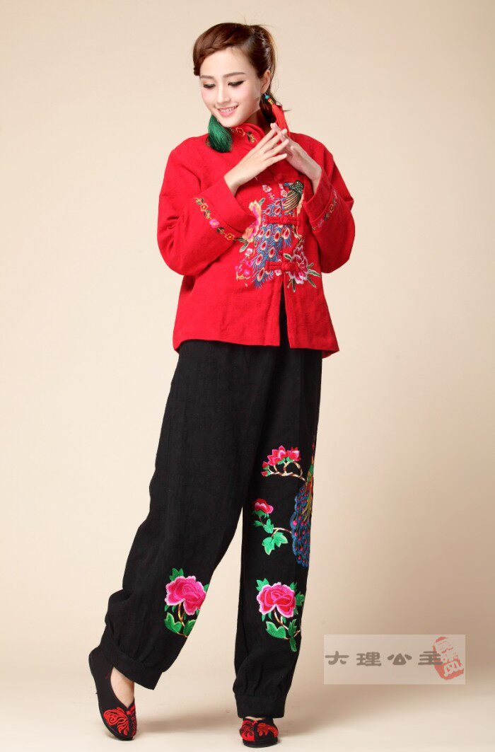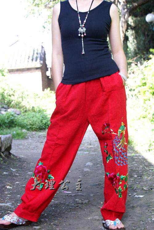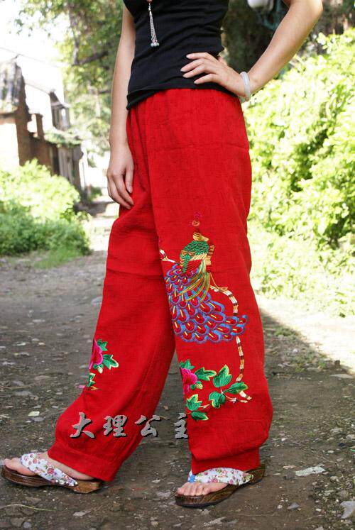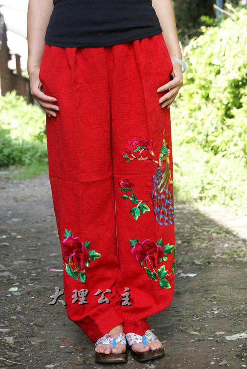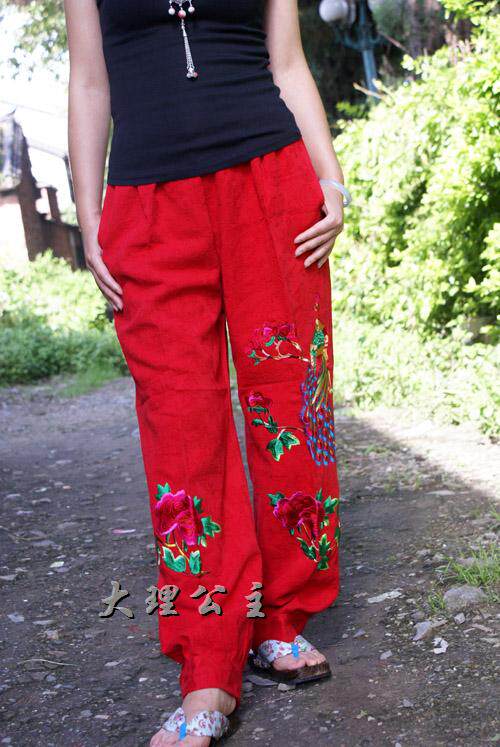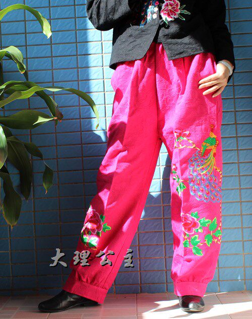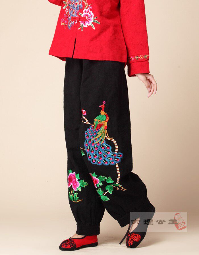 春秋繡花長褲,加厚提花棉面料,做工好,繡花精致,保暖舒適。
