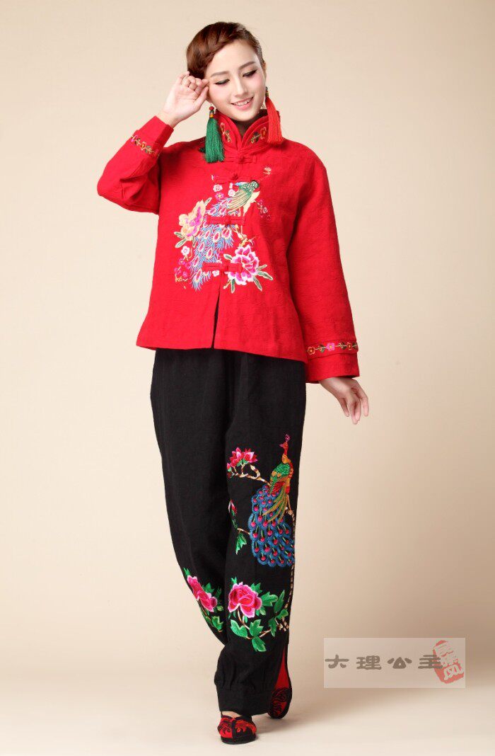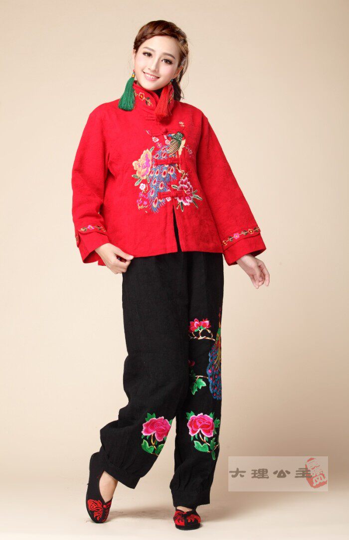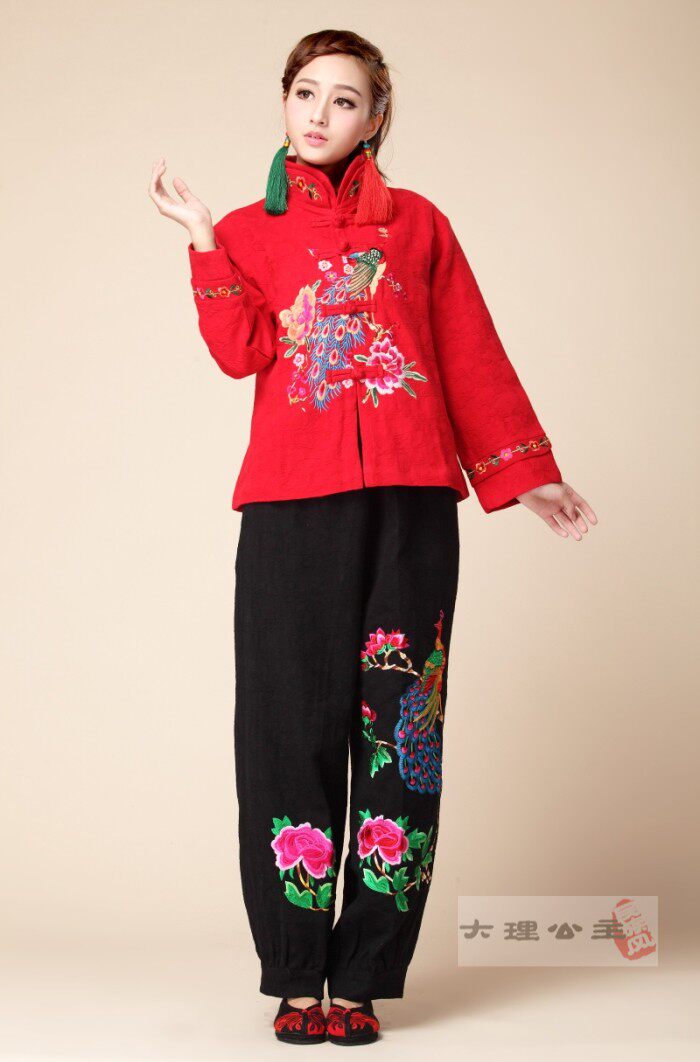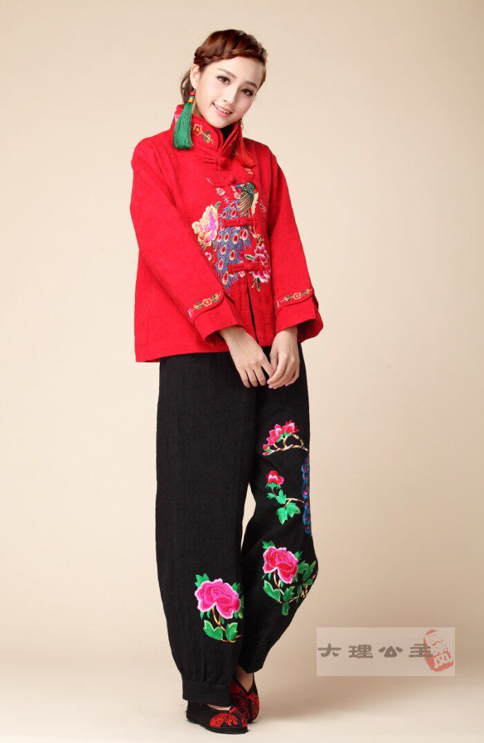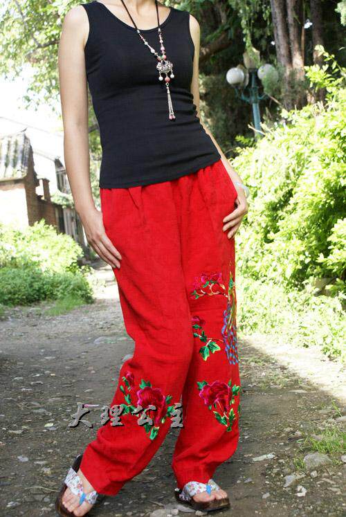 春秋繡花長褲,加厚提花棉面料,做工好,繡花精致,保暖舒適。