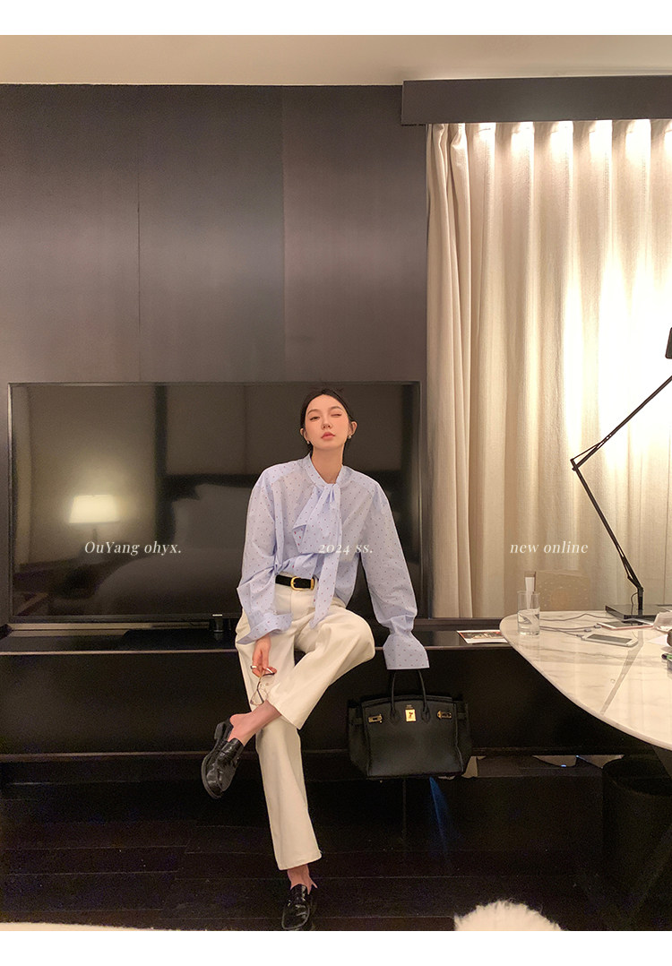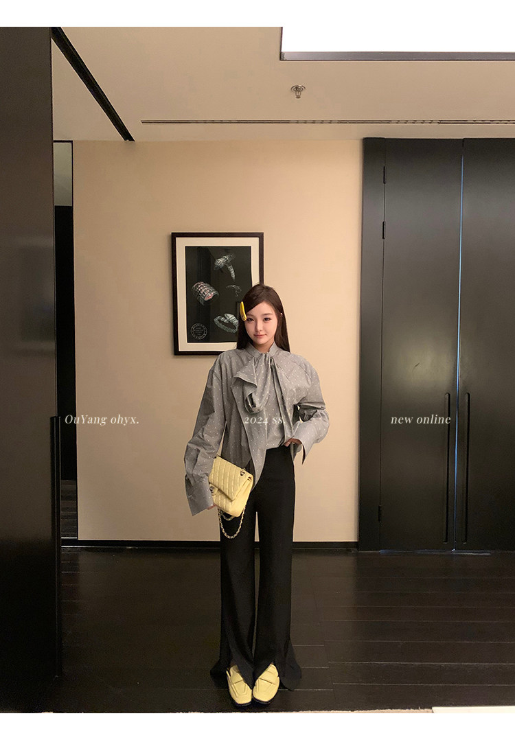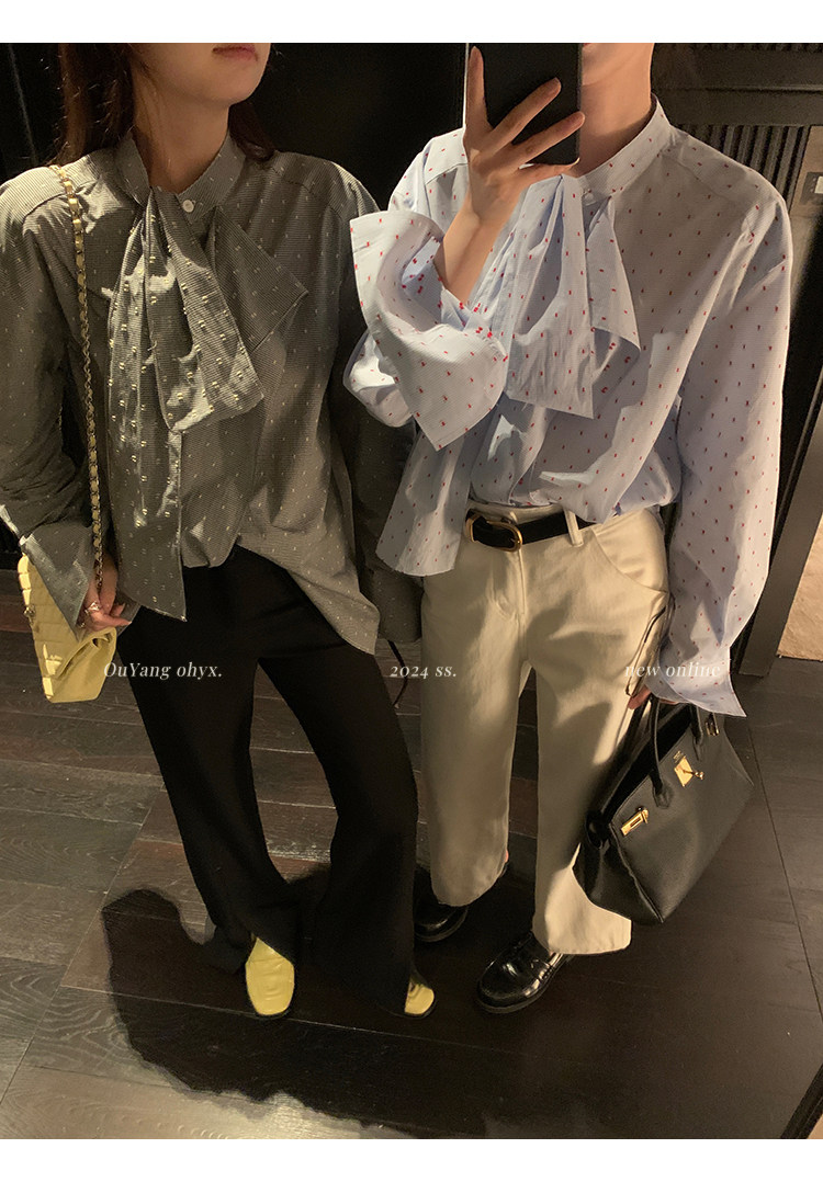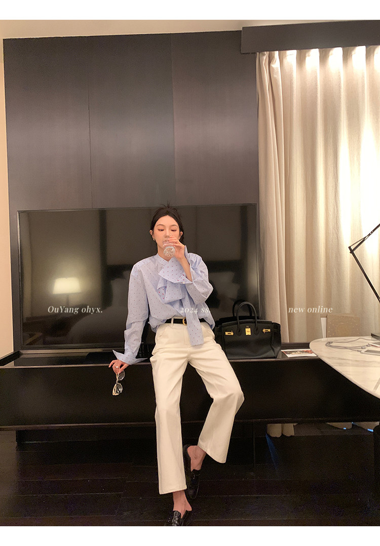 精致小立領/可拆卸不對稱飄帶造型 yi眼驚艷型