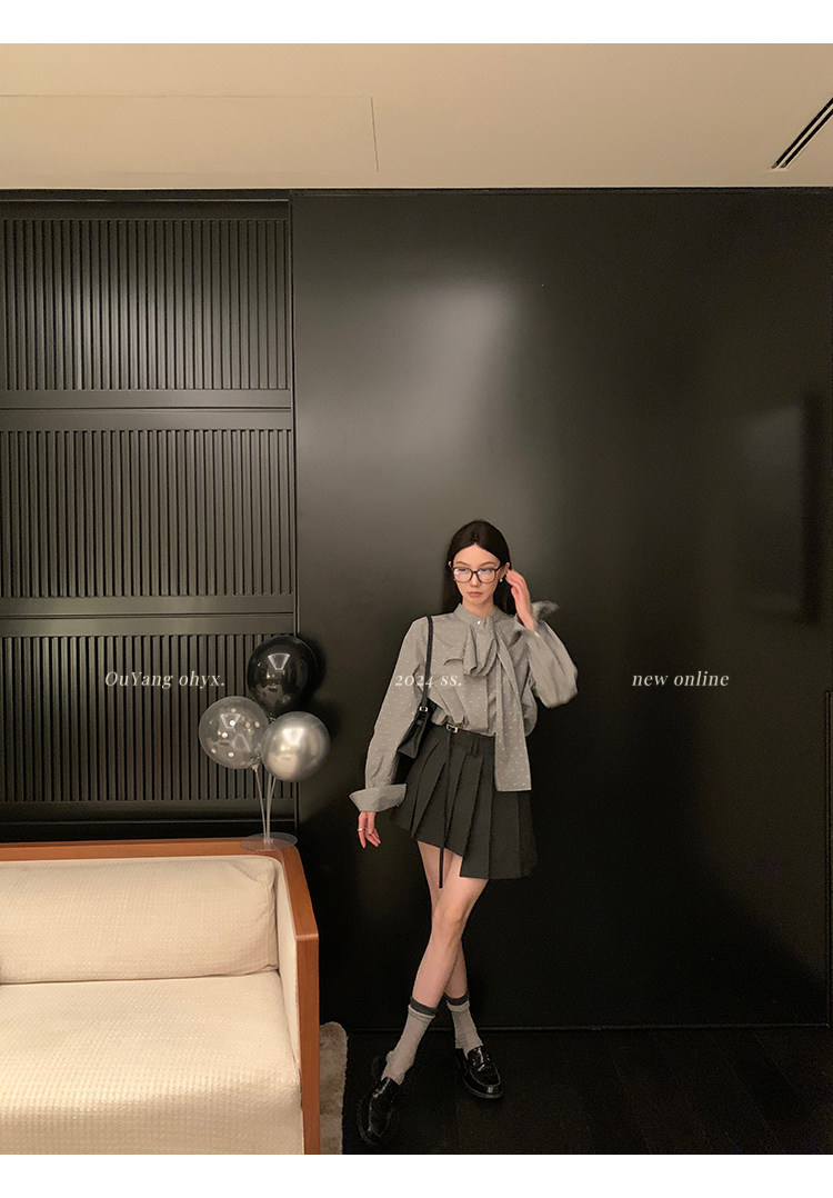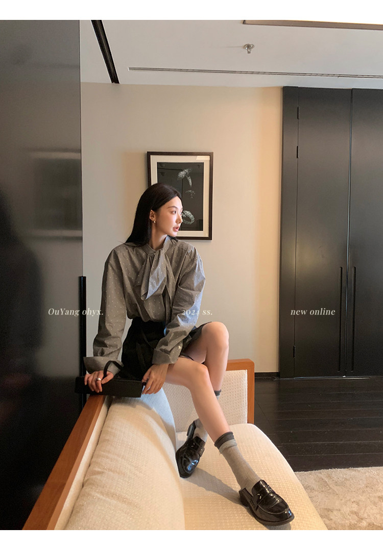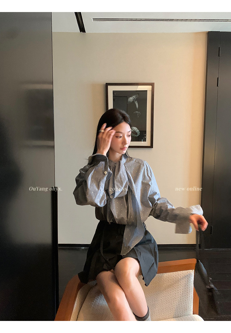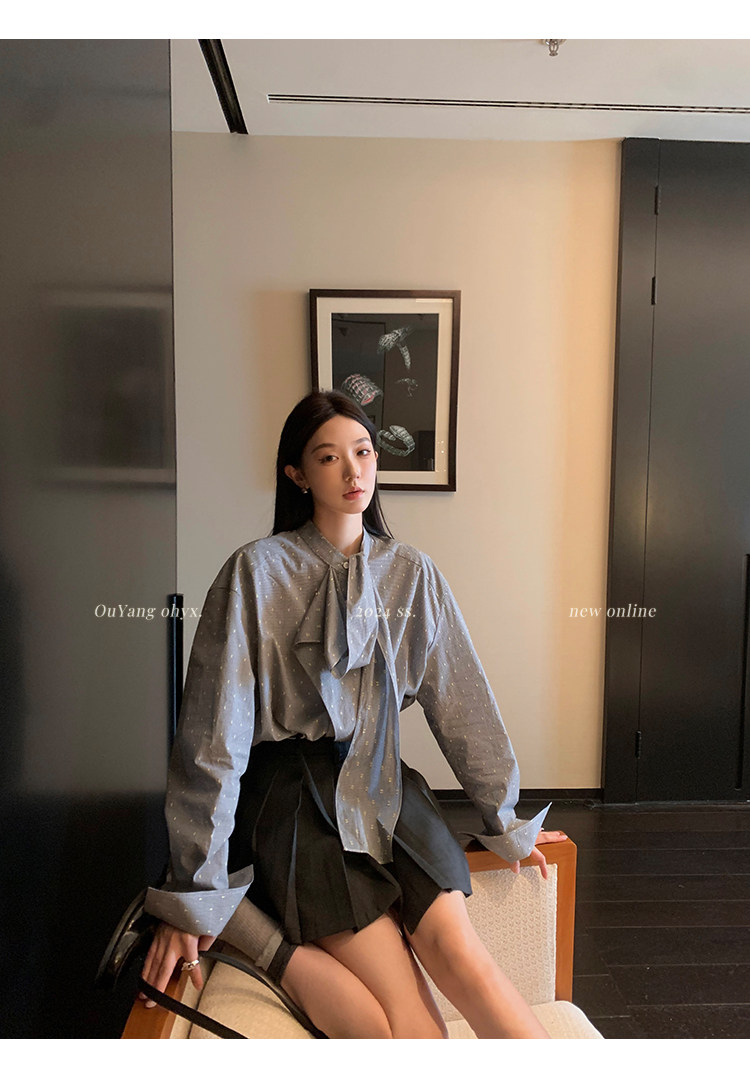 精致小立領/可拆卸不對稱飄帶造型 yi眼驚艷型