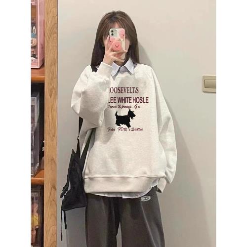 純棉美式復古hiphop潮牌無帽衛衣女春秋季薄款寬松高街設計感上衣