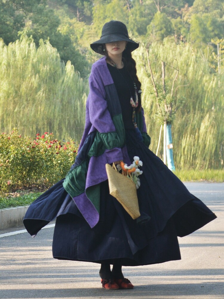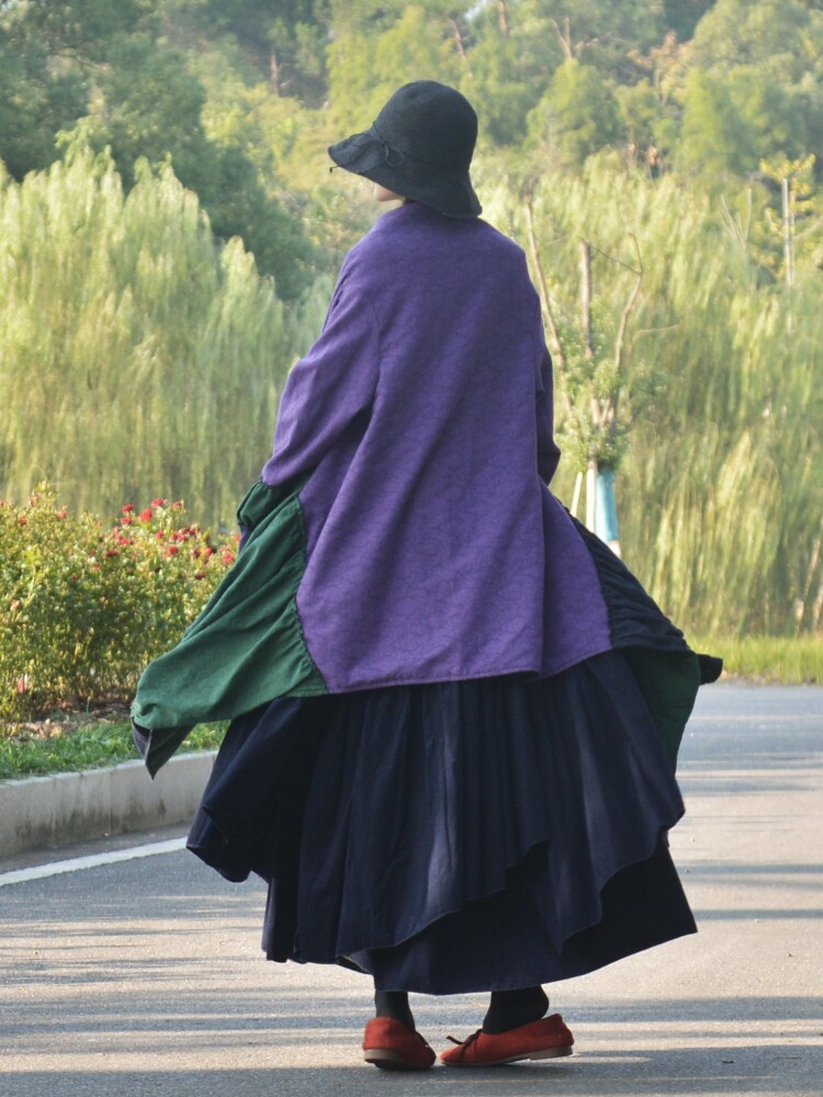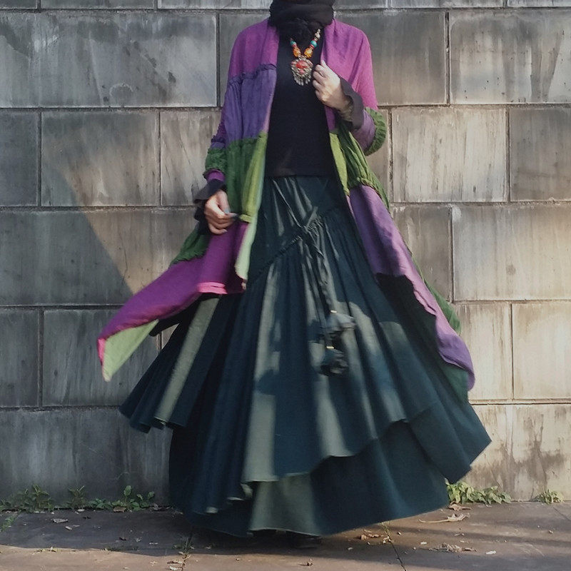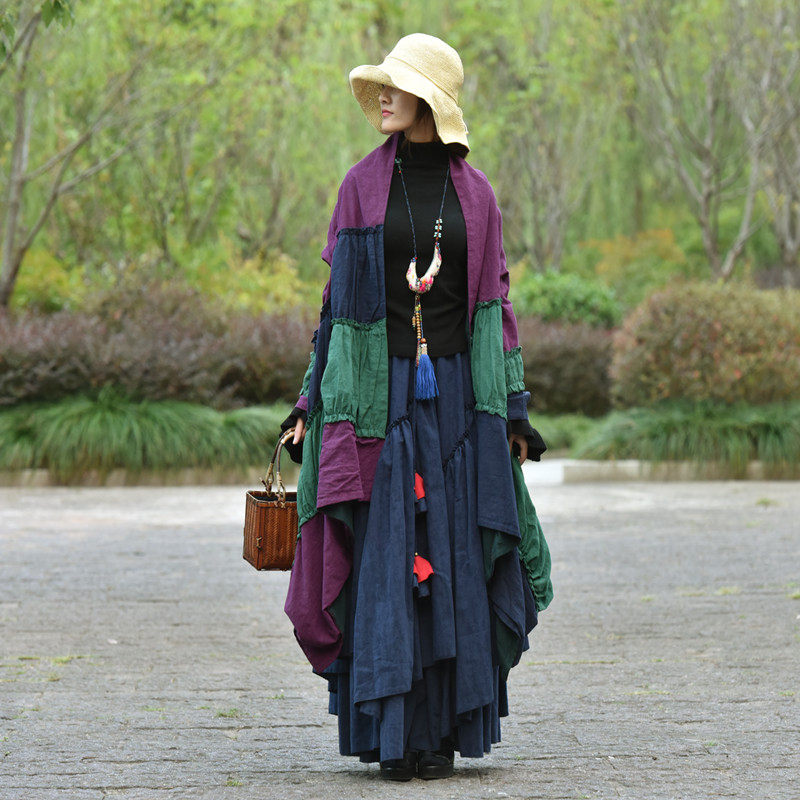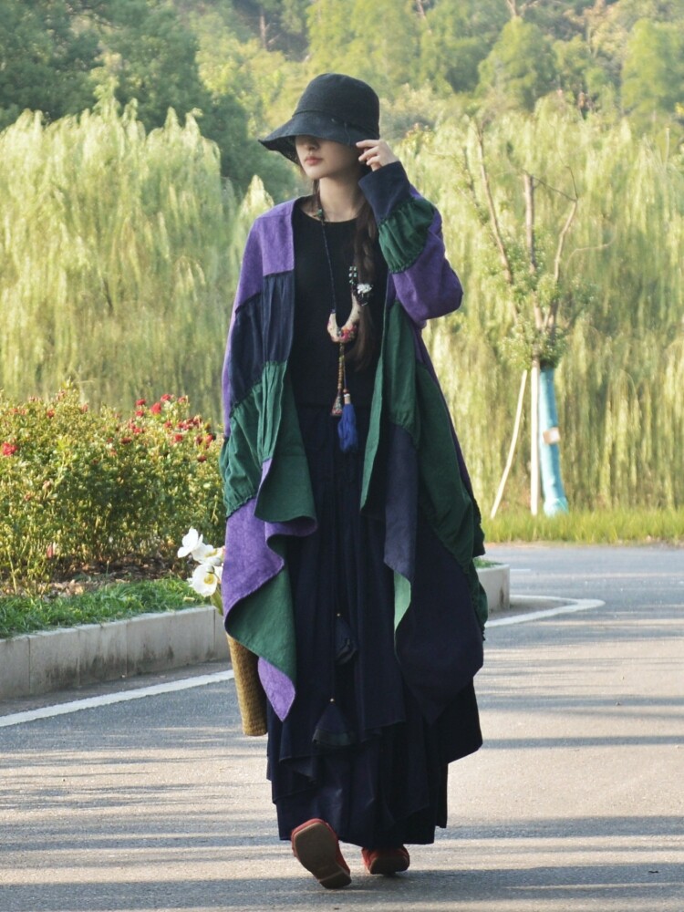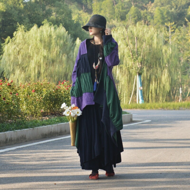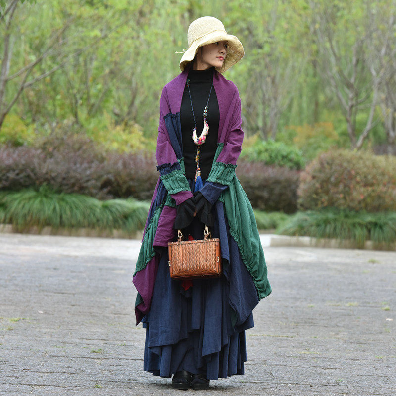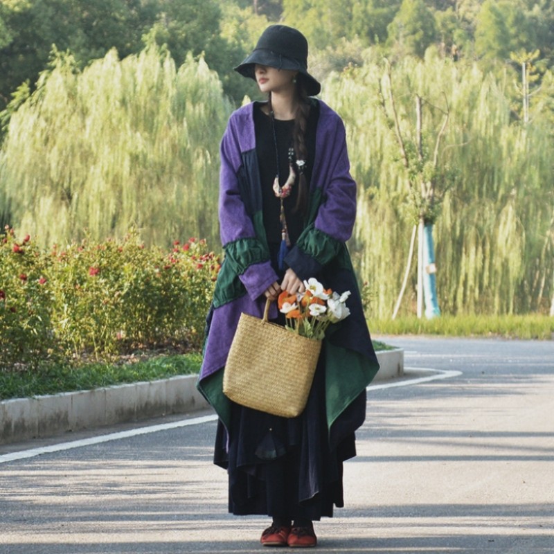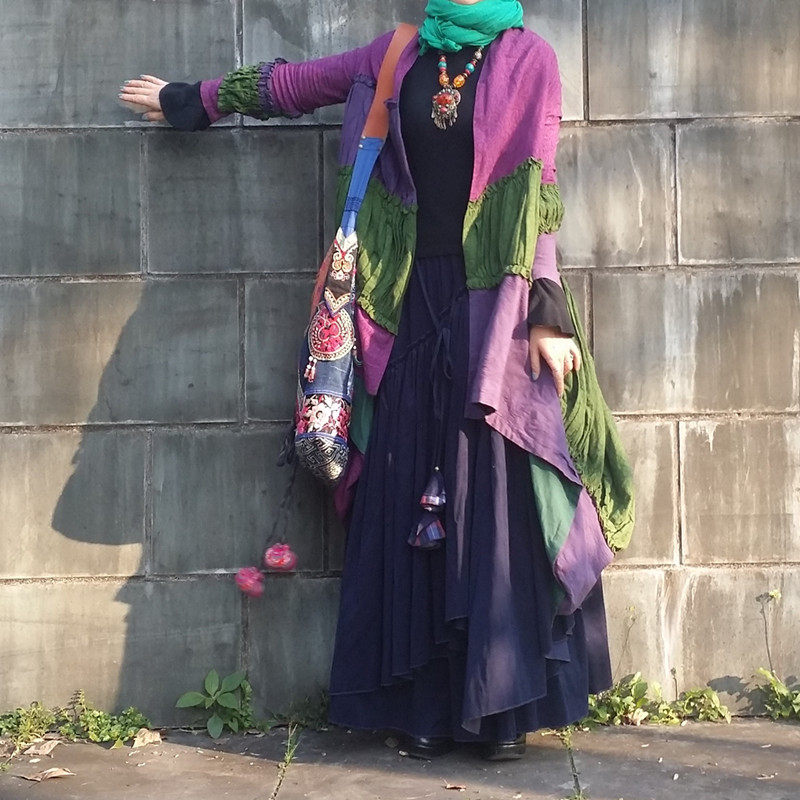 【梧葉】素心自制民族風秋裝女加厚風衣雙層拼接提花棉麻外套包郵