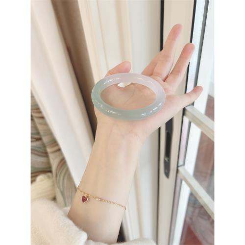 (免運)高冰種瑪瑙手鐲半山半水油青色荔枝凍玉髓美人條胖圓條玉手鐲子