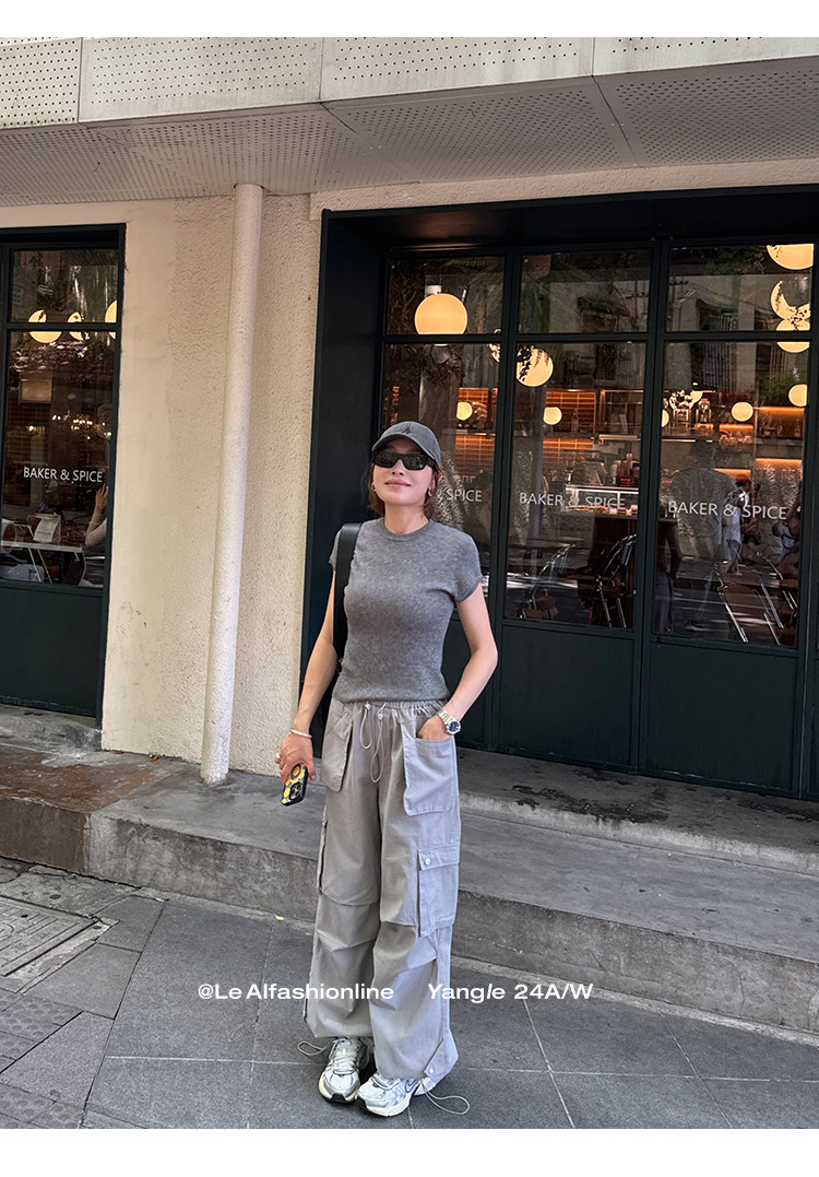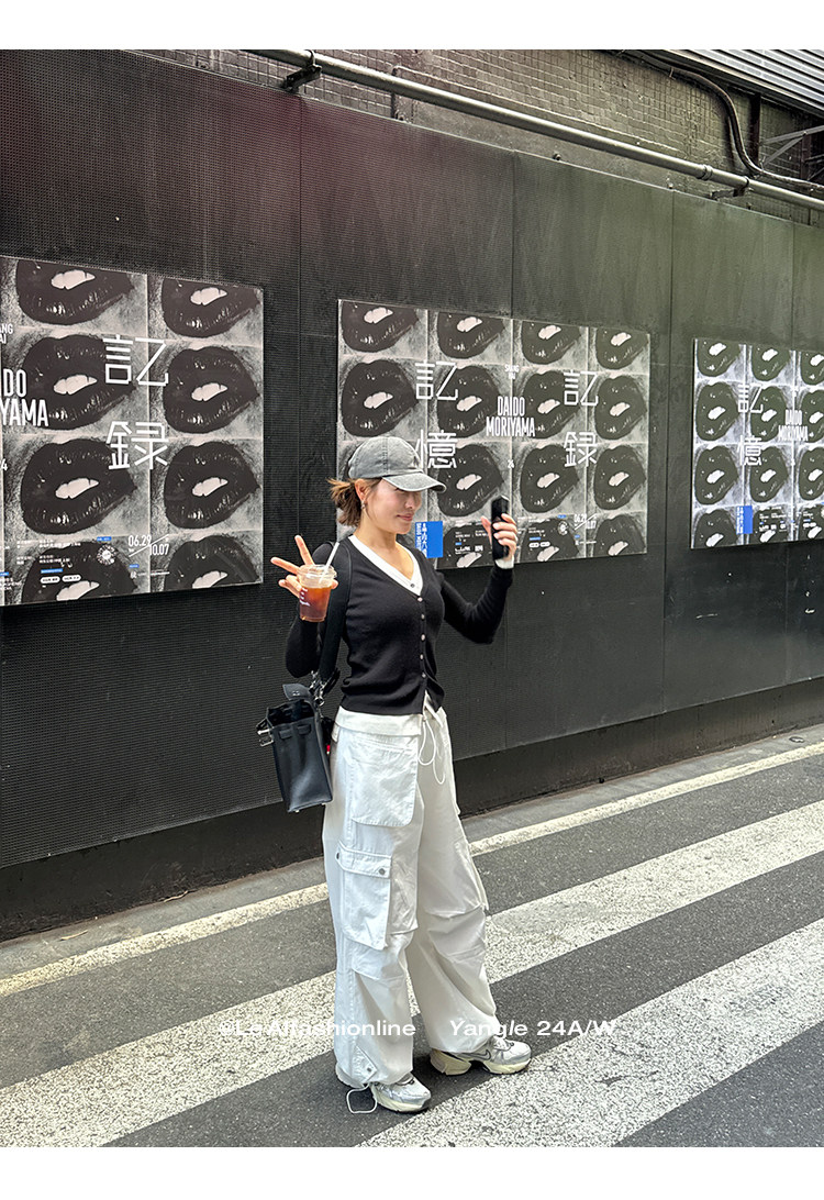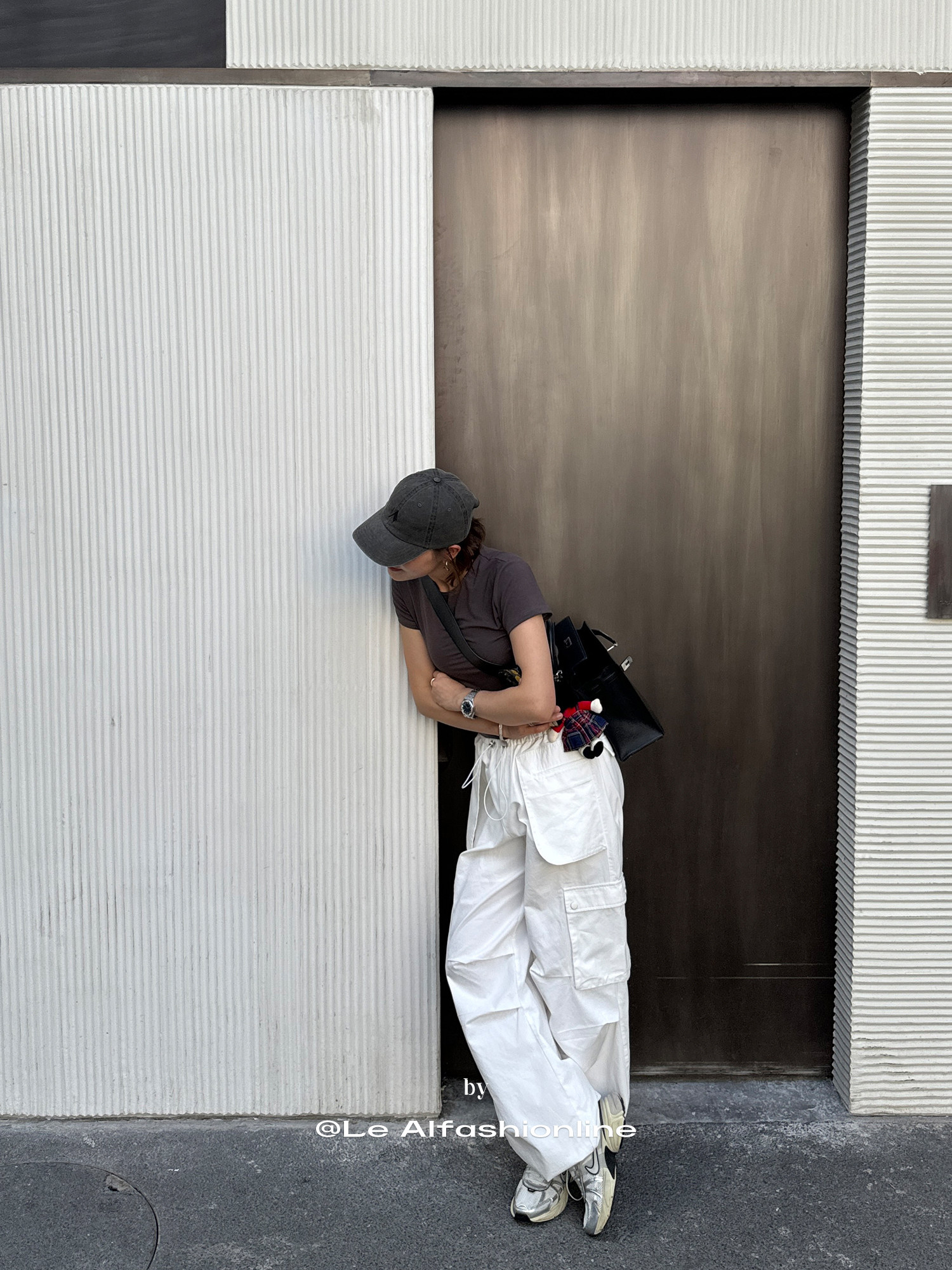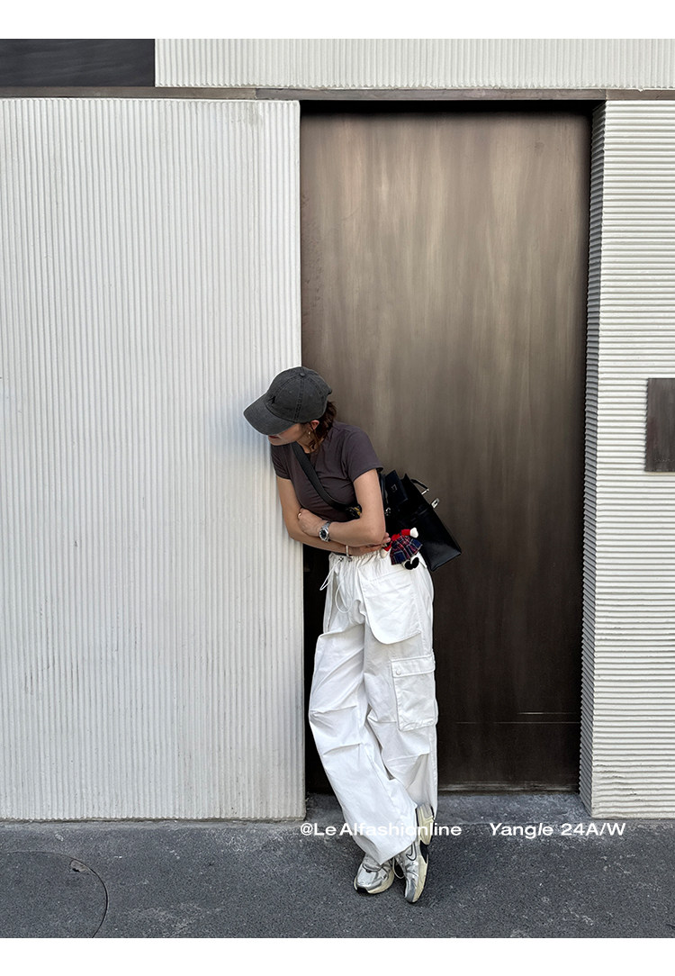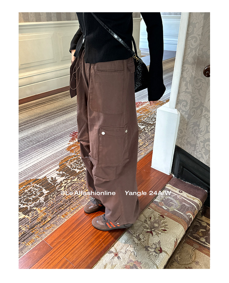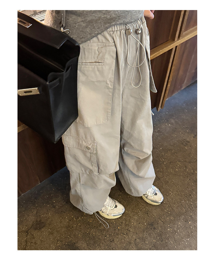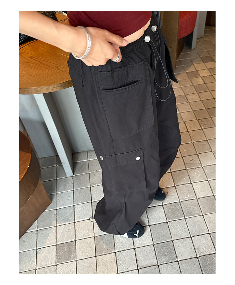 - 松緊腰口袋直筒闊腿工裝褲 - @YANGLE大紅唇 24S/S