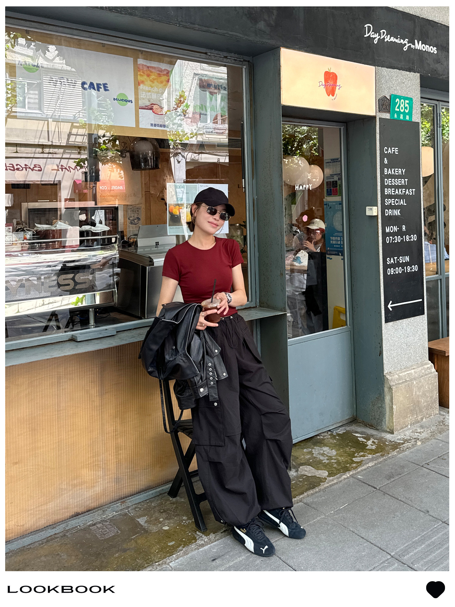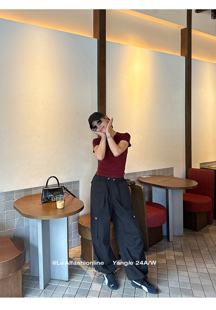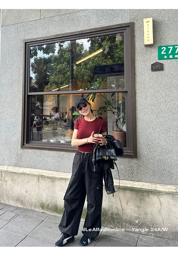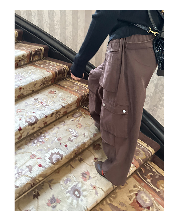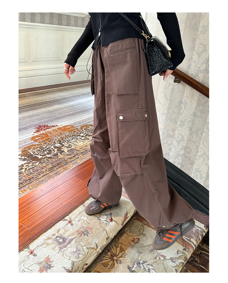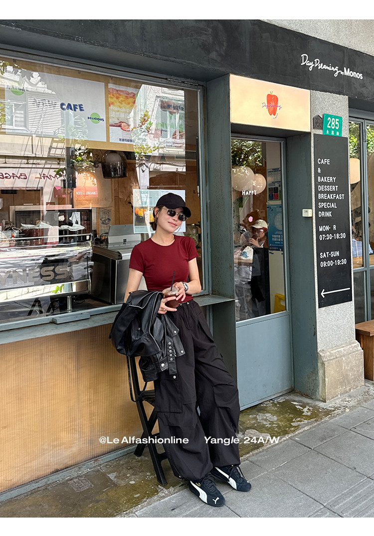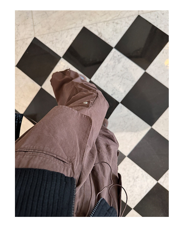 - 松緊腰口袋直筒闊腿工裝褲 - @YANGLE大紅唇 24S/S