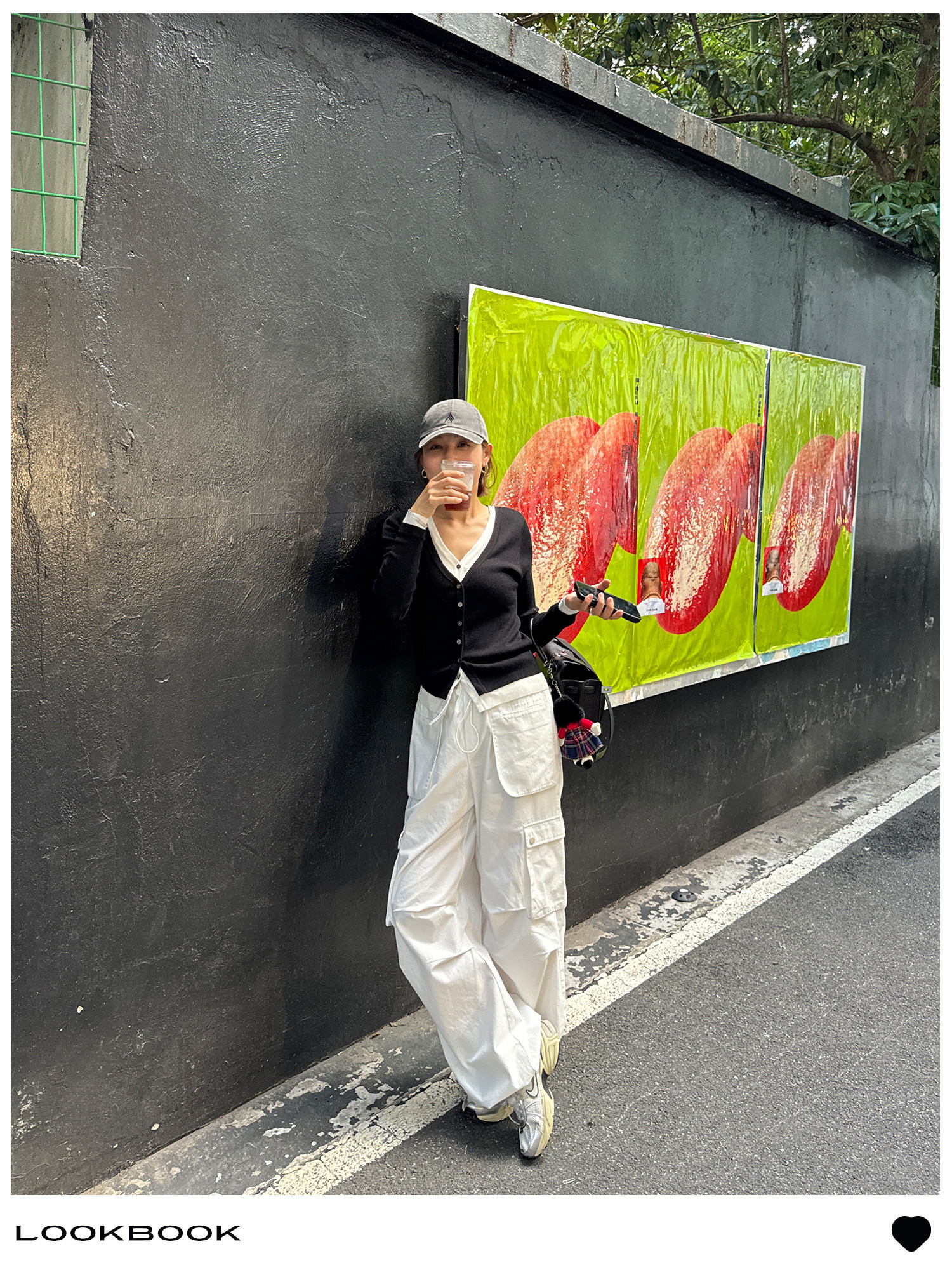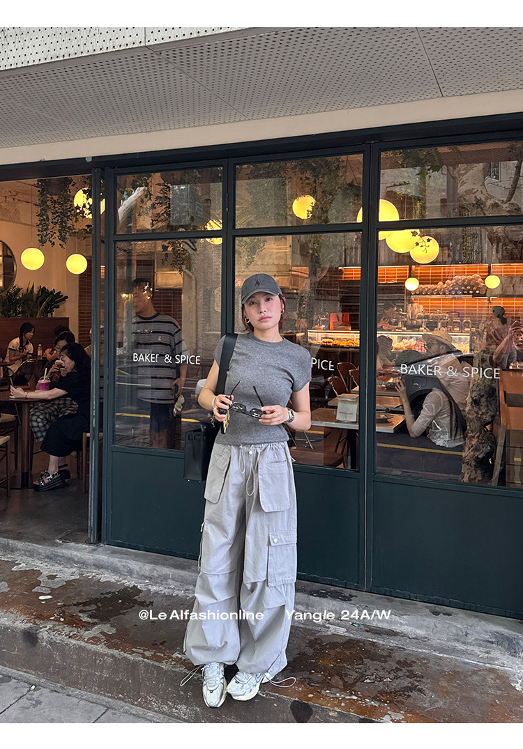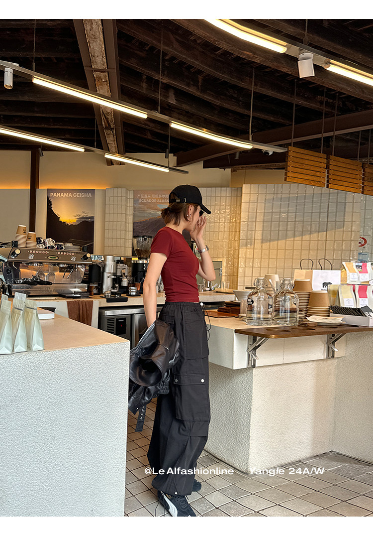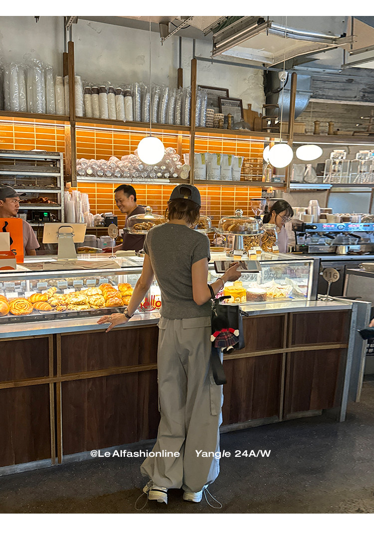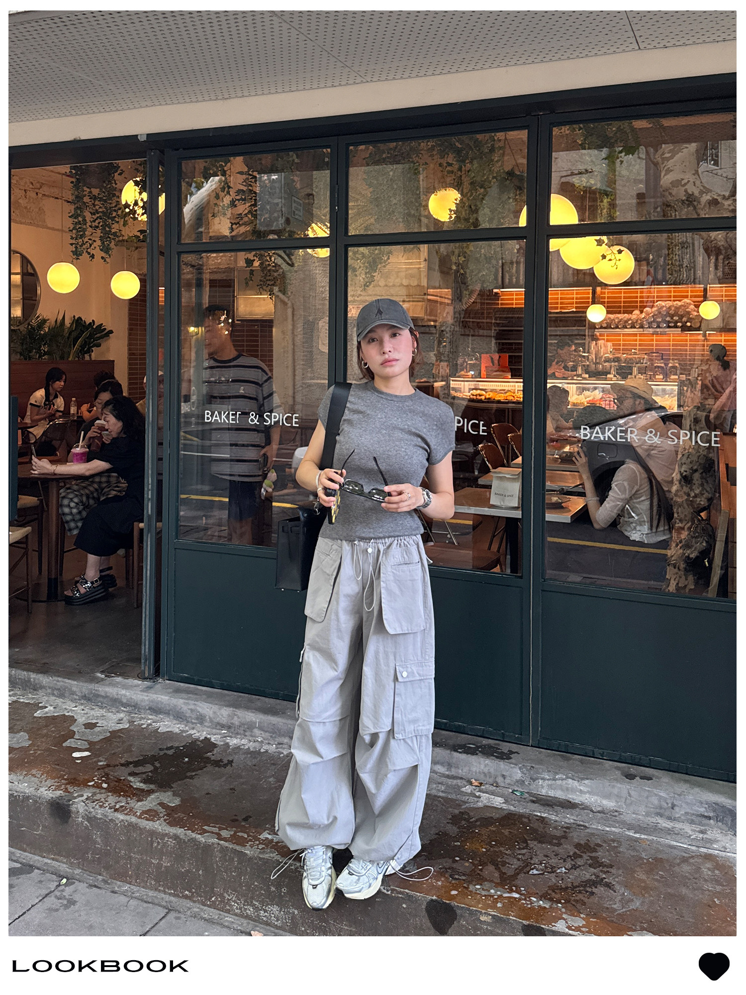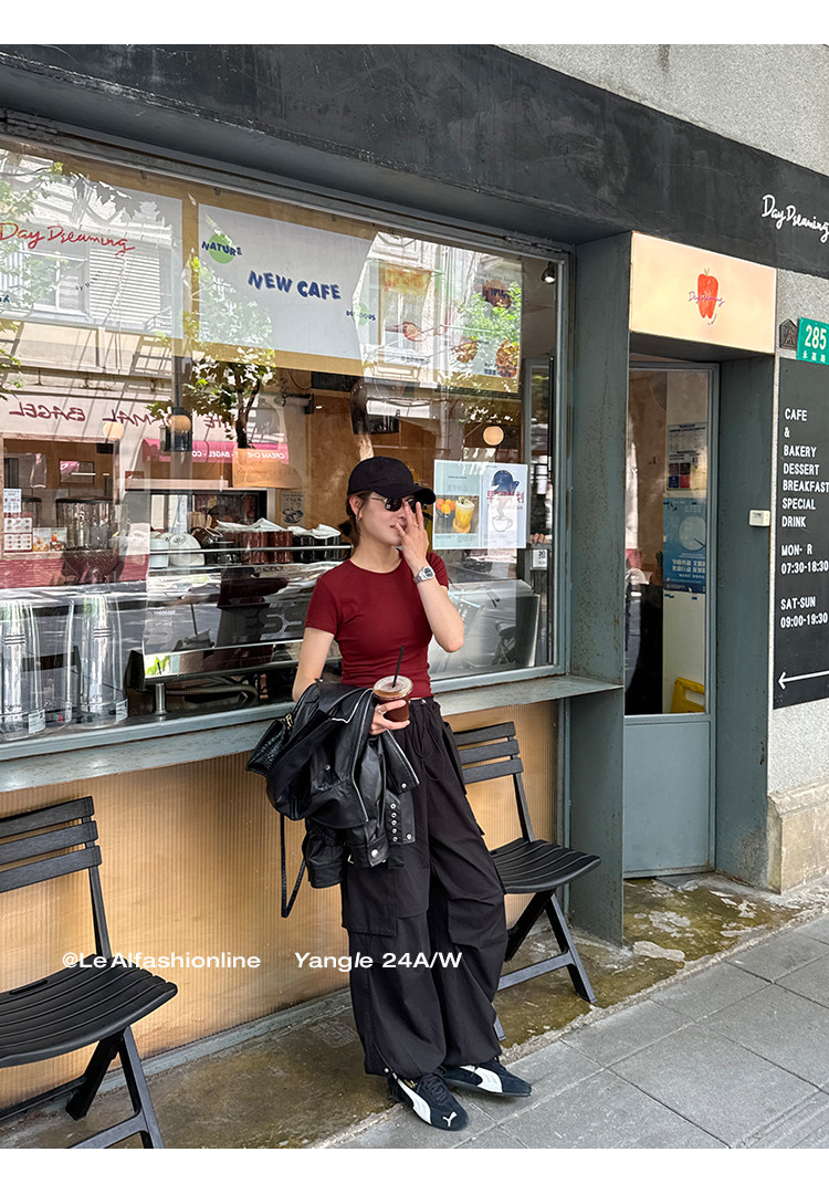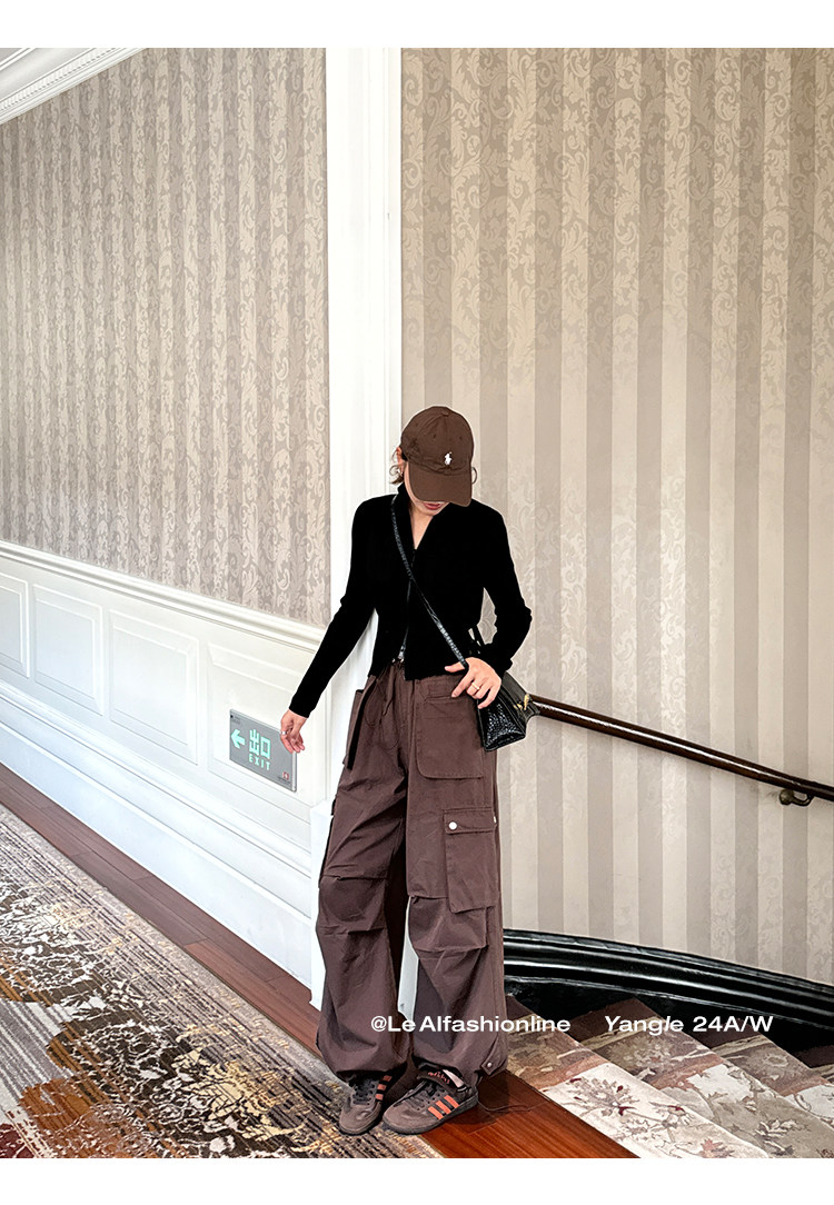 - 松緊腰口袋直筒闊腿工裝褲 - @YANGLE大紅唇 24S/S
