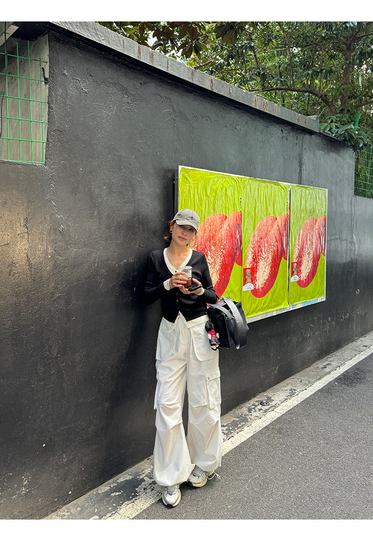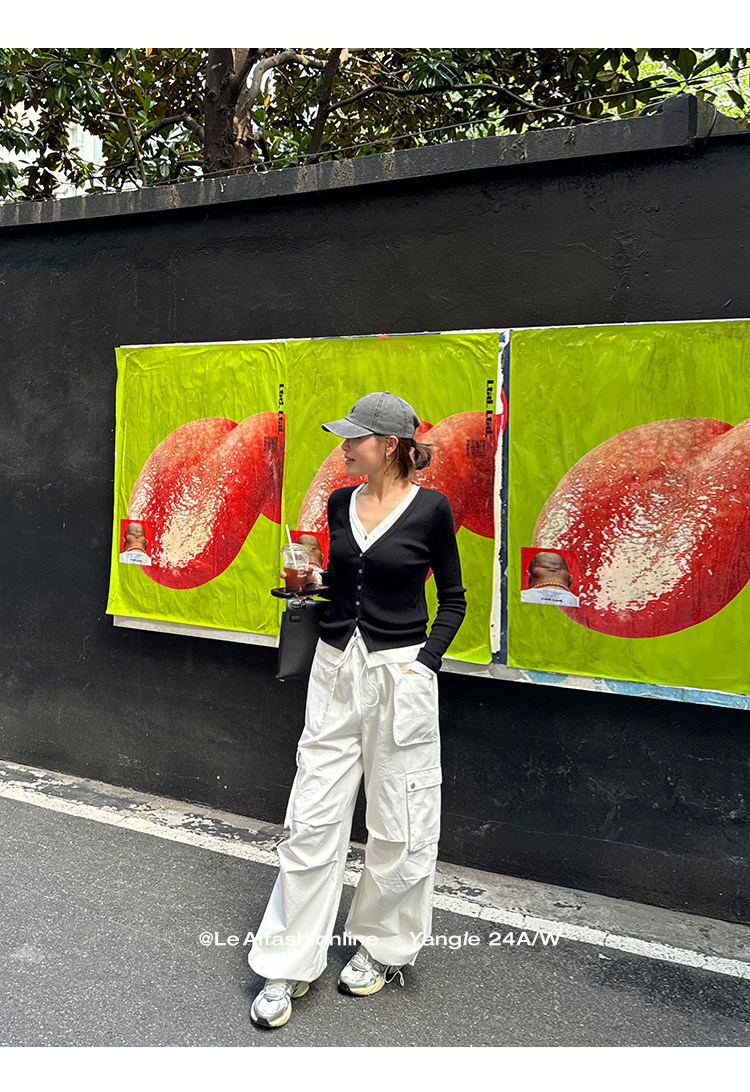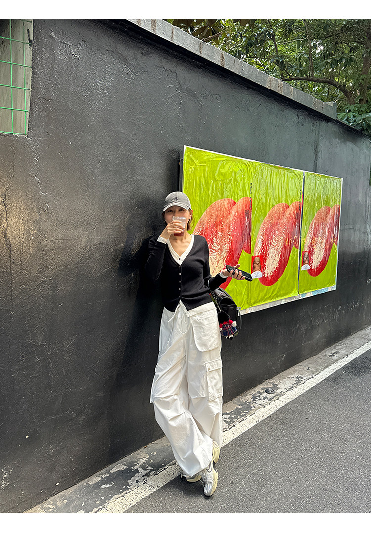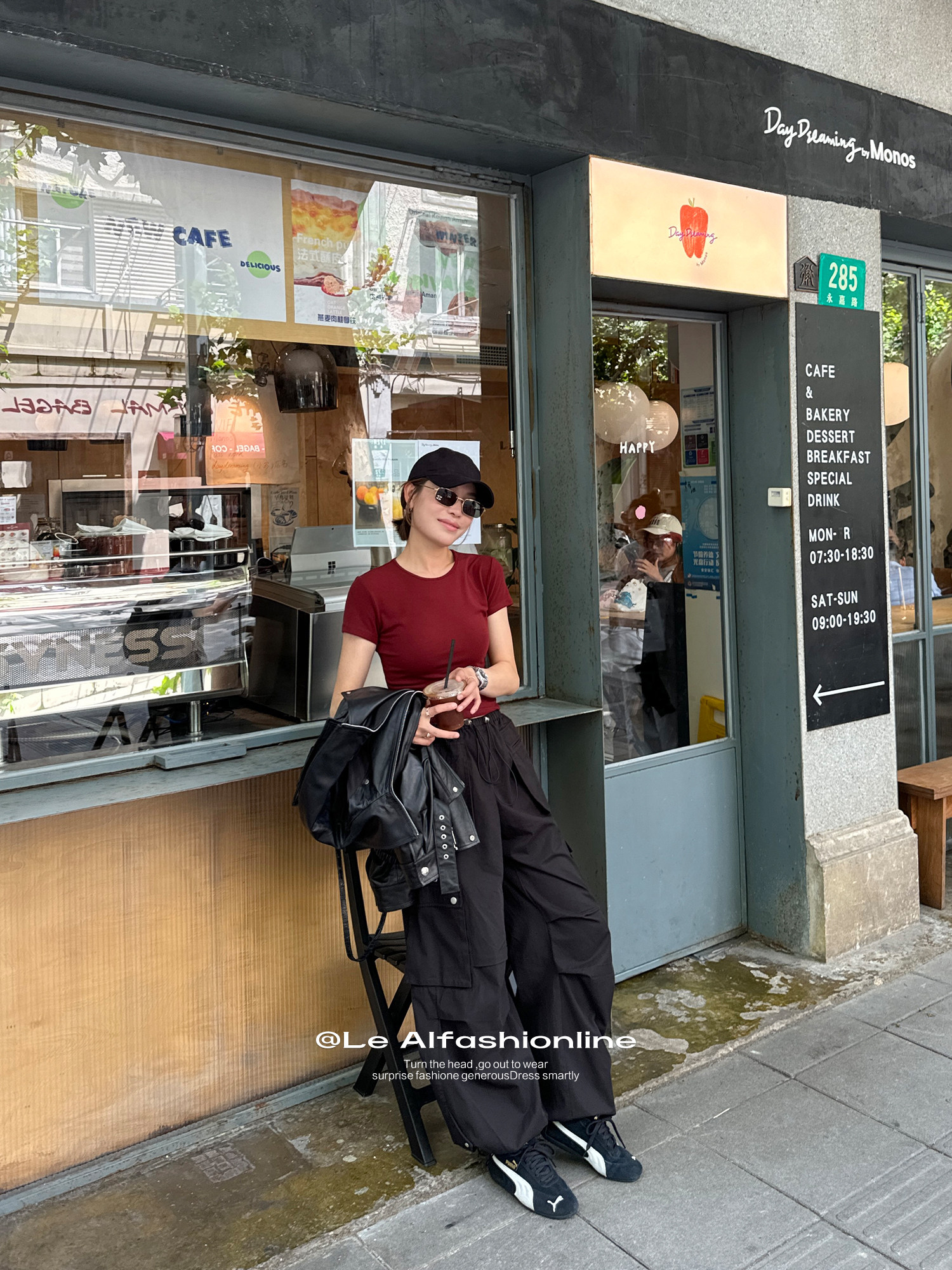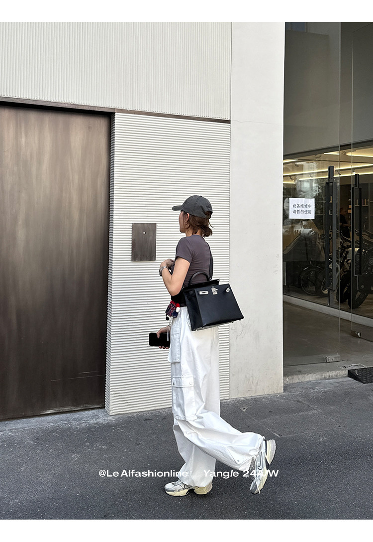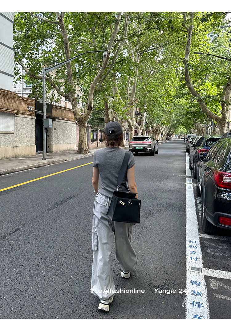 - 松緊腰口袋直筒闊腿工裝褲 - @YANGLE大紅唇 24S/S
