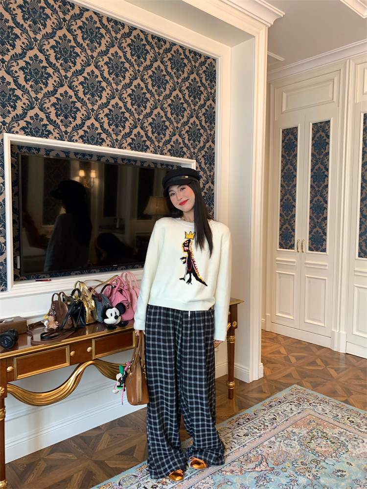 它真的wan全不挑搭配,墻裂推薦寶子入手模特小姐姐同款恐龍提花毛衣!