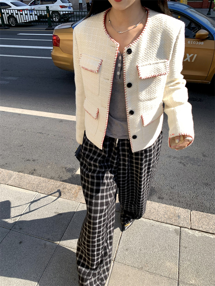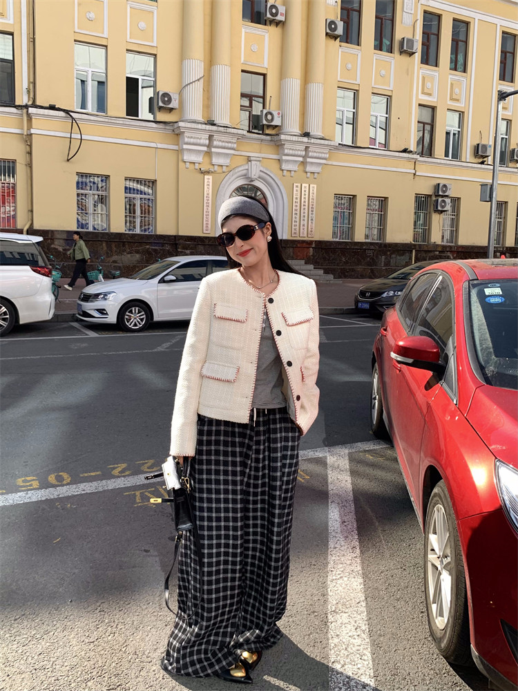 格紋色織面料,有點兒呢料的感覺,親膚且保暖,南方過冬直接穿著毫無壓力~
