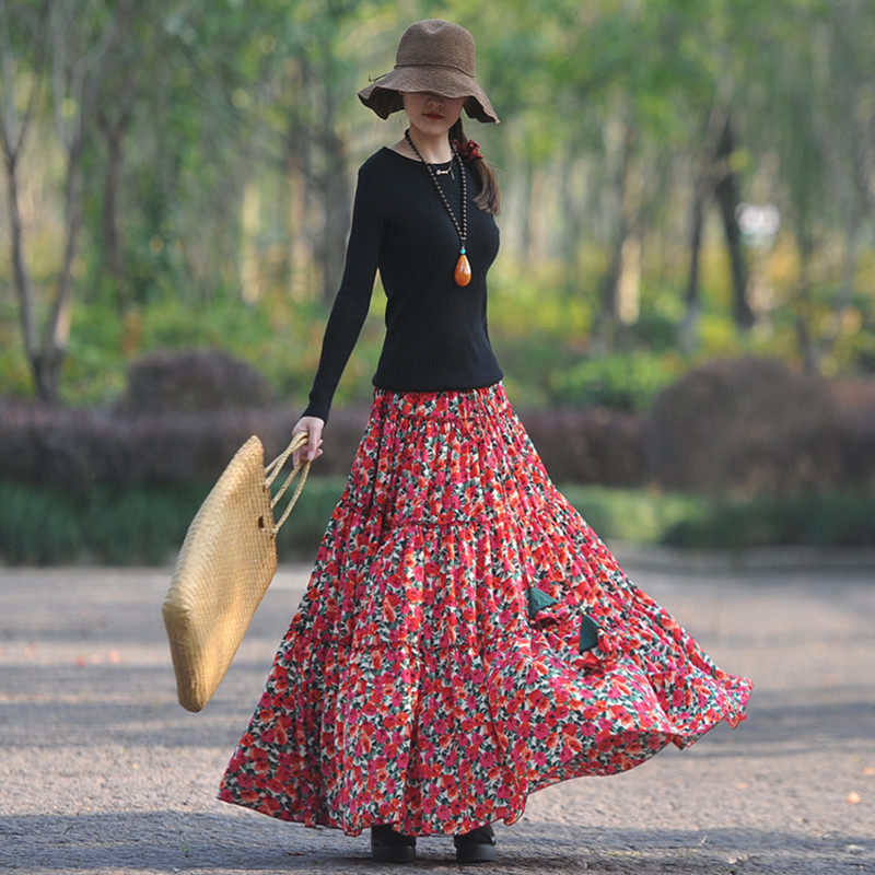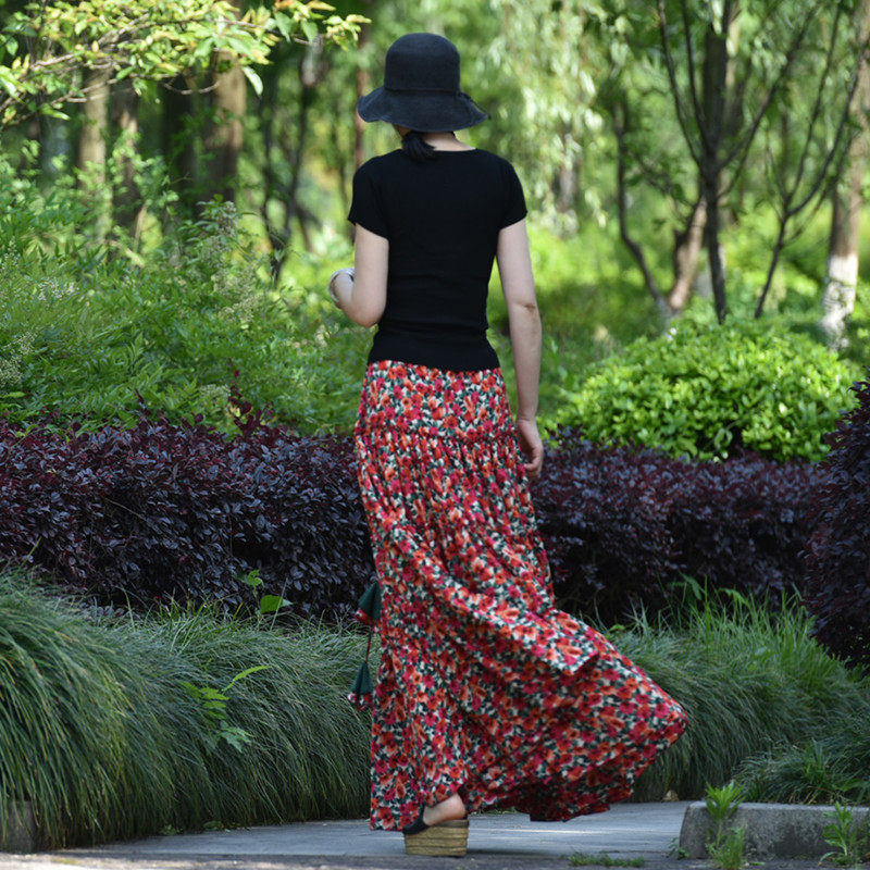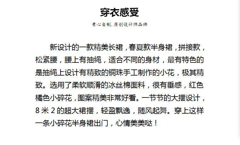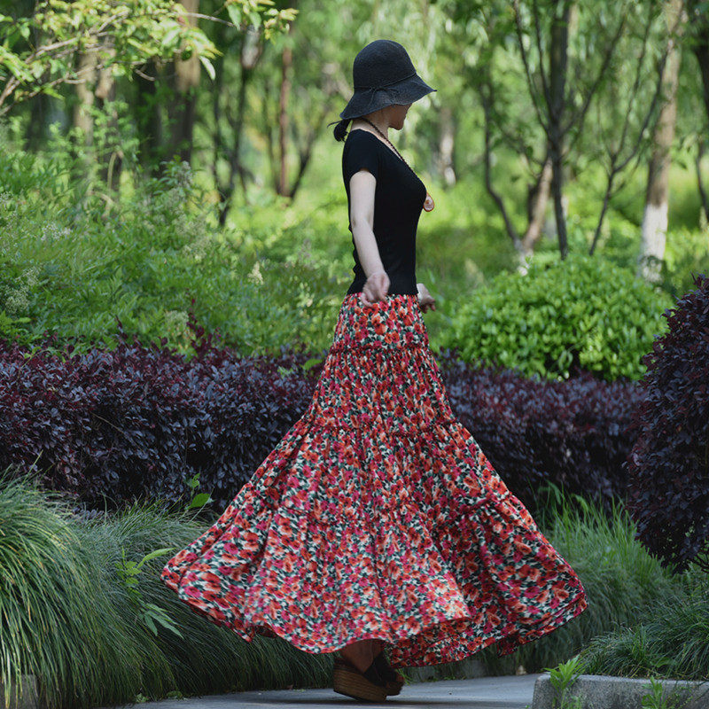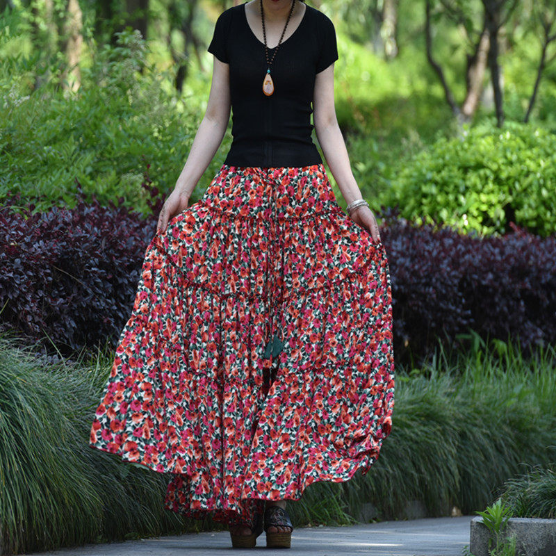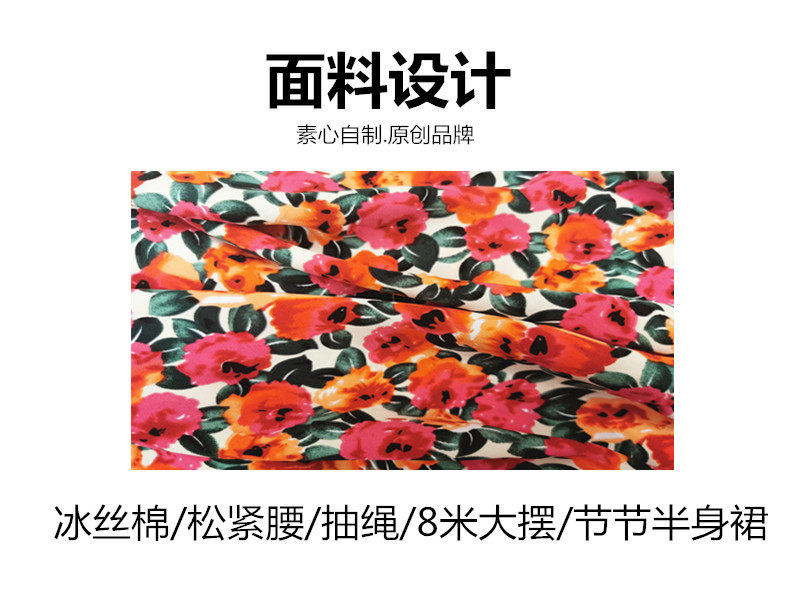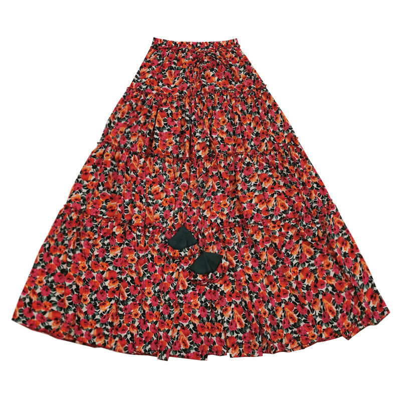 【嫣紅】素心自制碎花半身裙春夏 a字系帶顯瘦超大擺跳舞長裙包郵
