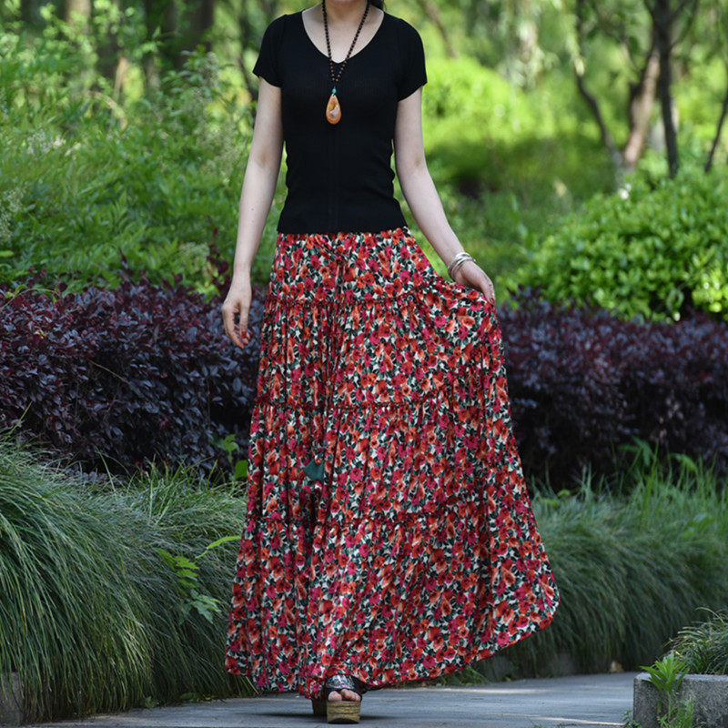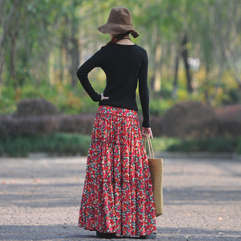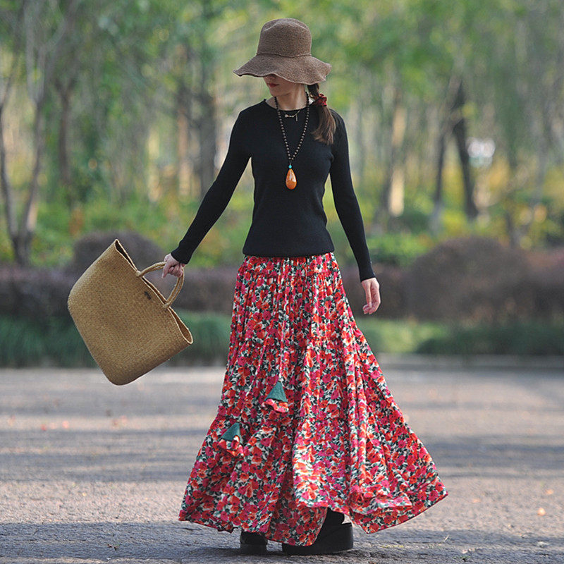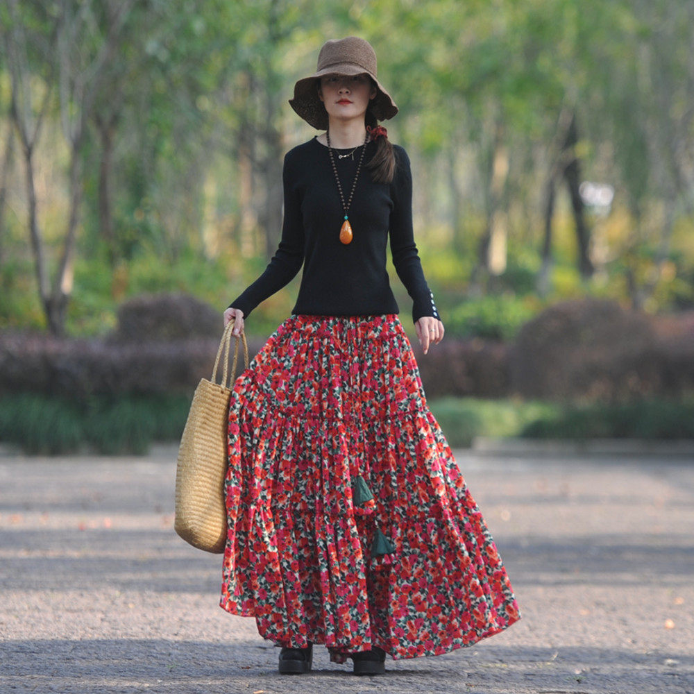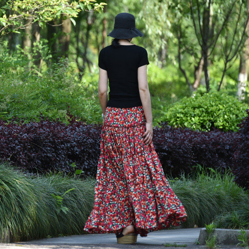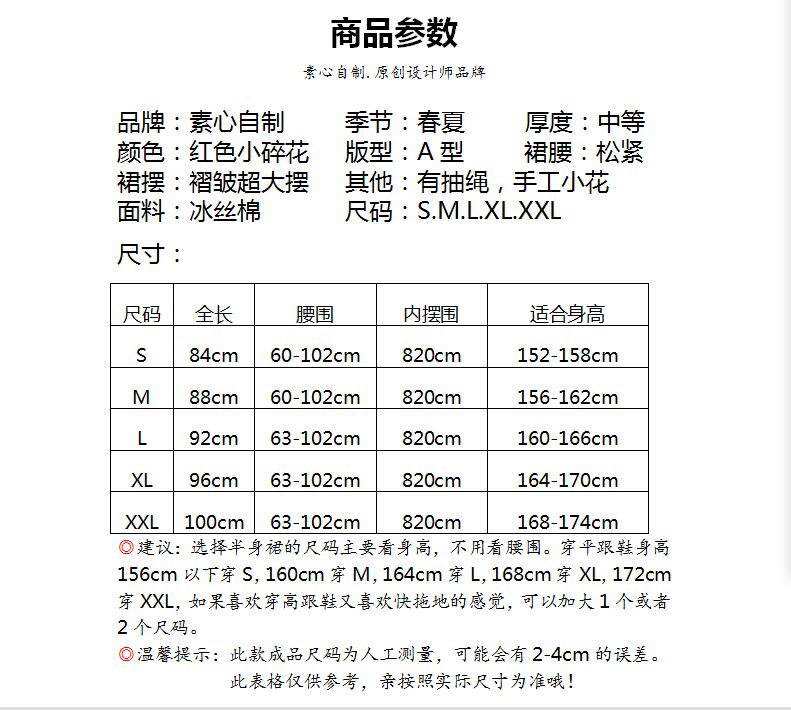 【嫣紅】素心自制碎花半身裙春夏 a字系帶顯瘦超大擺跳舞長裙包郵