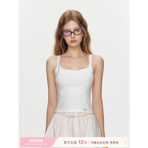 Kroche 純白蕾絲 一體式帶胸墊吊帶背心內搭外穿上衣