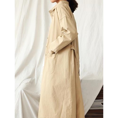 T臺趨勢~韓國設計師款翻領雙排扣寬松廓形中長款風衣外套KAKA特惠