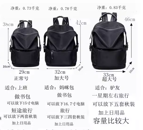 可以放下15寸電腦 可以放下兩套秋裝加上日用品