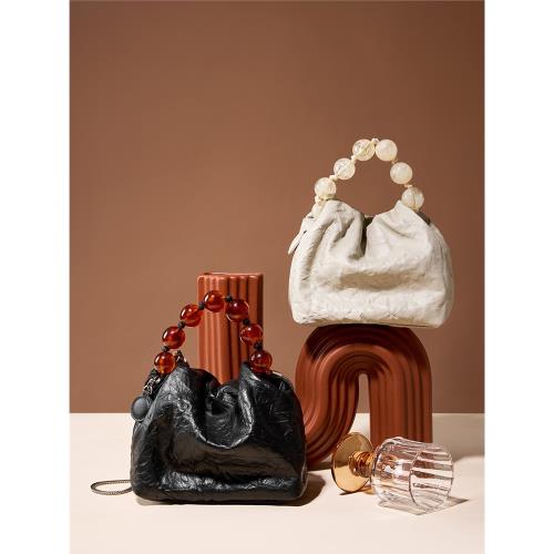 新中式珠子手拎晚宴包真皮云朵包腋下云吞包手抓紋頭層牛皮斜挎包