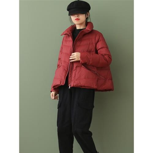 洋氣白鴨絨羽絨服女士短款小個子氣質時尚款斗篷A字型保暖短外套