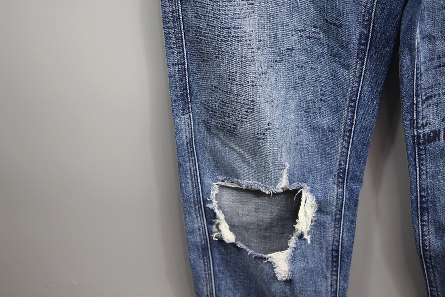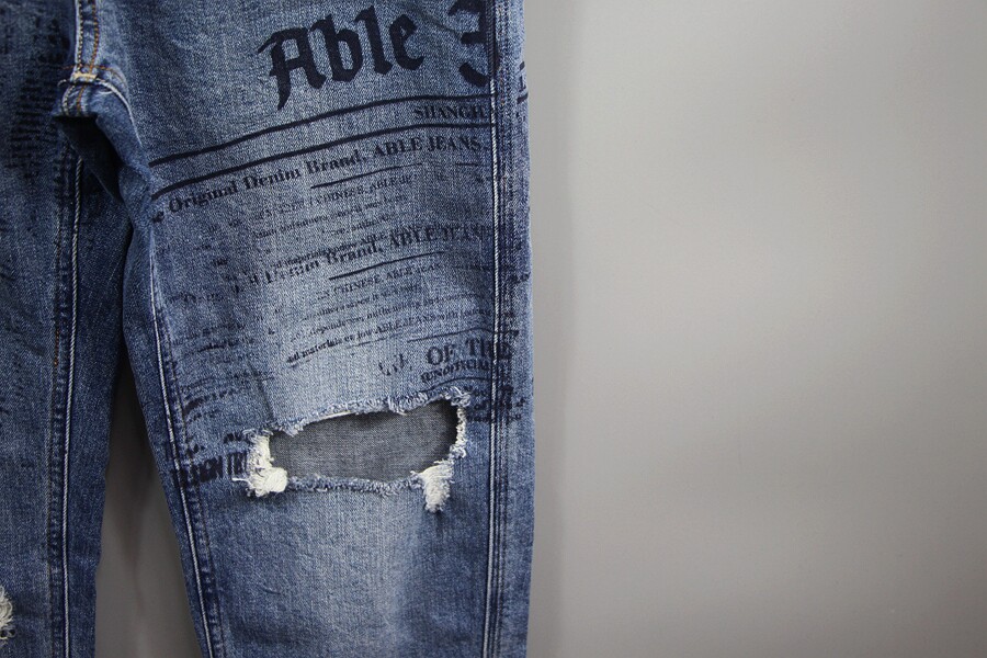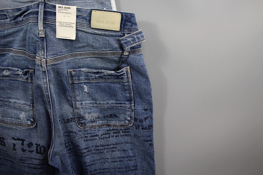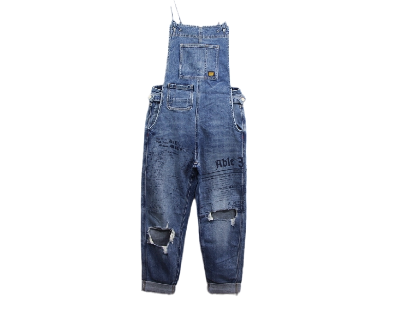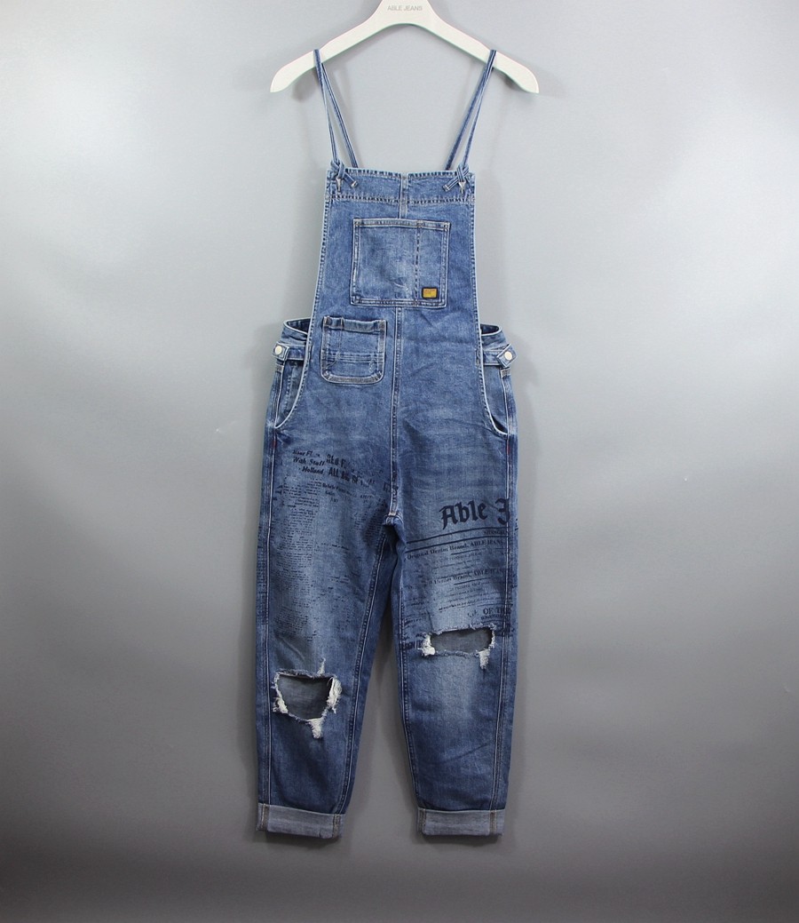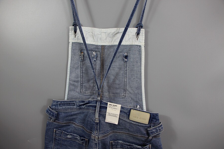 ABLE JEANS女士背帶牛仔褲春夏新品薄款彈力水洗破洞休閑連身九分
