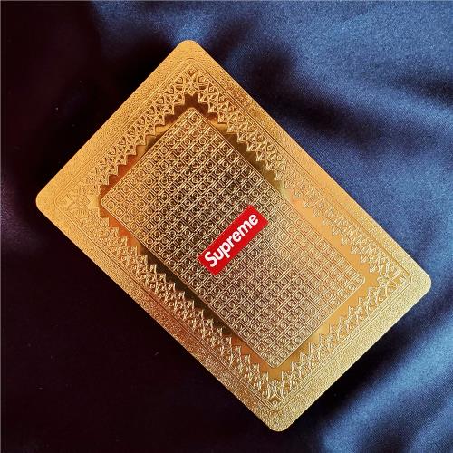 Supreme高顏值撲克牌金屬加厚塑料防水黃金色創意個性潮防折PVC硬