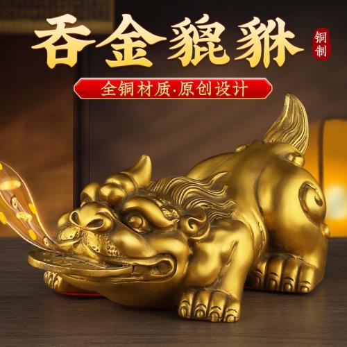 (免運)貔貅擺件全純黃黃銅金錢元寶家居飾品皮錢獸招店鋪工藝品皮丘貔犰