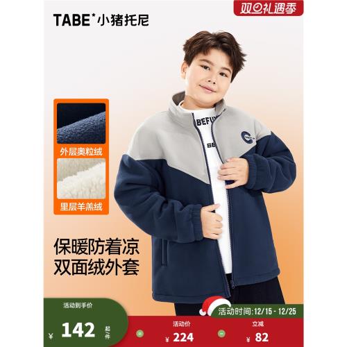 (免運)小豬托尼胖男童外套秋冬款加絨加厚男大童羊羔絨搖粒絨厚款保暖衣
