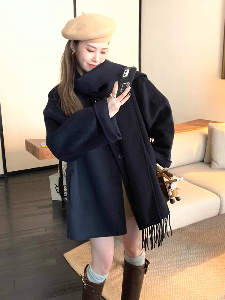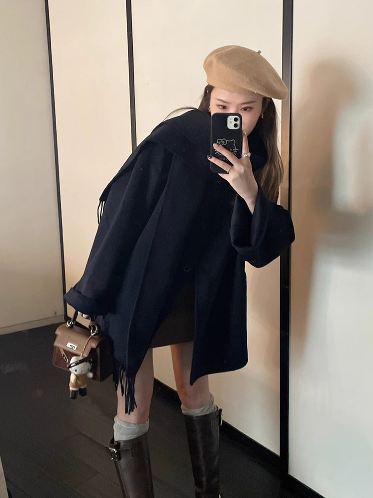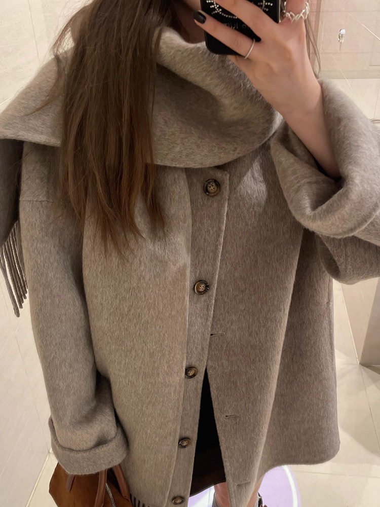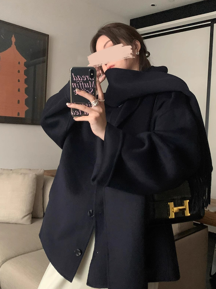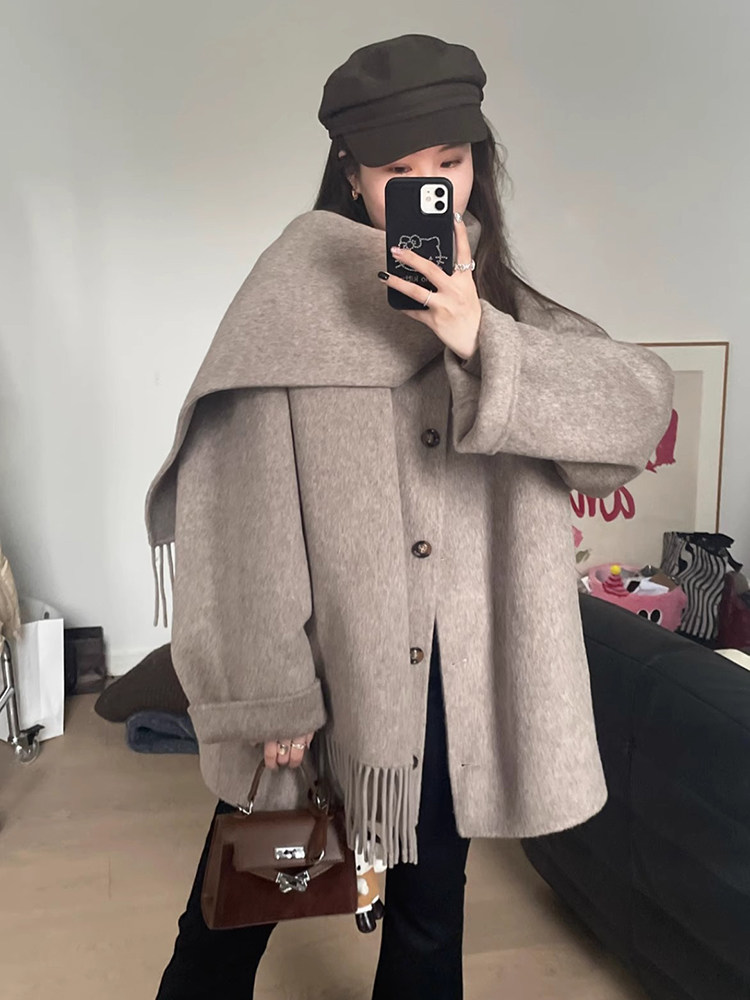 網紅同款一體式圍巾羊毛氣質大衣,融合實用與優雅。