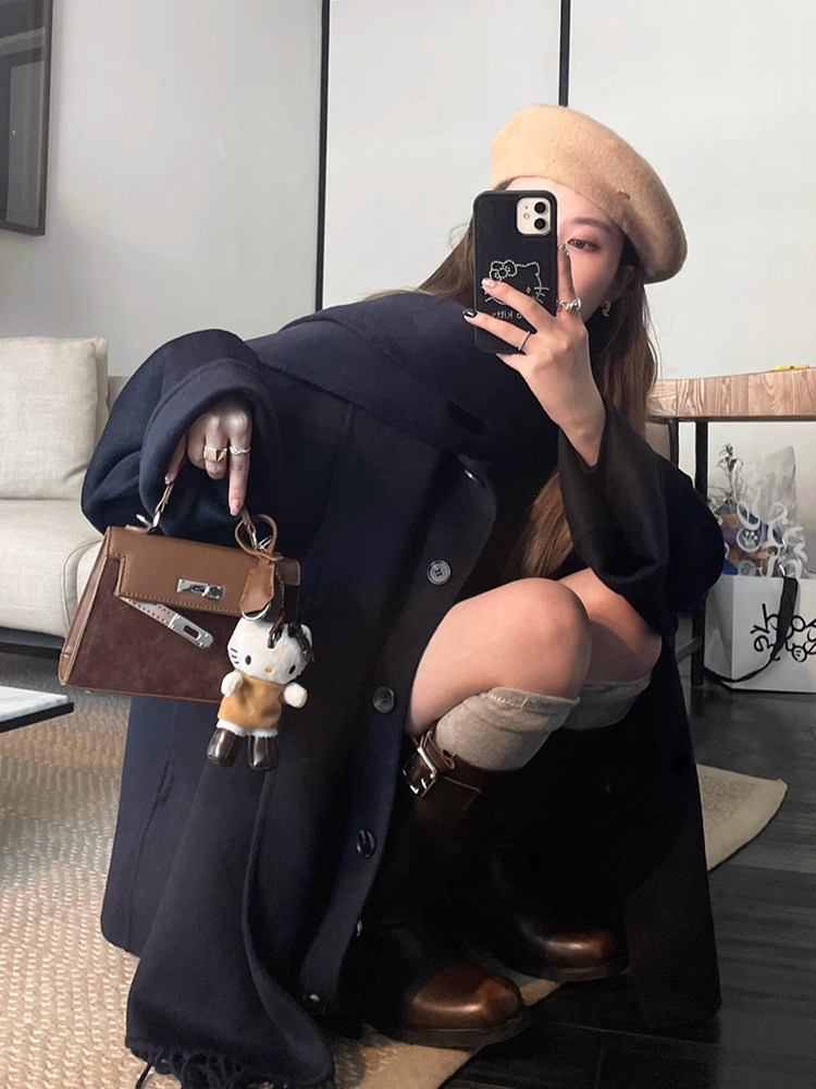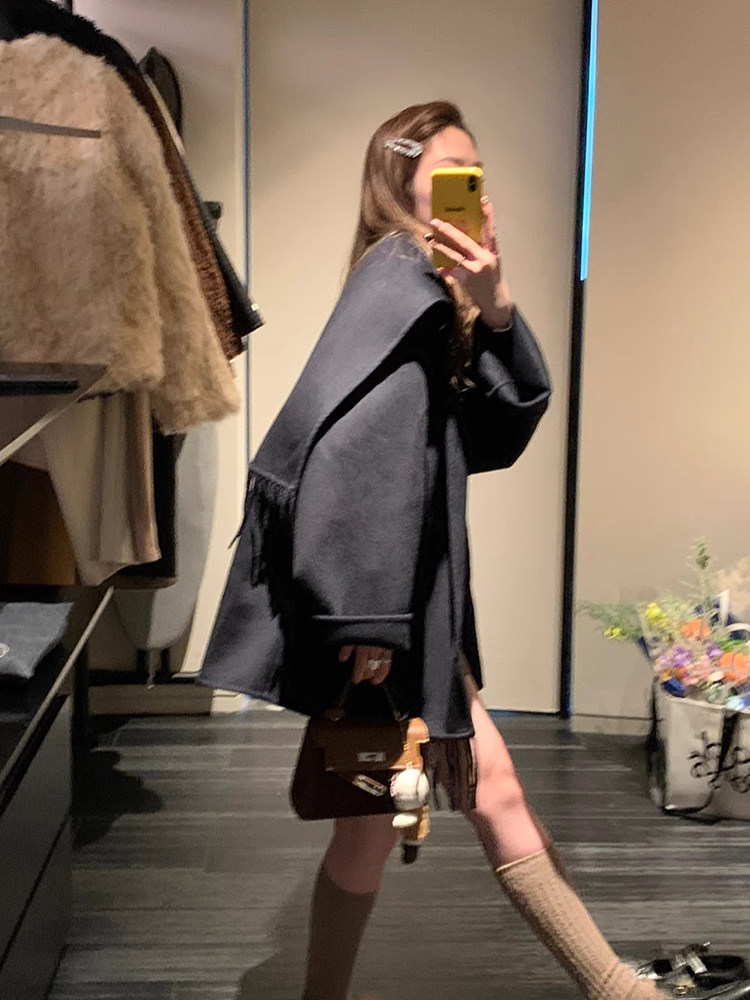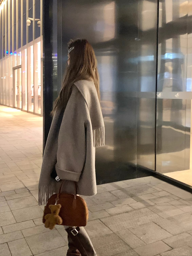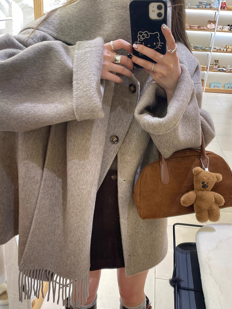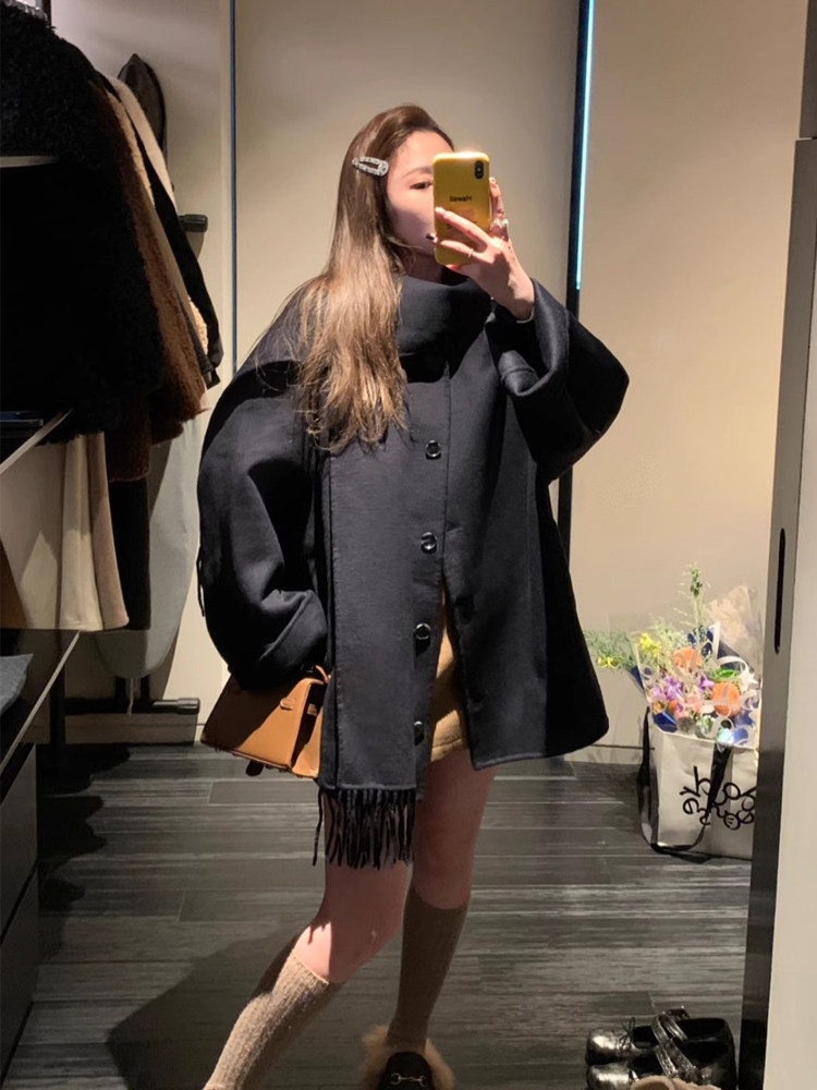 網紅同款一體式圍巾羊毛氣質大衣,融合實用與優雅。
