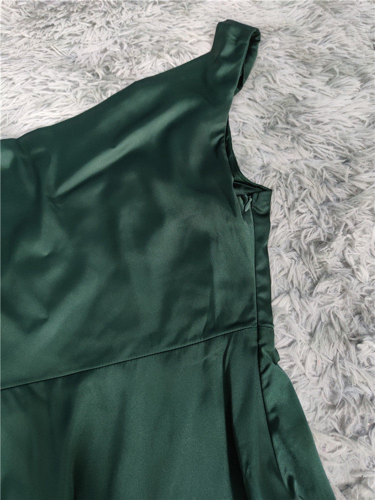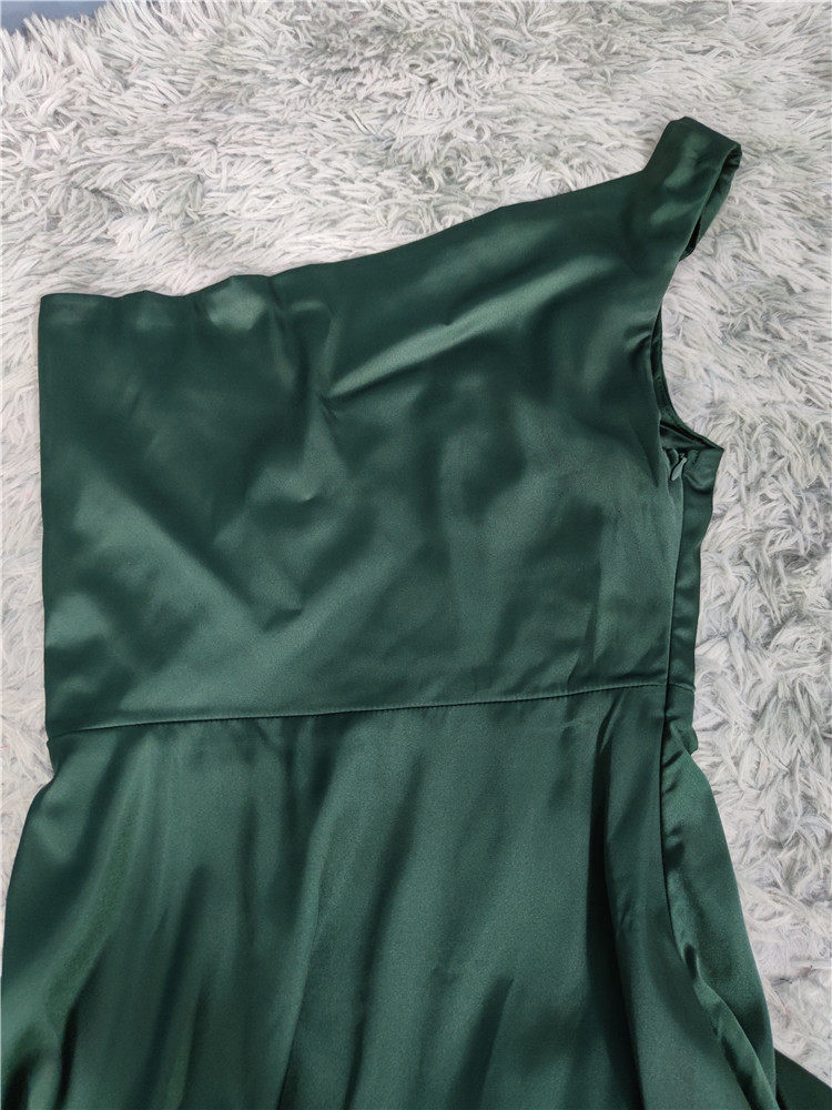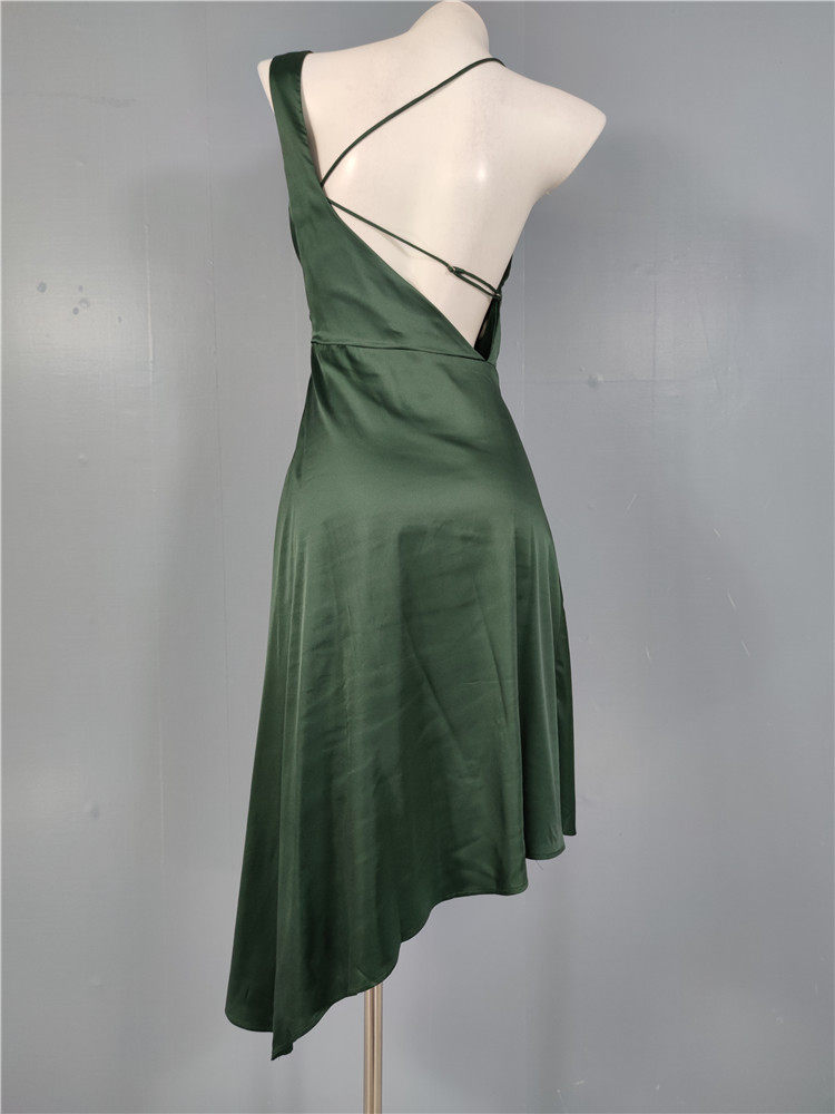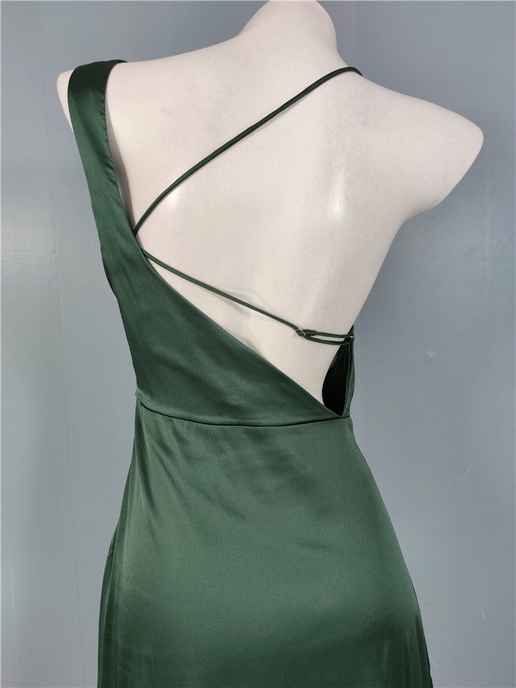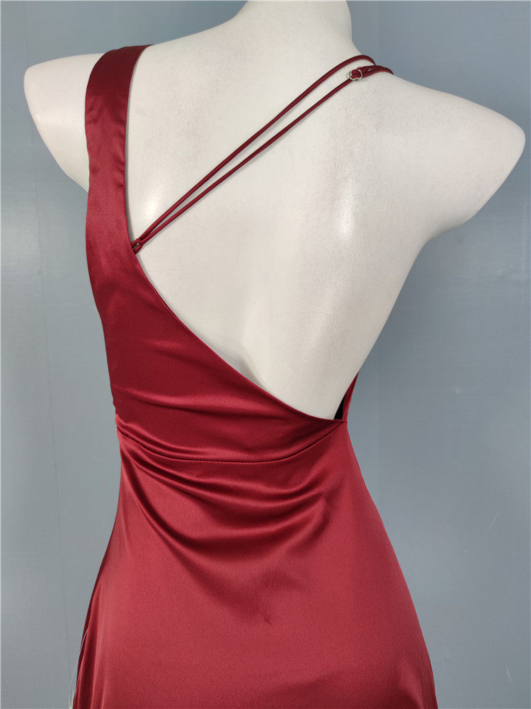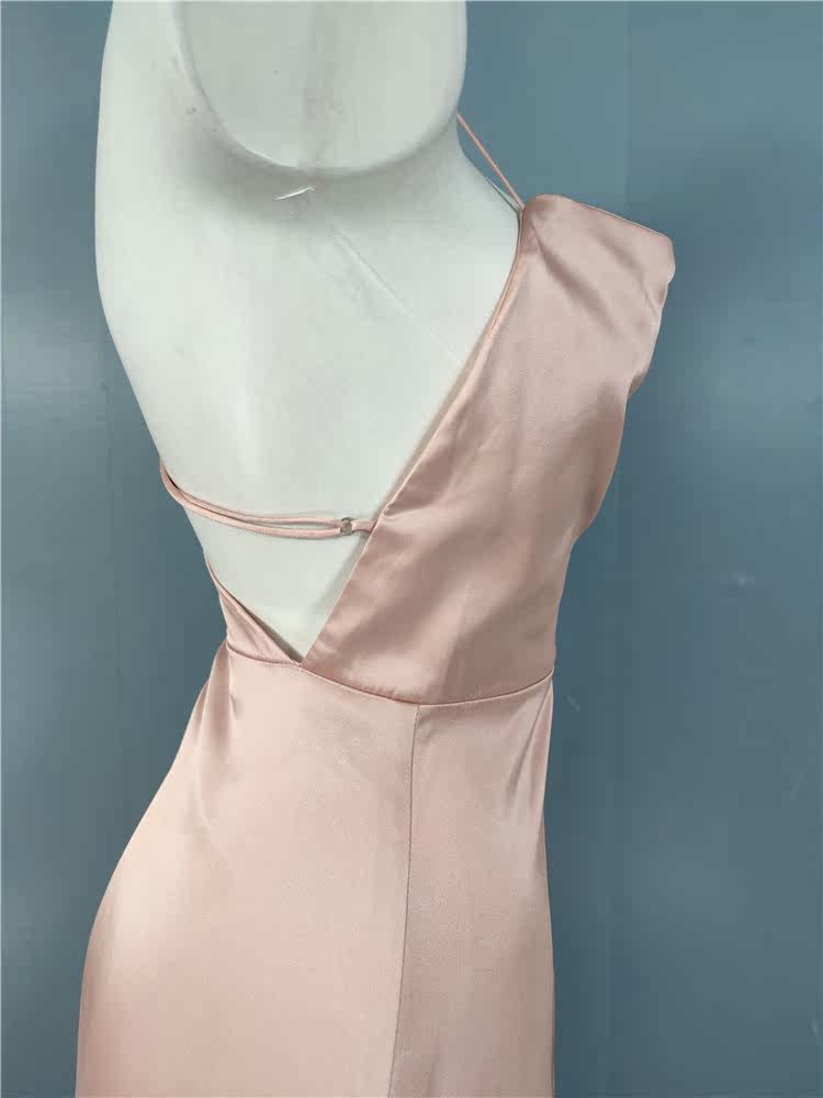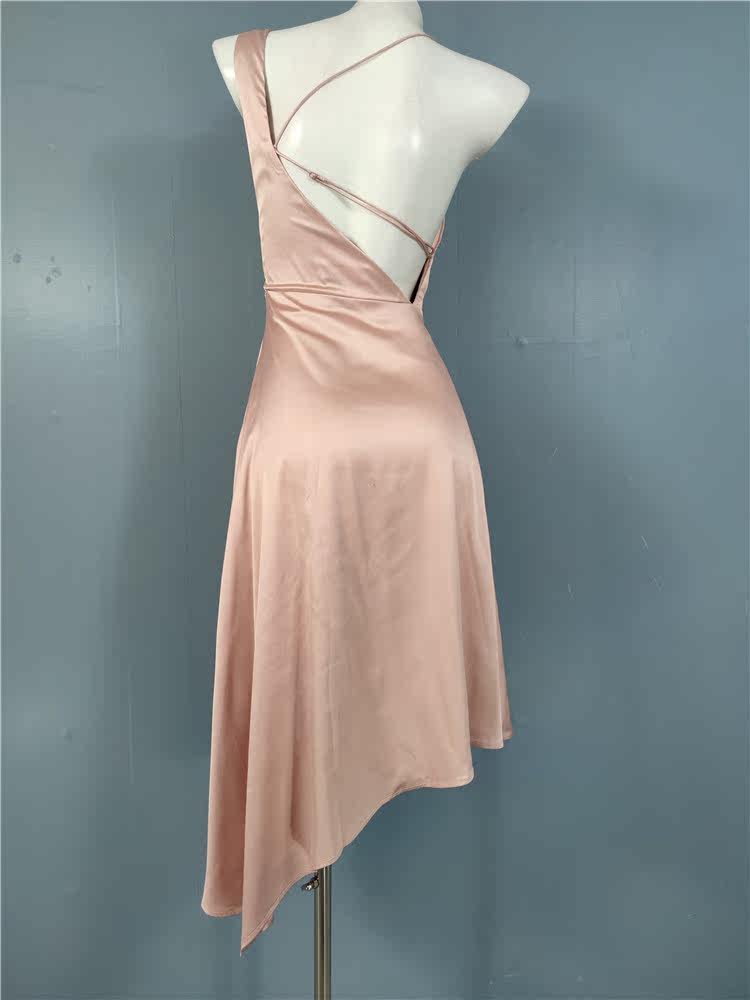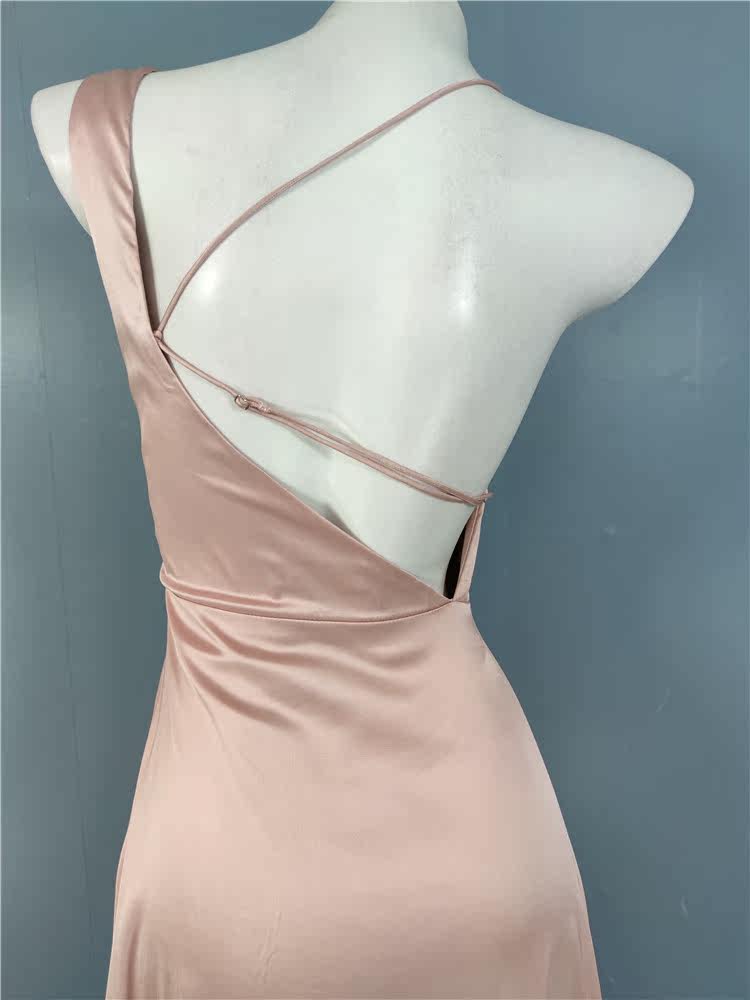外貿LU家春季時尚新款性格辣妹露背光滑面料單肩不規則優雅連衣裙