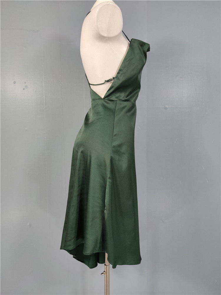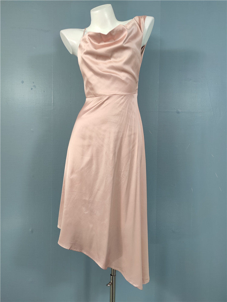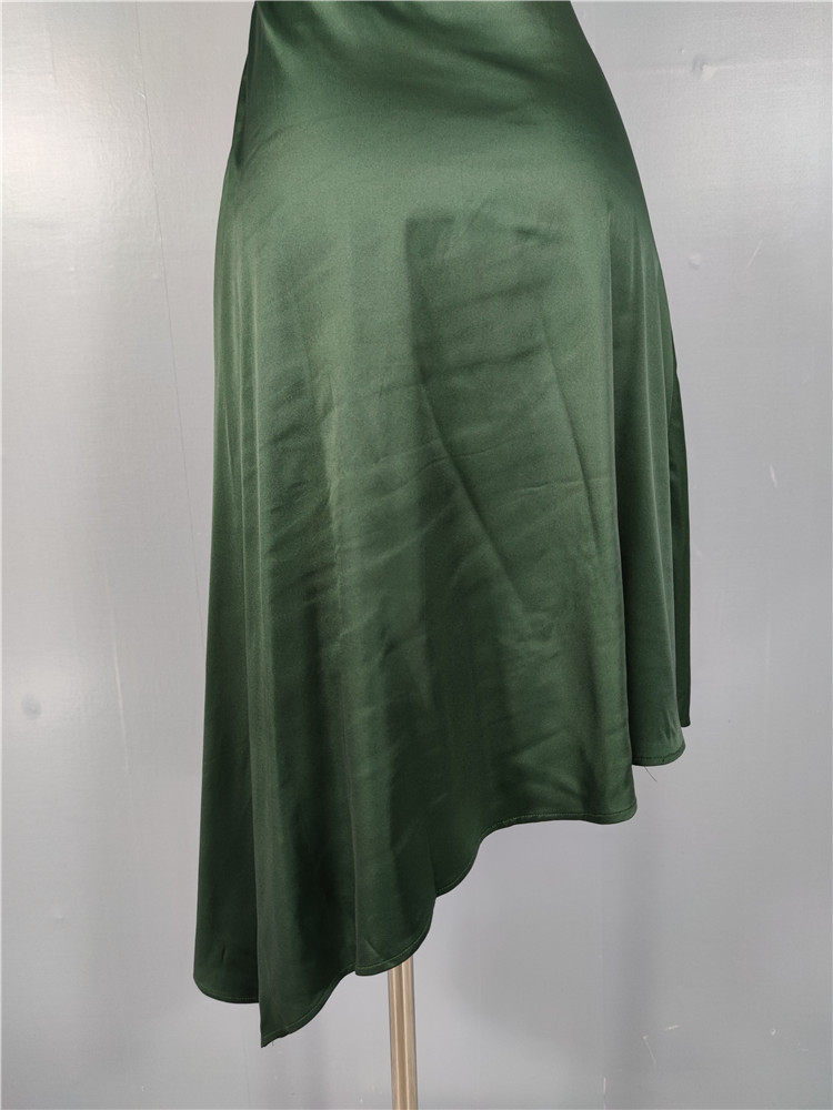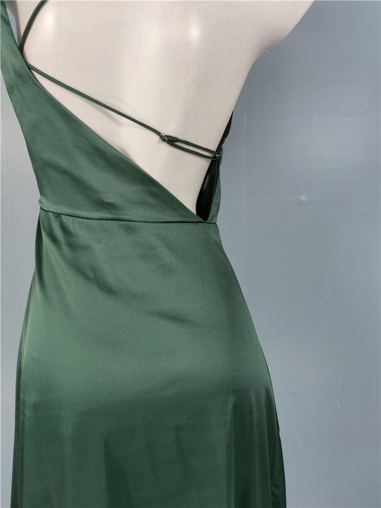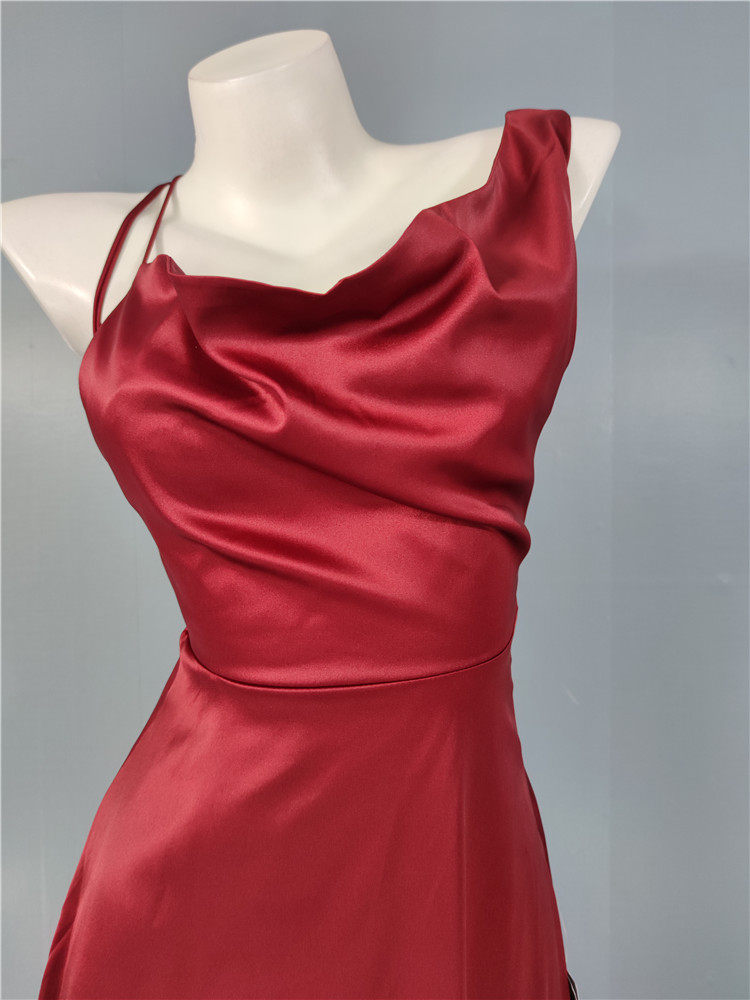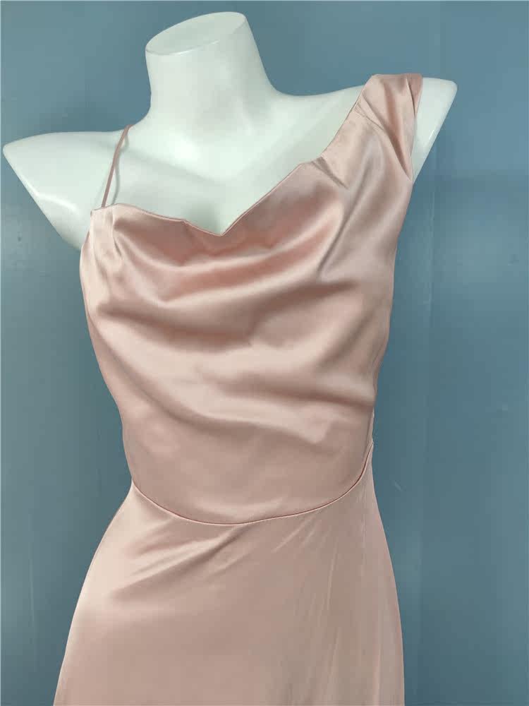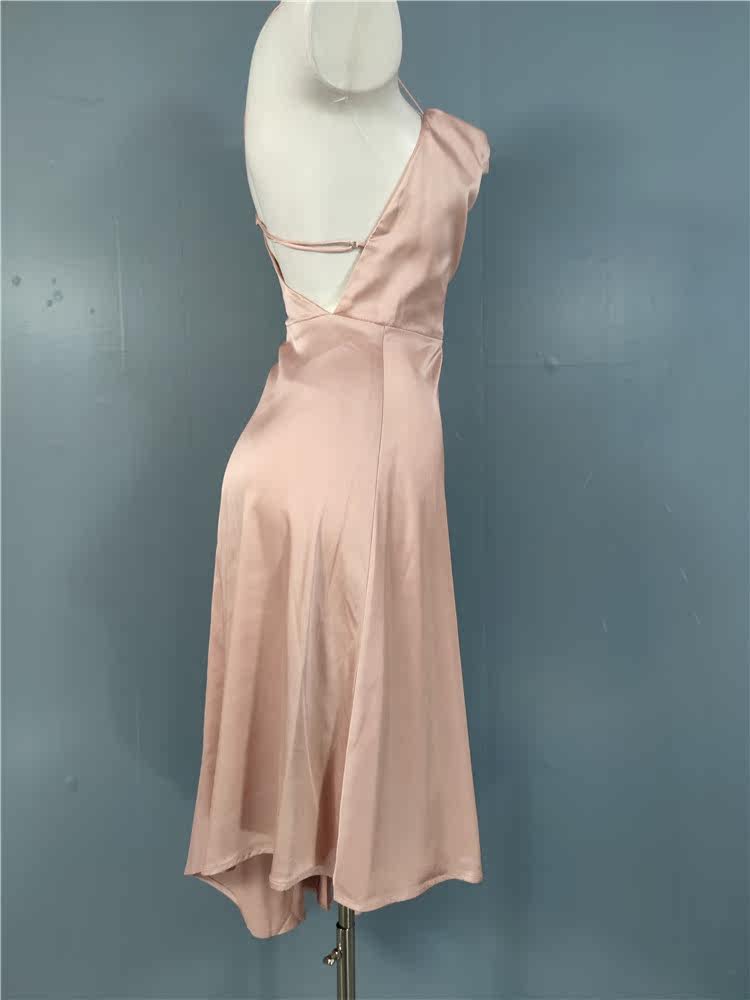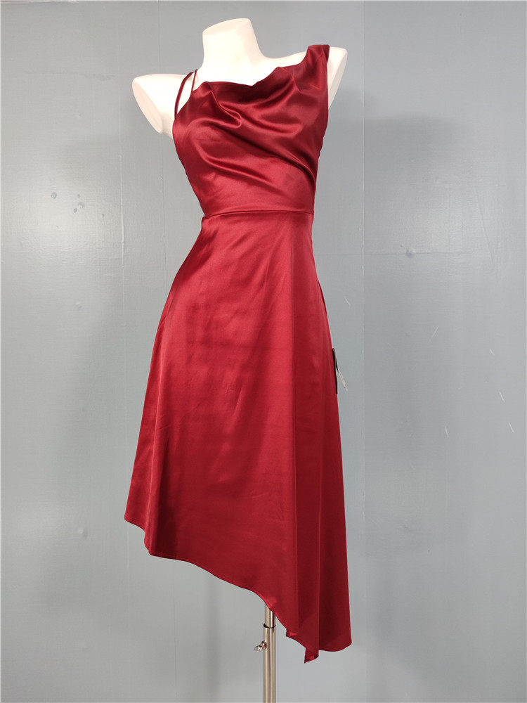 外貿LU家春季時尚新款性格辣妹露背光滑面料單肩不規則優雅連衣裙