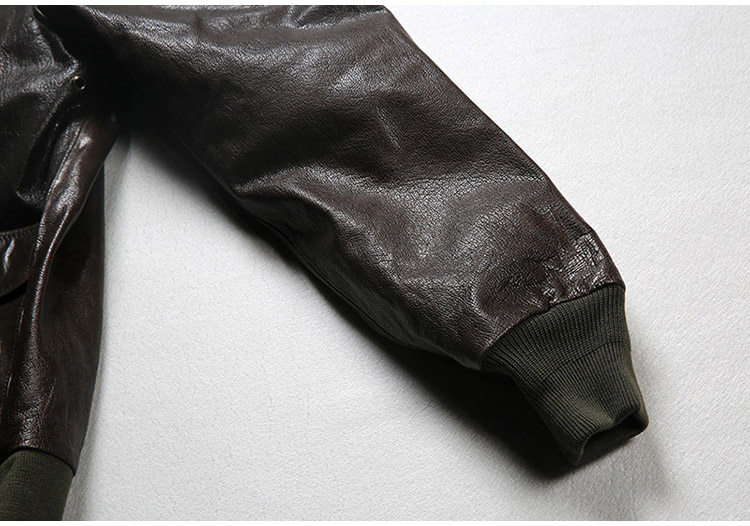 A2空軍飛行夾克,翻領修身短款,植鞣山羊皮皮料,軍綠色皮料,軍用螺紋純棉螺紋