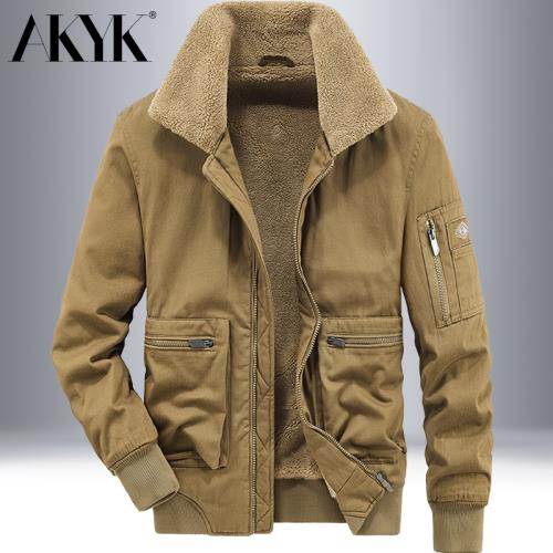 AK秋冬男士羊剪絨翻領夾克加絨加厚寬松大碼工裝棉服防風保暖外套