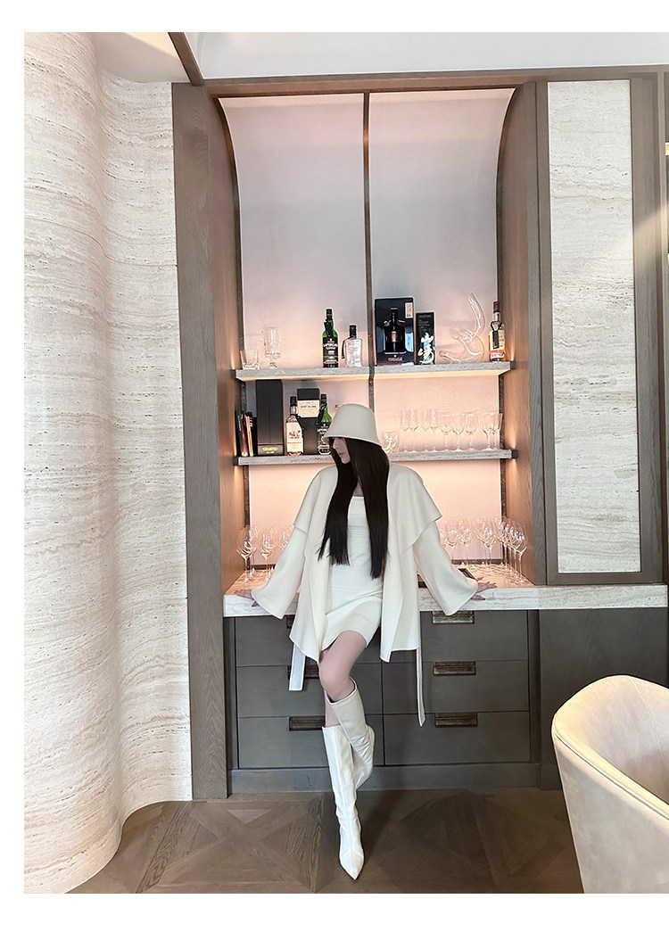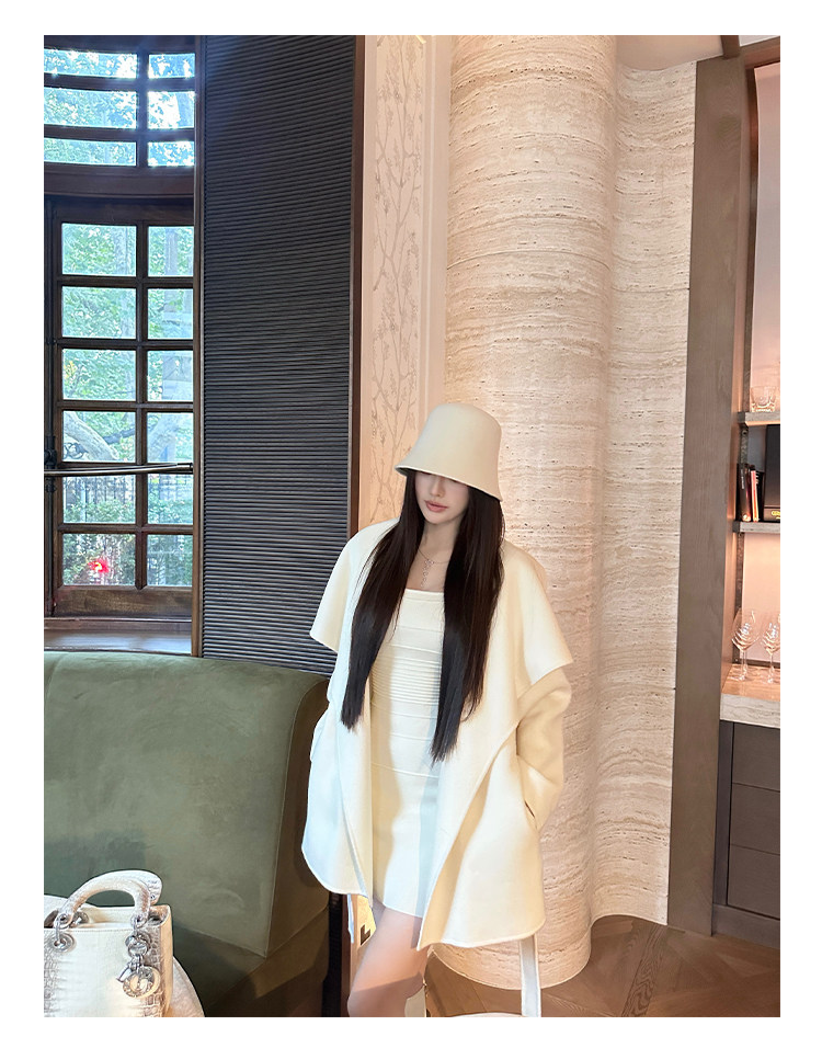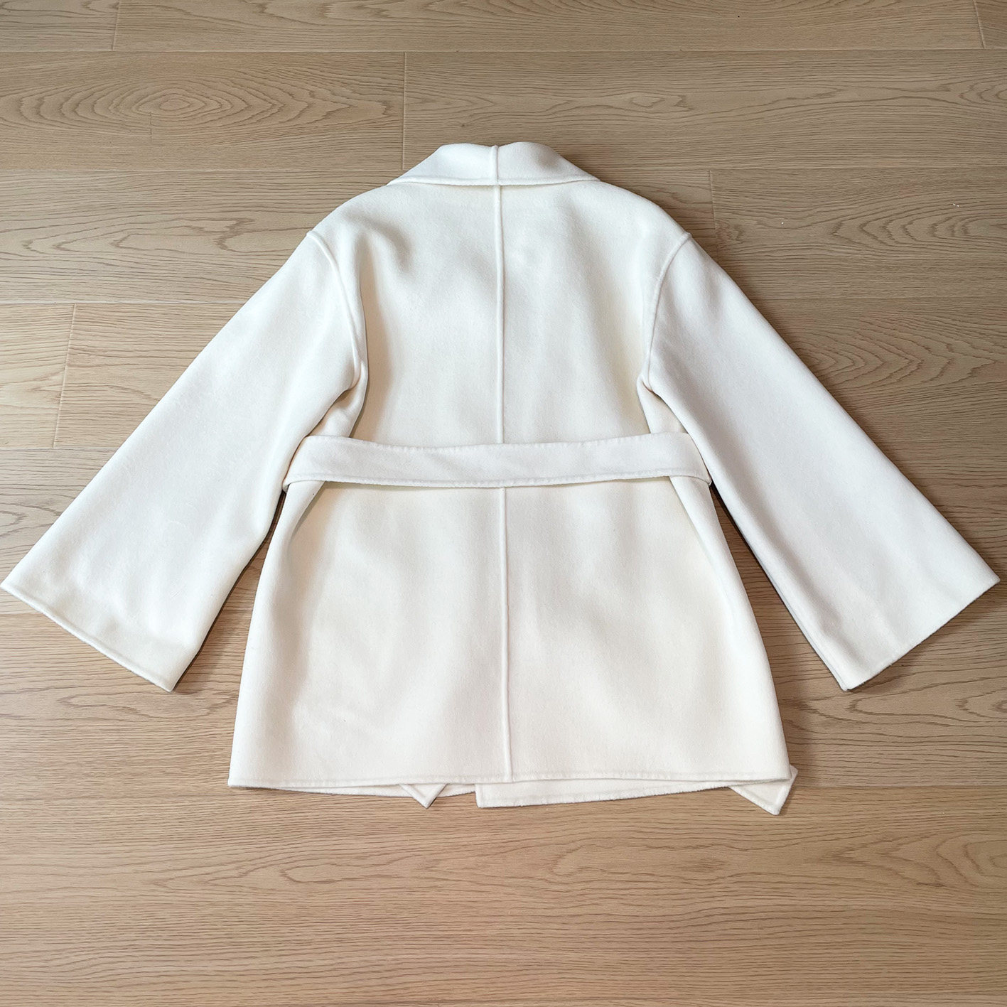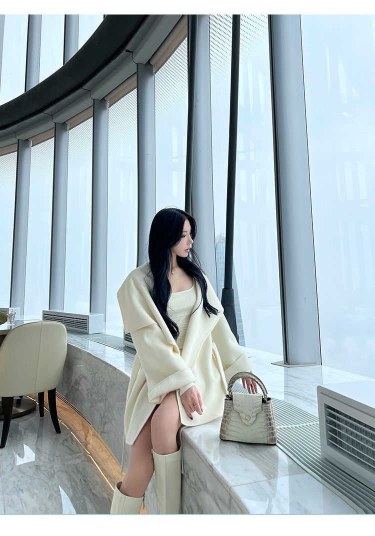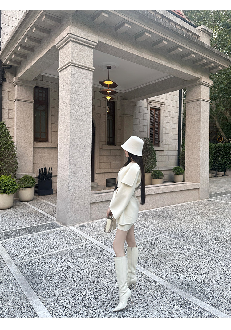 你可以永遠相信這件米白色翻領短款上衣帶來的秋冬式的慵懶高級