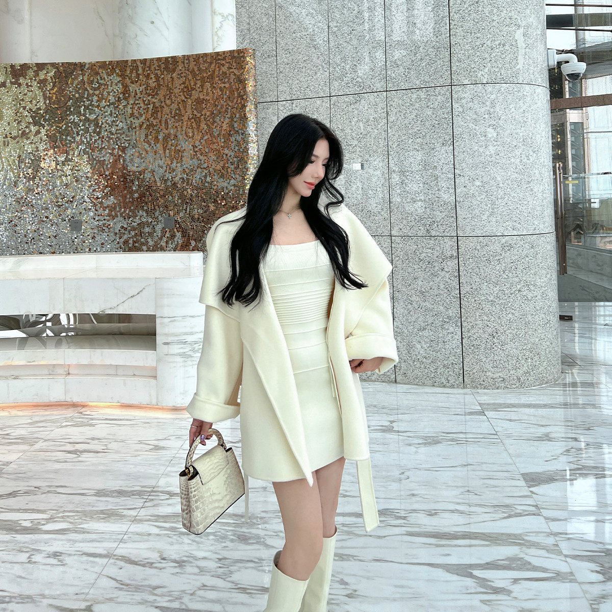 系上腰帶就是時下流行的“浴袍式”大衣造型