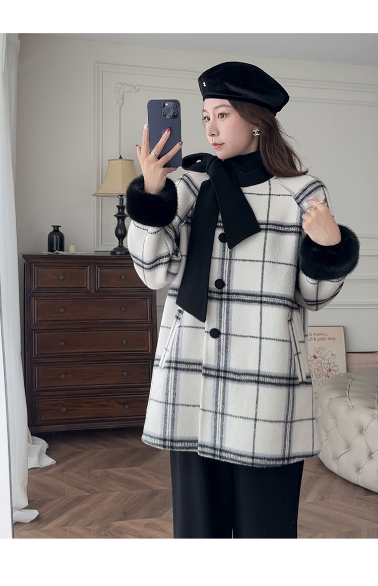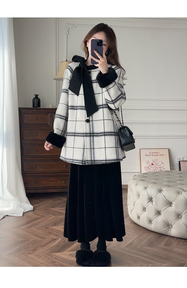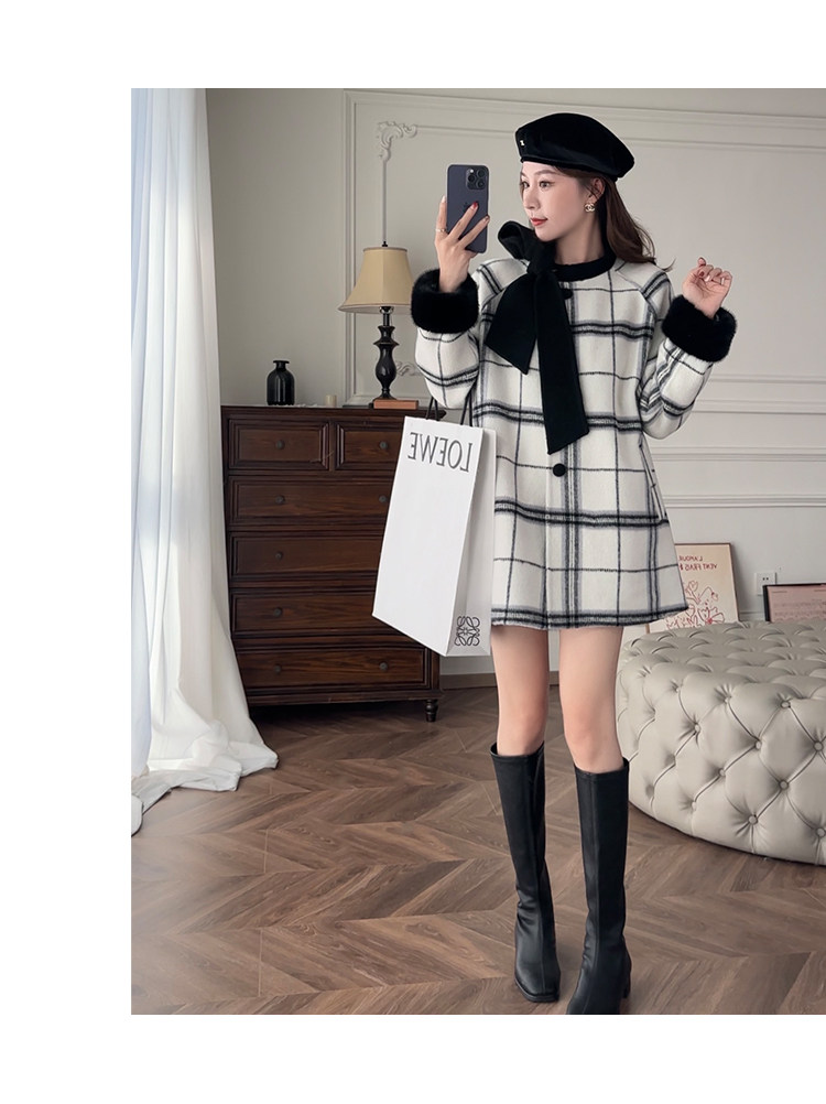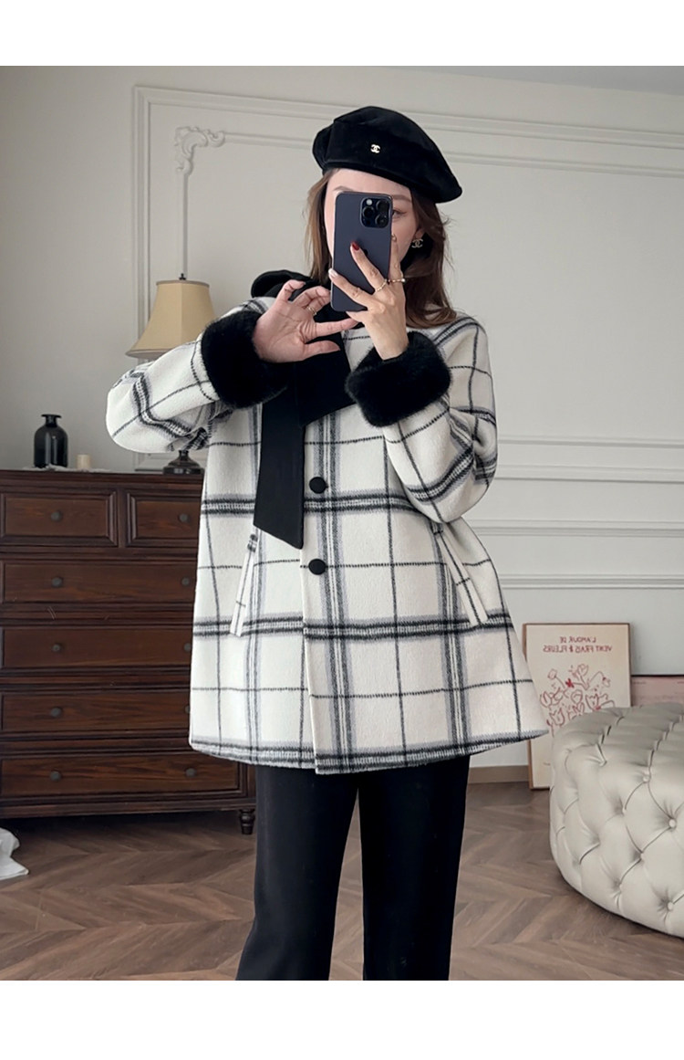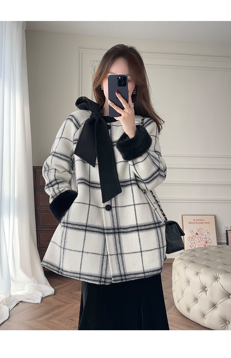 加上領口撞色蝴蝶結的加持 ,更加豐富層次