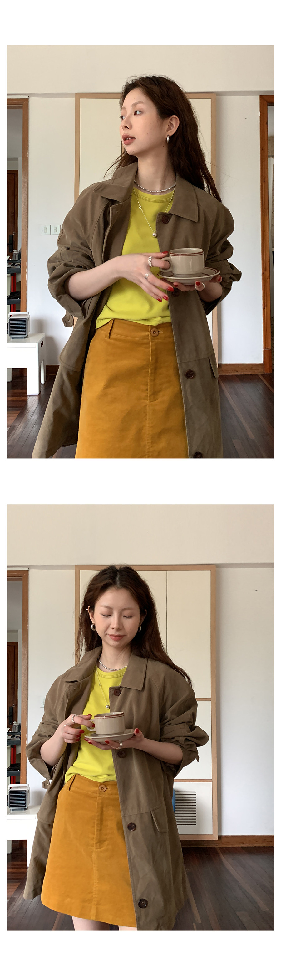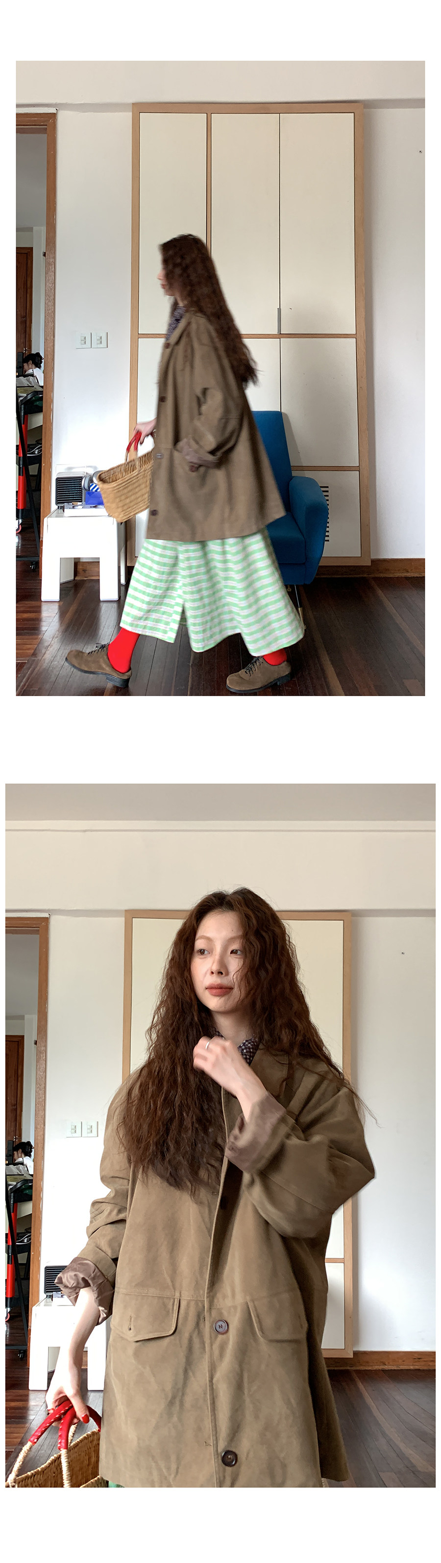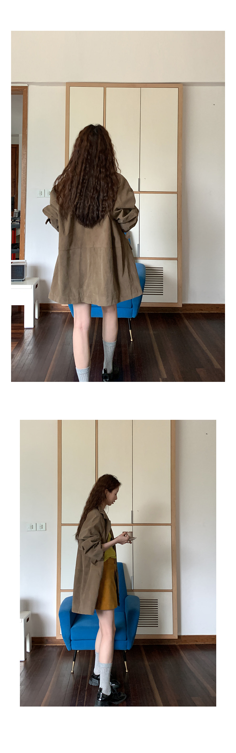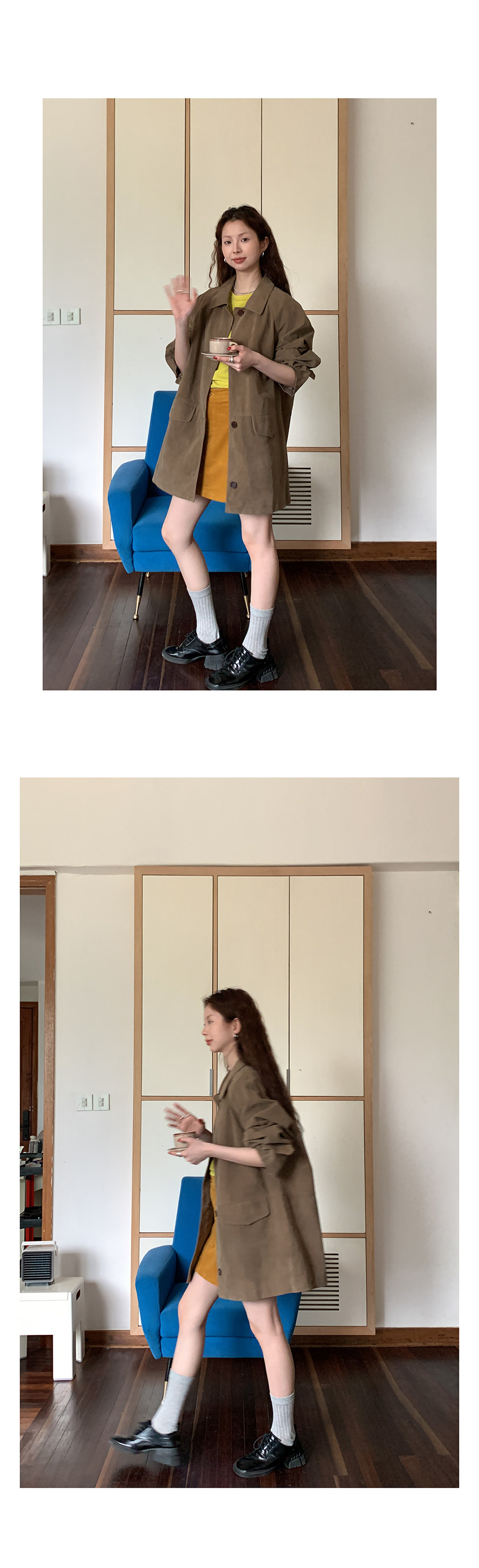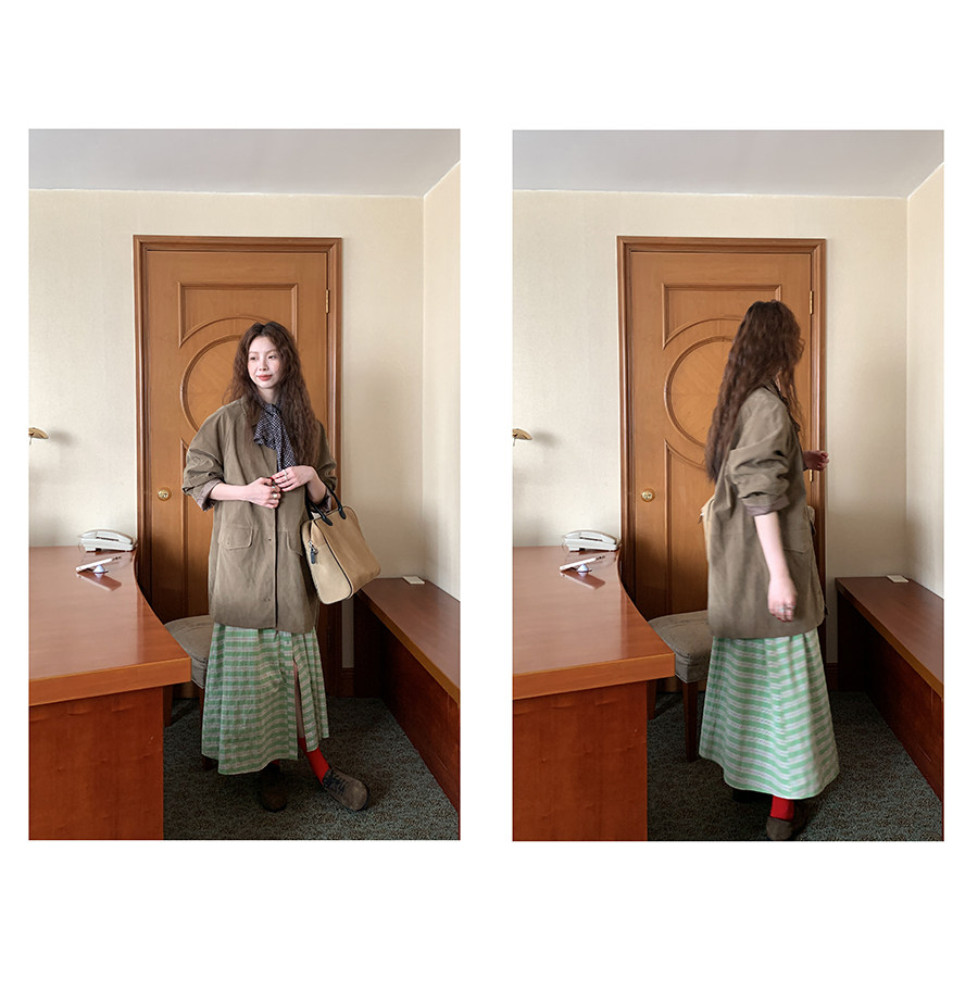 這個長度的外套 165及以下的 相對更適合搭連衣裙或半身裙