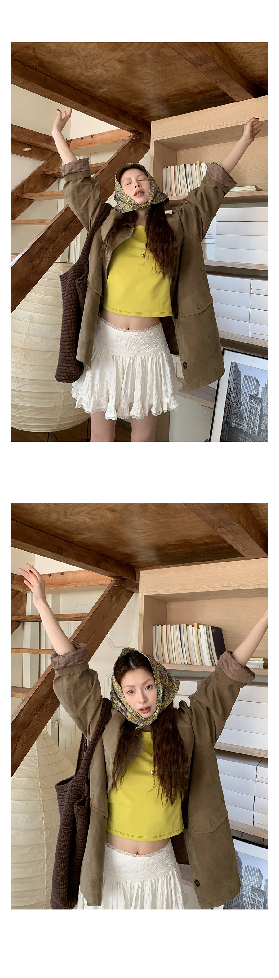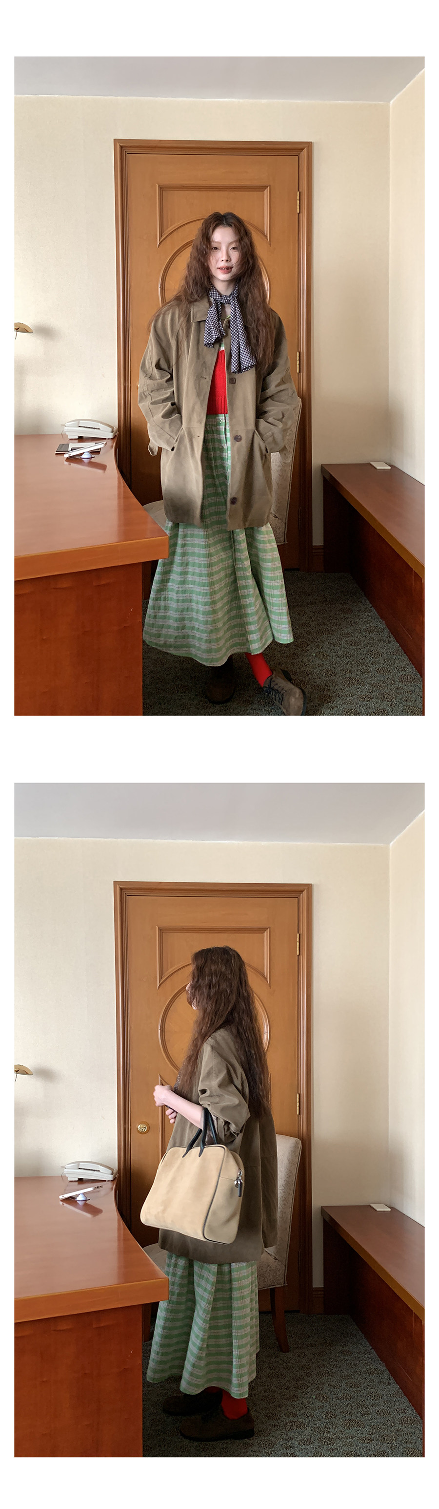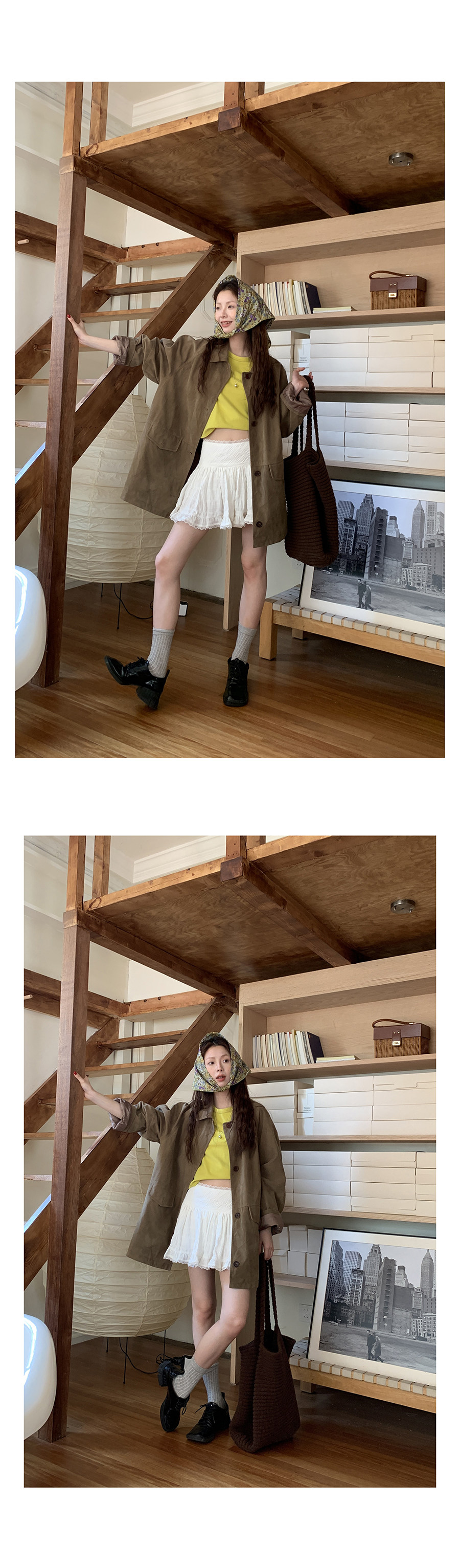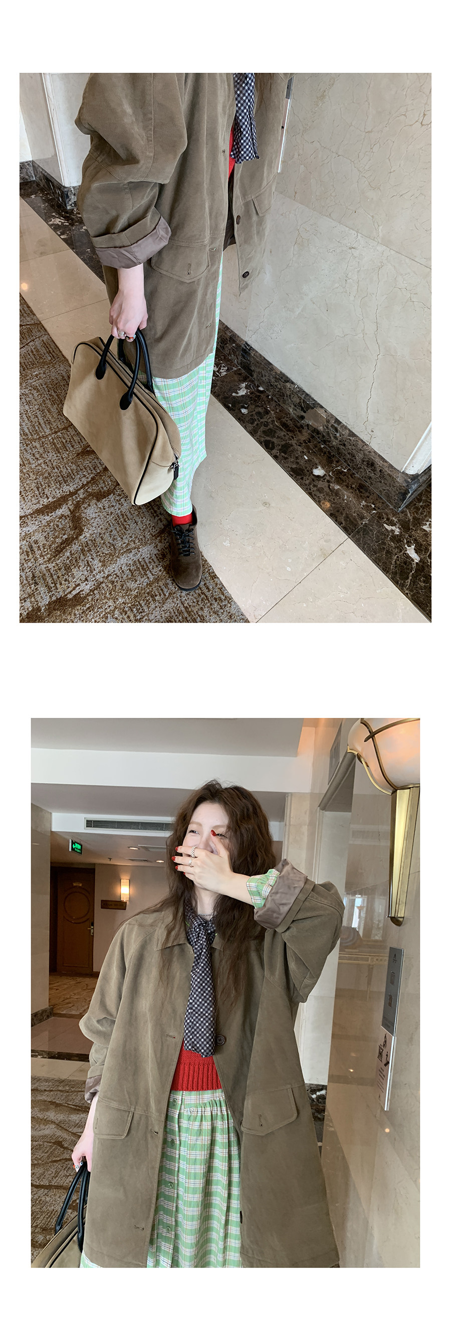 這個長度的外套 165及以下的 相對更適合搭連衣裙或半身裙
