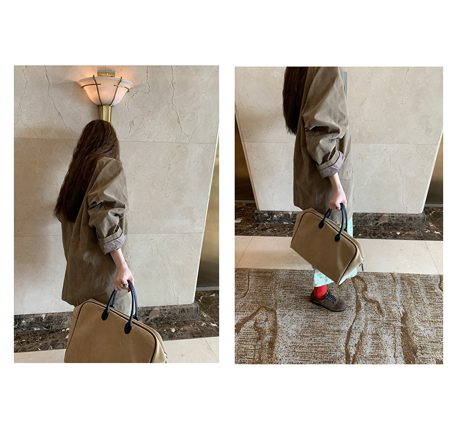 偏闊挺的麂皮面料 有點類似磨砂真皮包包的質感