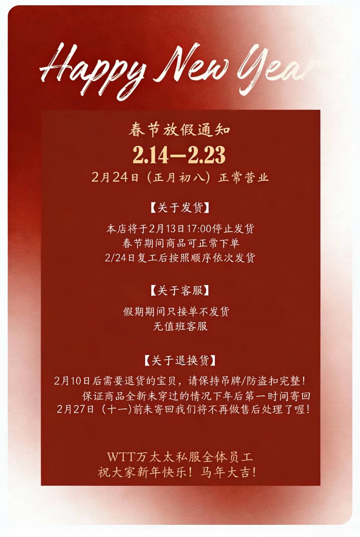 海外代購是依照消費者要求而提供協助購買商品之服務,係屬於「客製化給付」,依據《通訊交易解除權合理例外情事適用準則》規定不適用《消費者保護法第19條》鑑賞期規定。一旦訂單進入「已出貨」狀態,即無法取消訂單。收到商品後,若與預期不符,亦無法申請退貨或退款。 - 瑕疵商品退換貨規定
