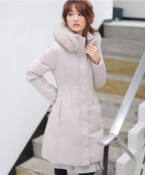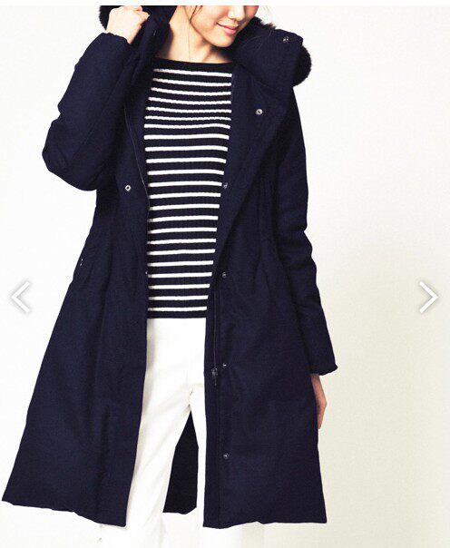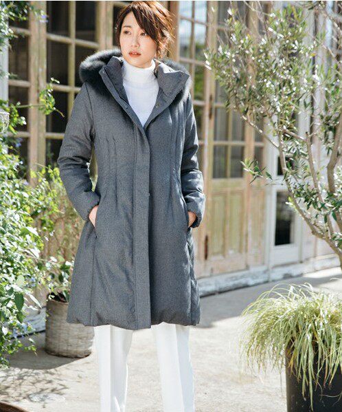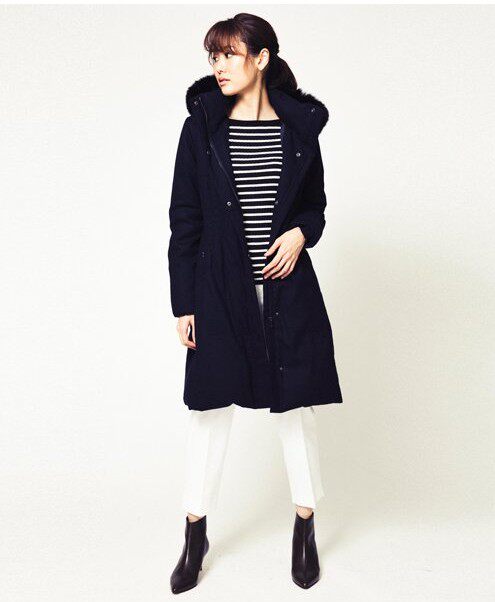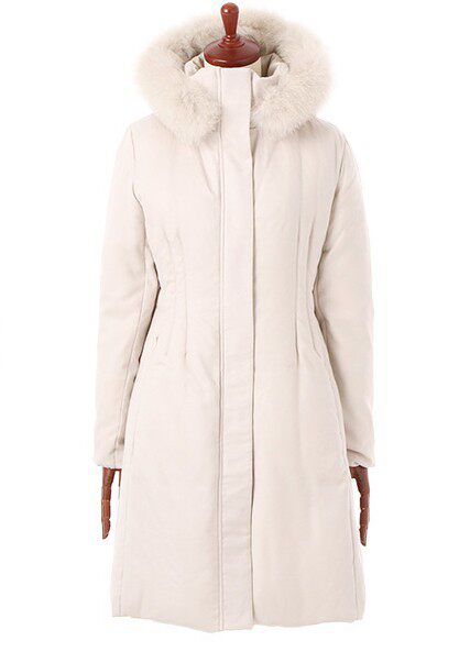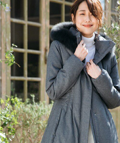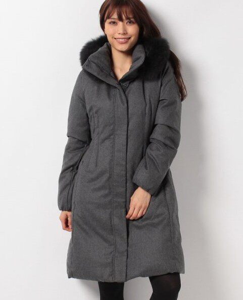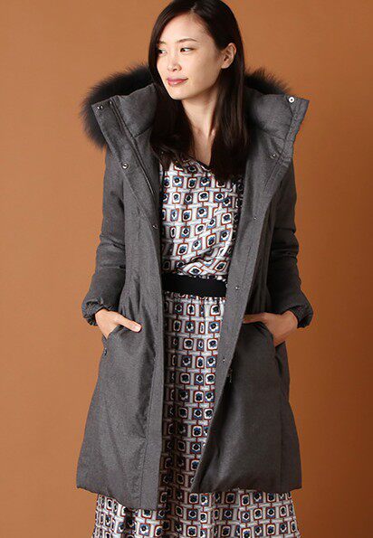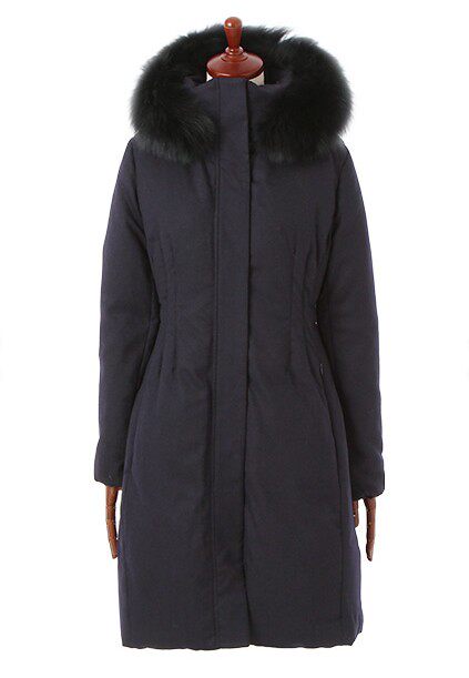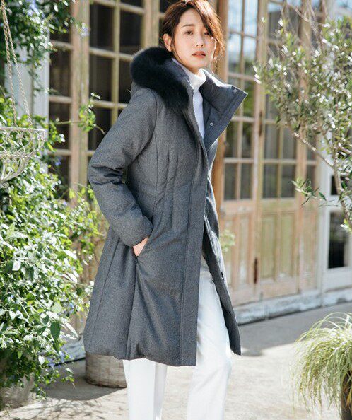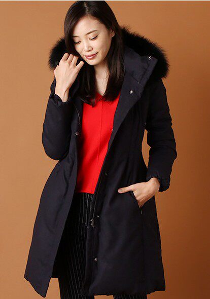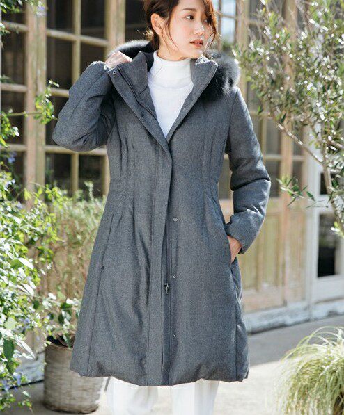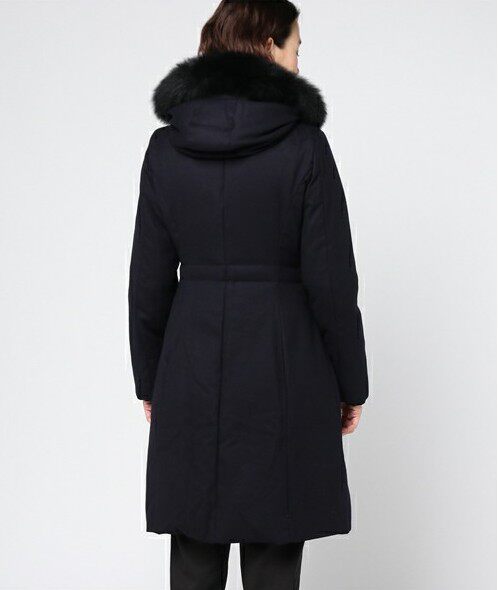 日本高端ANAYI 純羊毛呢保暖修身長款羽絨服
