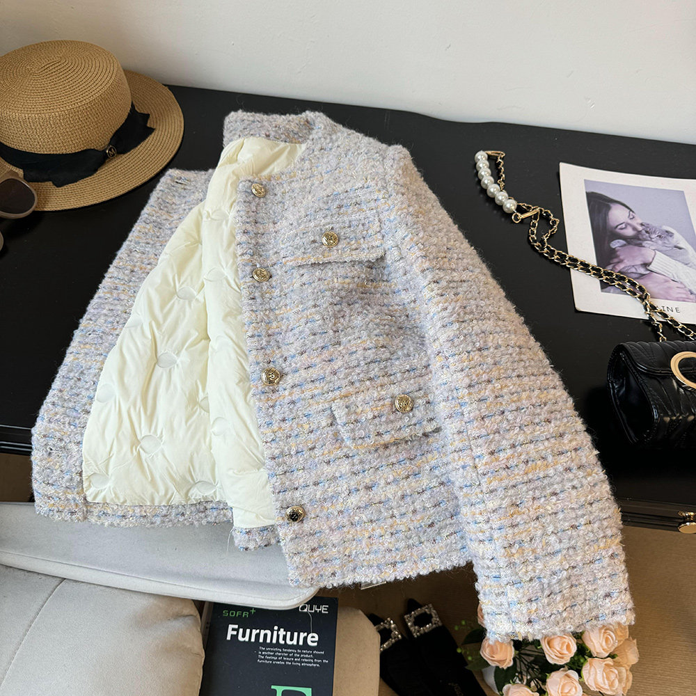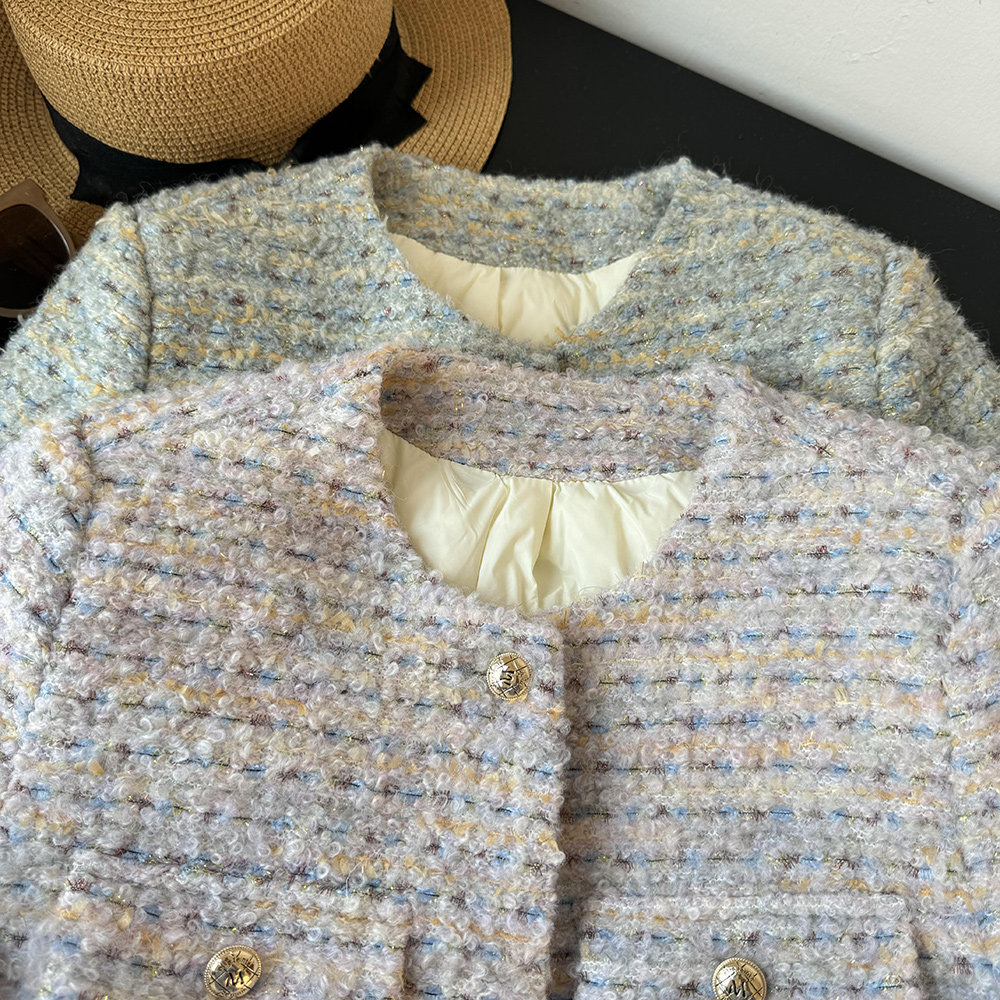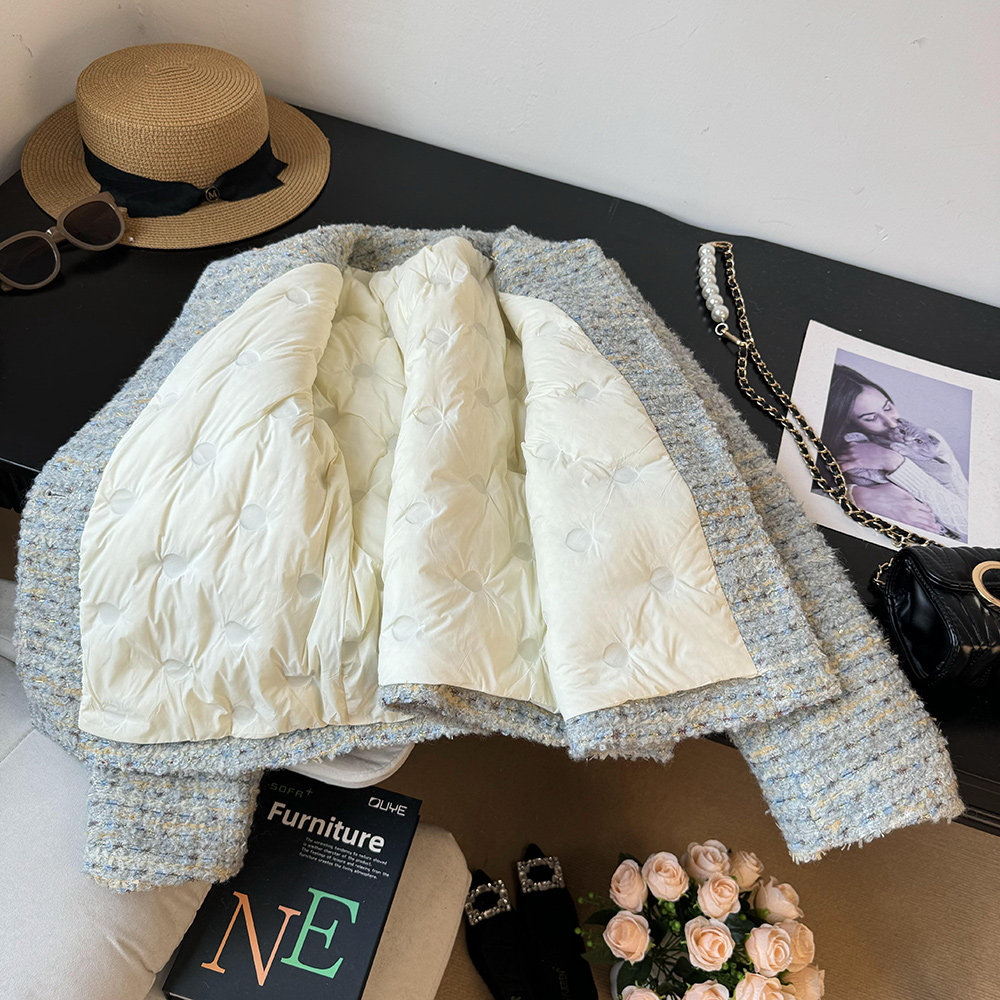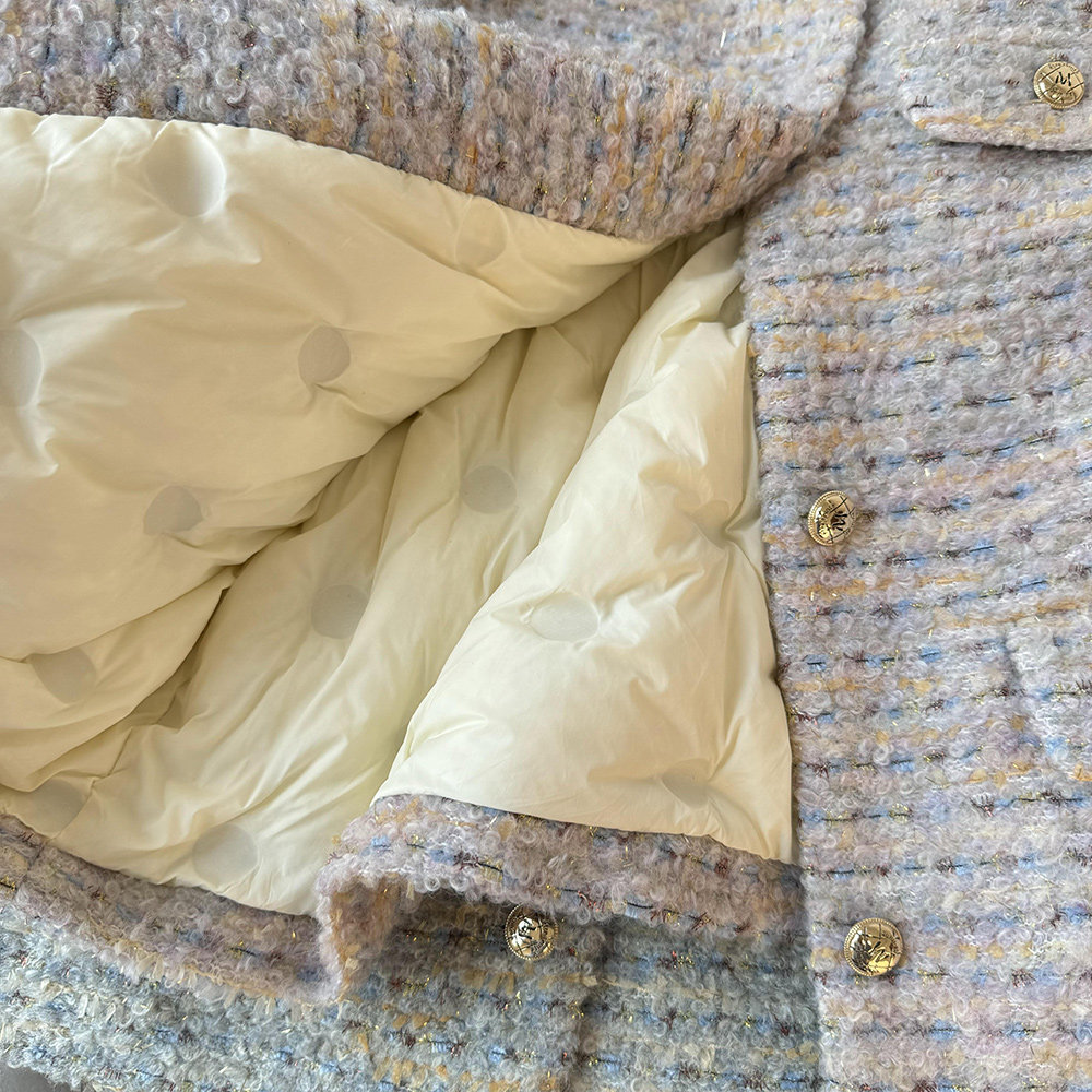 品名:金絲編織圈圈羊羔毛小香風羽絨服外套 | 版型:寬松 |