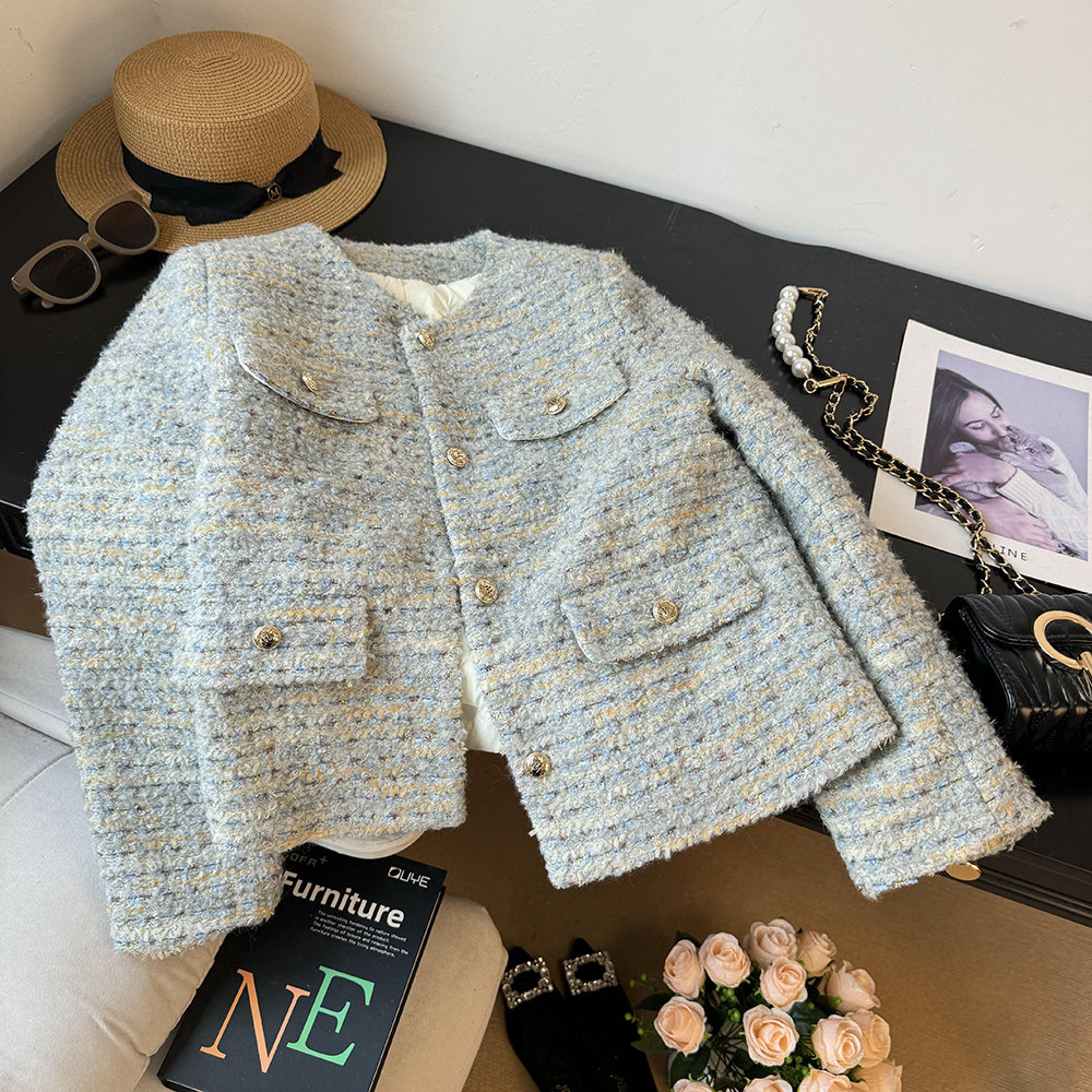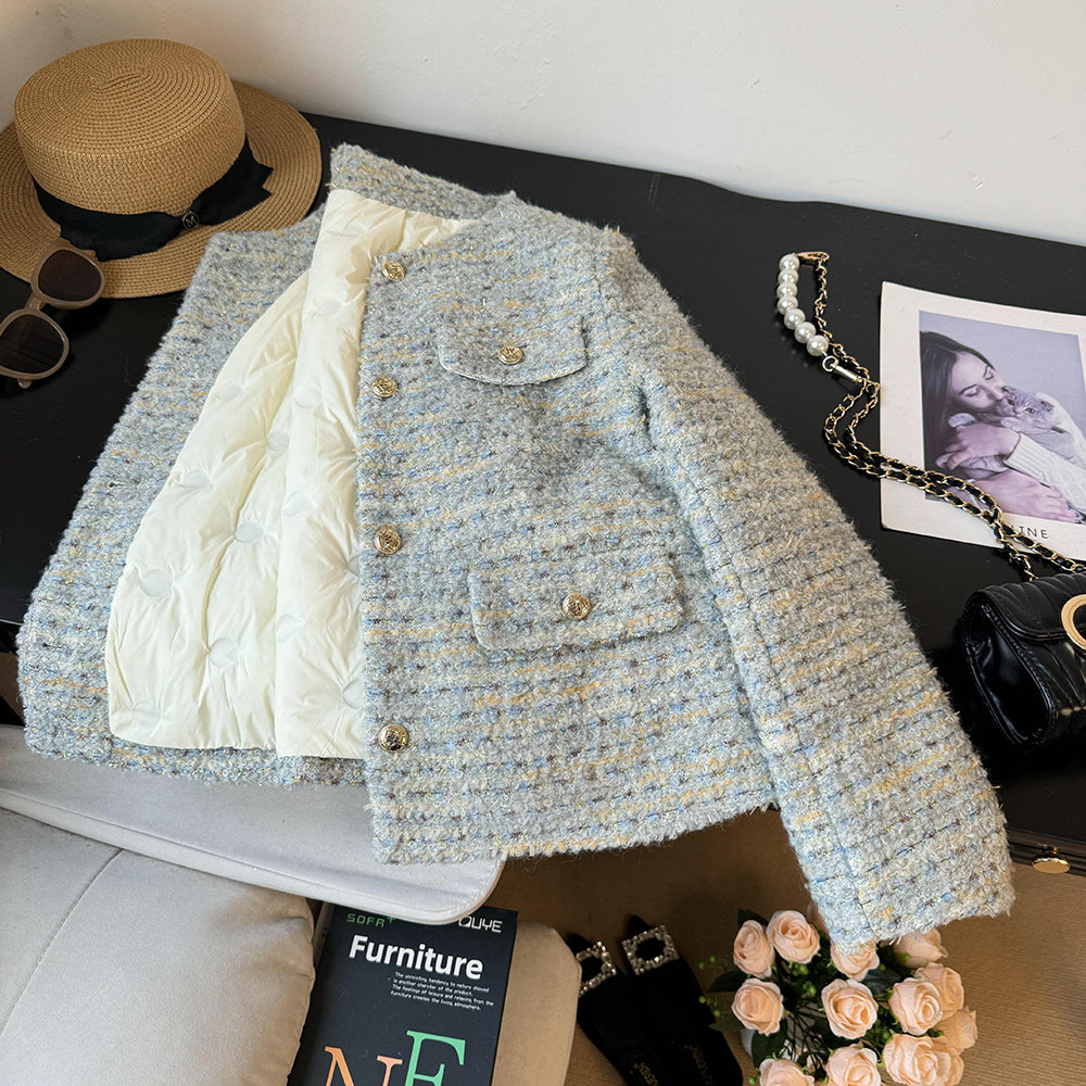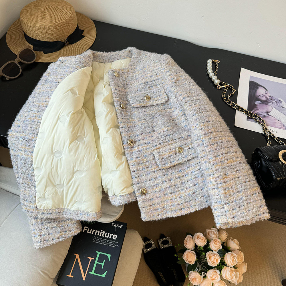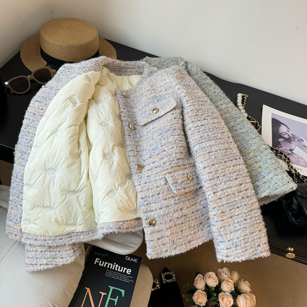 品名:金絲編織圈圈羊羔毛小香風羽絨服外套 | 版型:寬松 |