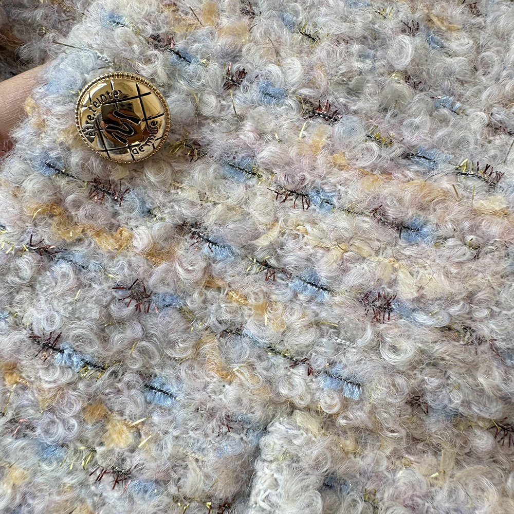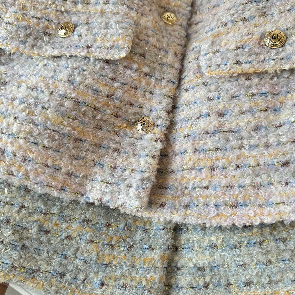 面料:氣質金絲編織圈圈羊羔毛面料【面料成分:25%羊毛 75%聚酯纖維 】 里襯:100%聚酯纖維 細節:高級質感字母金扣 重工金絲編織 氣質又高級~ | 厚度:適中 |