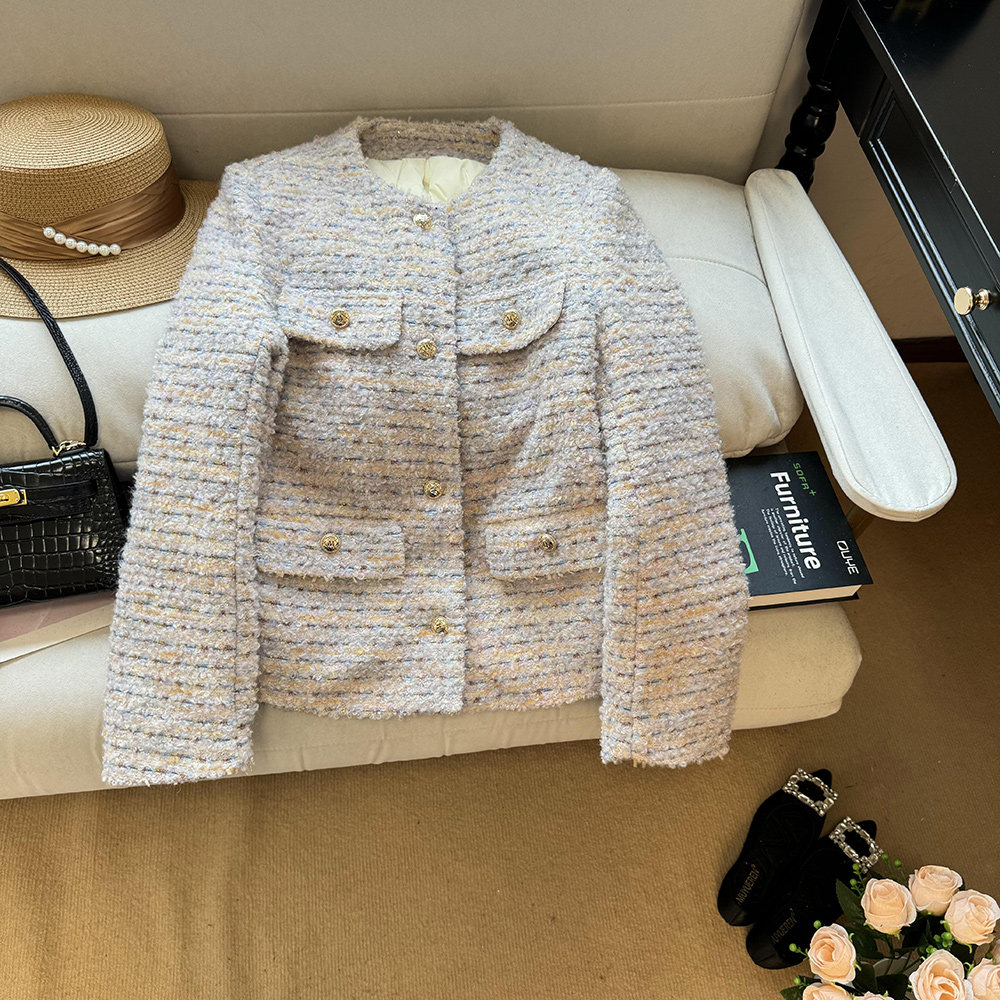 季節:秋冬~ 氣質名媛風 羊羔毛羽絨 內膽90白鴨絨 加厚保暖~ 含25%羊毛 高級金絲編織面料 好看又洋氣 有質感又精致 ~~ 彩虹編織色系 顏色chao高級 洋氣又百搭 ~ du家版 重工又輕奢的一款小香羽絨外套 ~~ | 彈性:無彈 |